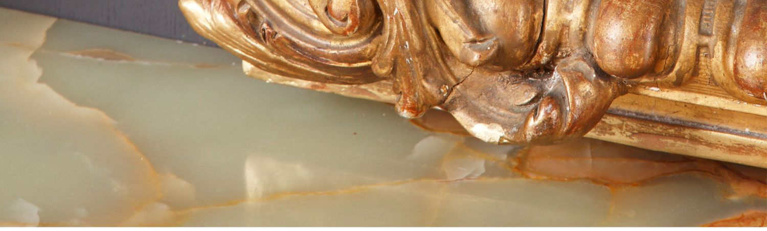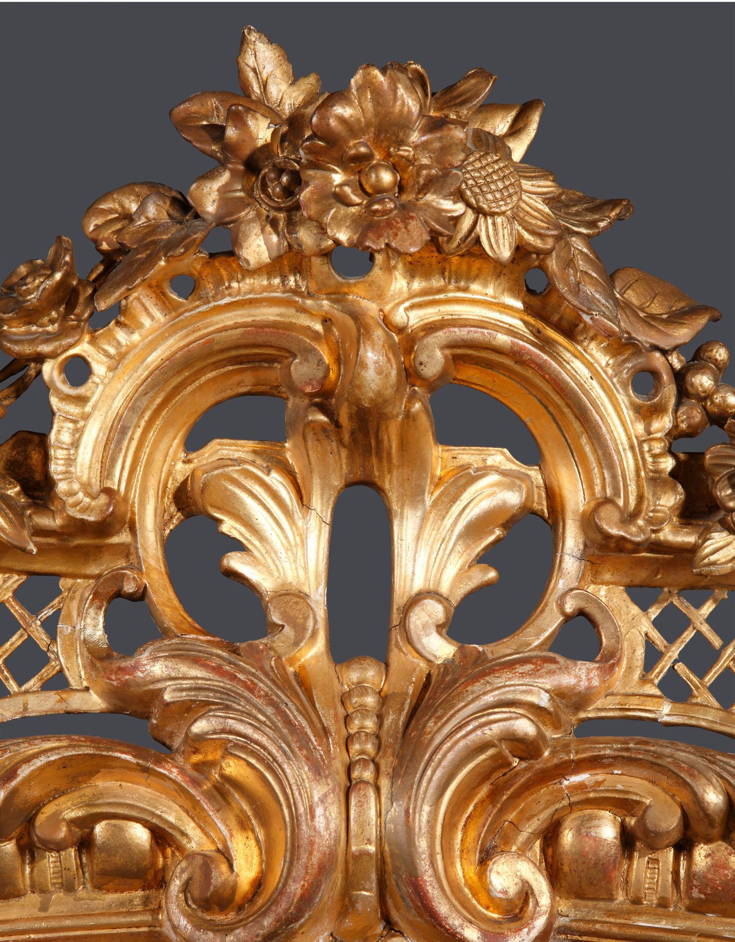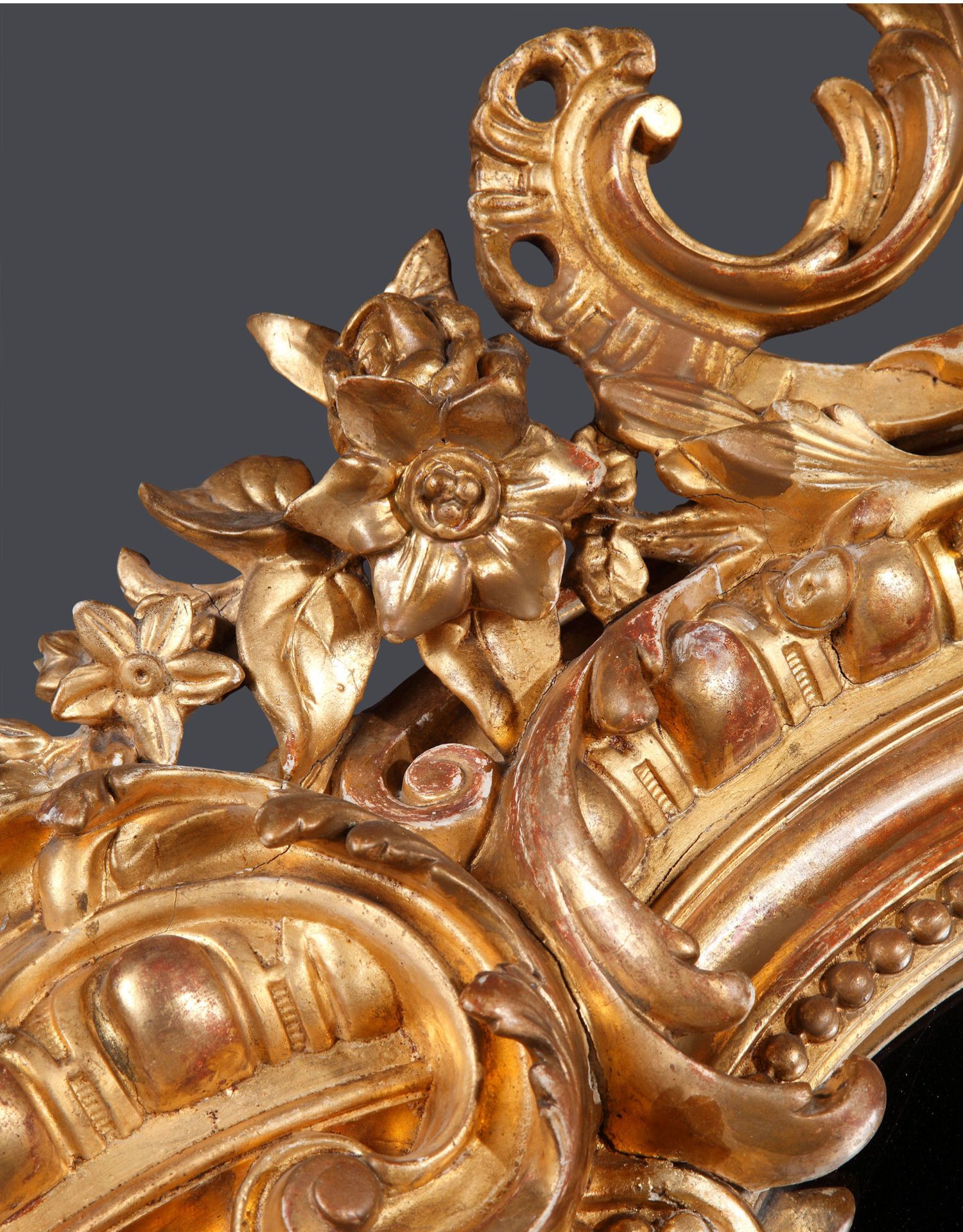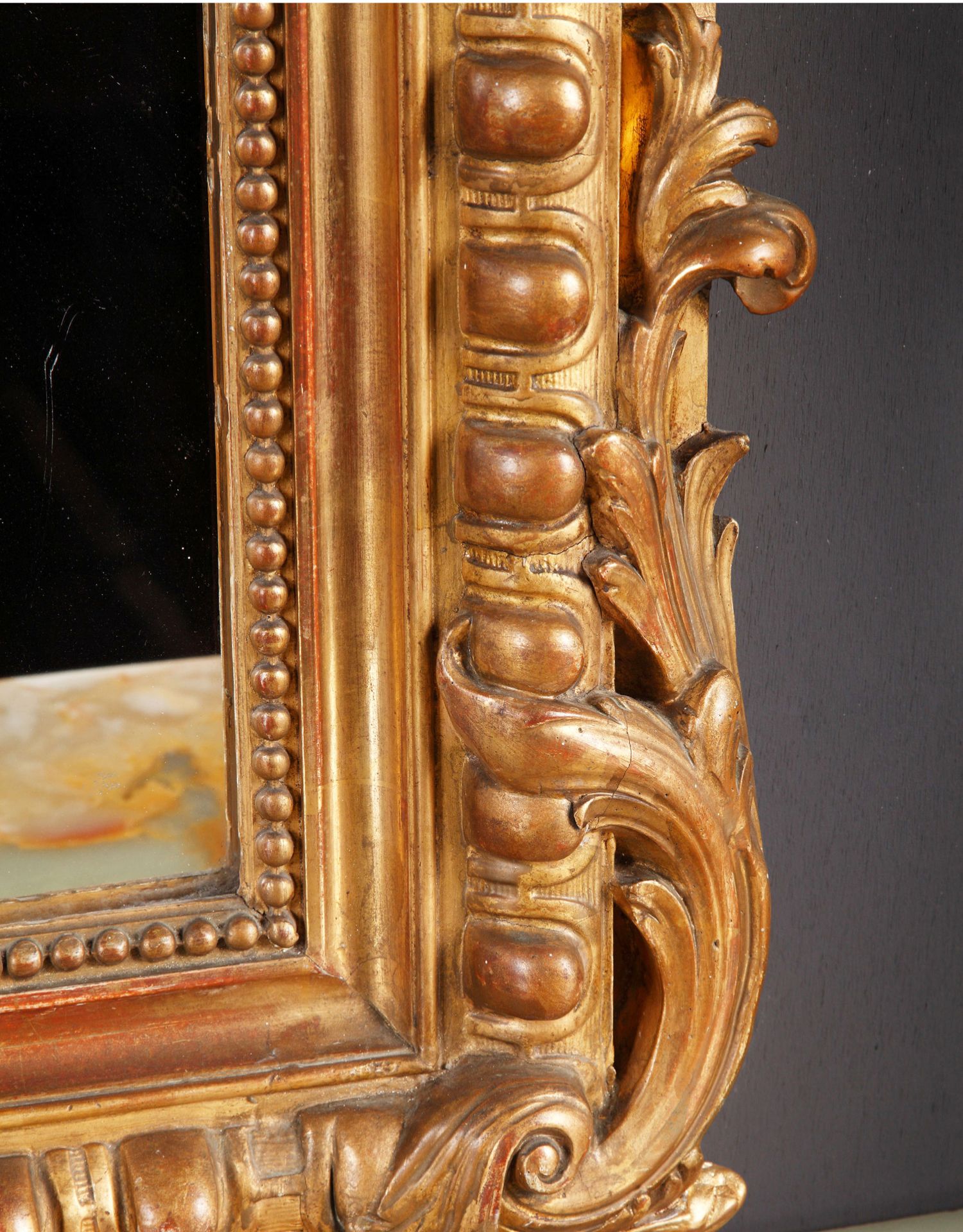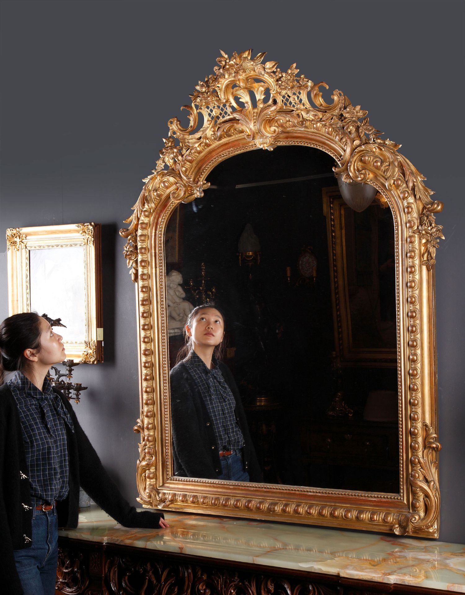 独角鹿西洋古董路易十五风格花卉涡卷金叶鎏金灰墁浮雕木质挂镜