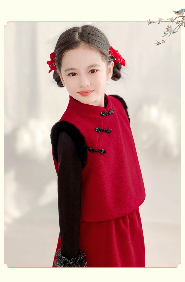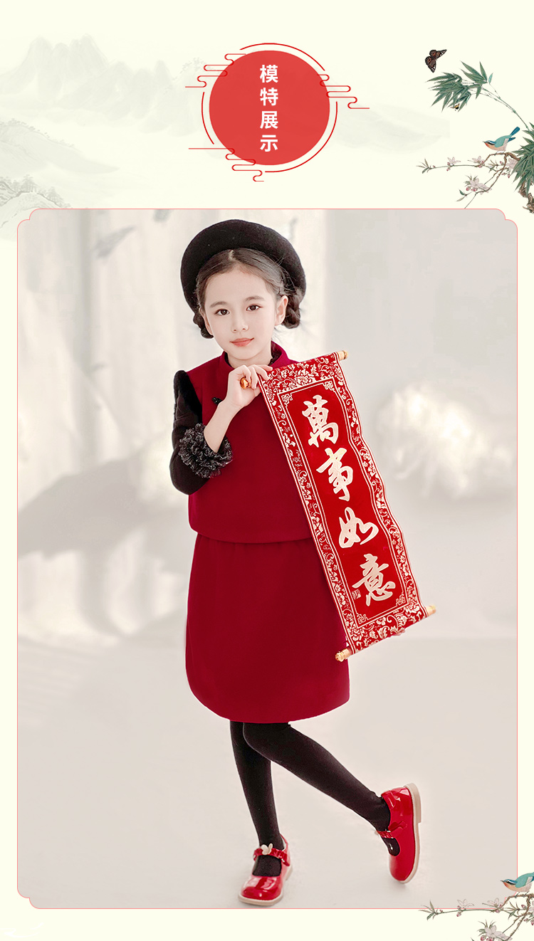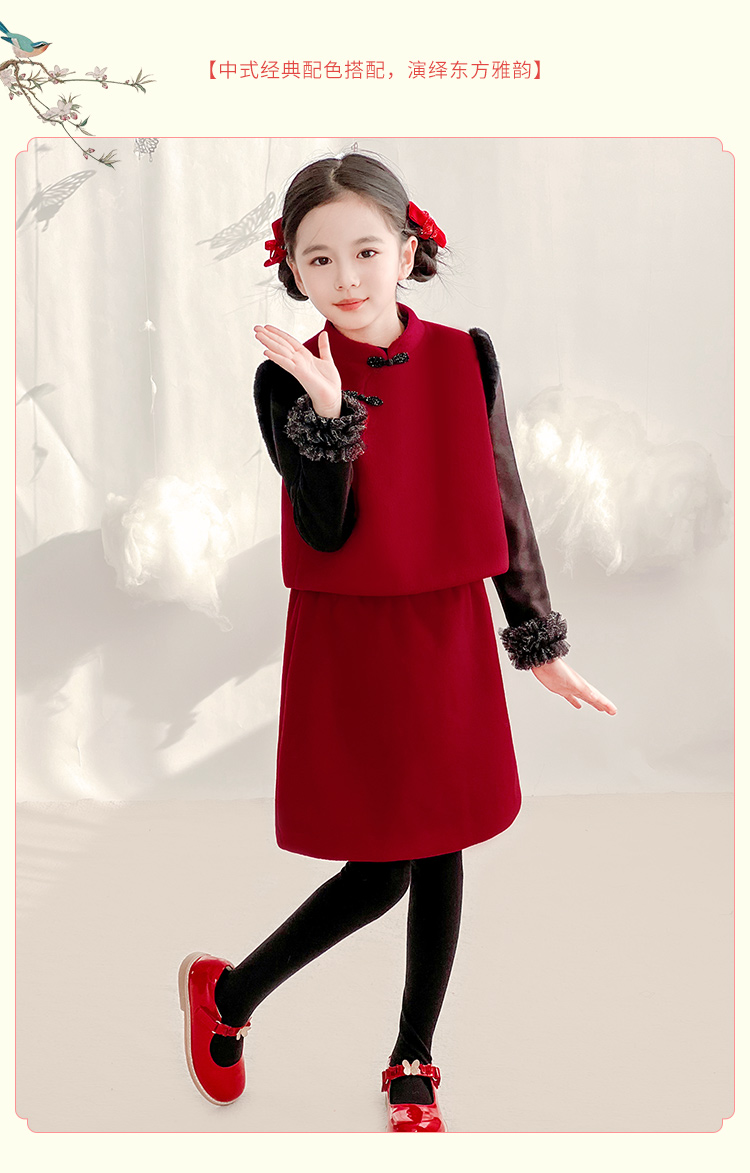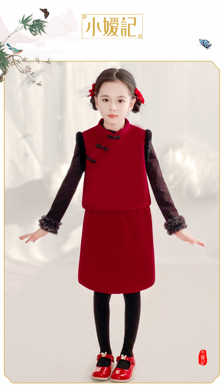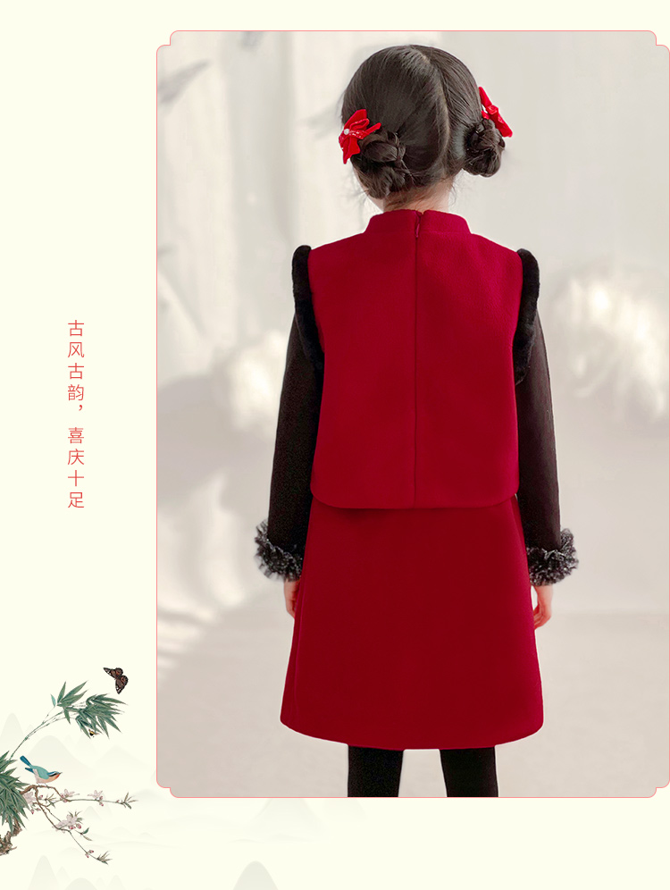 预售款~pureshare 女童连衣裙套装新款秋冬小香风气质可爱宝宝裙子-画板上的女孩