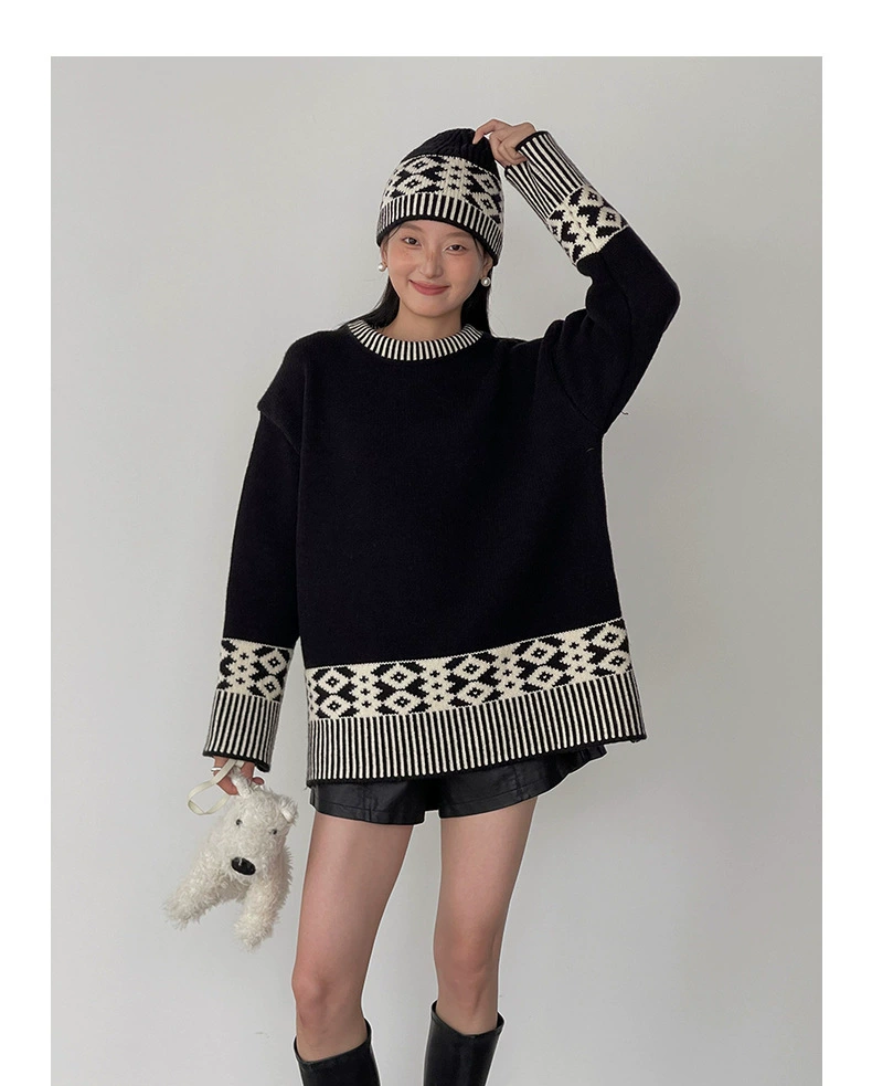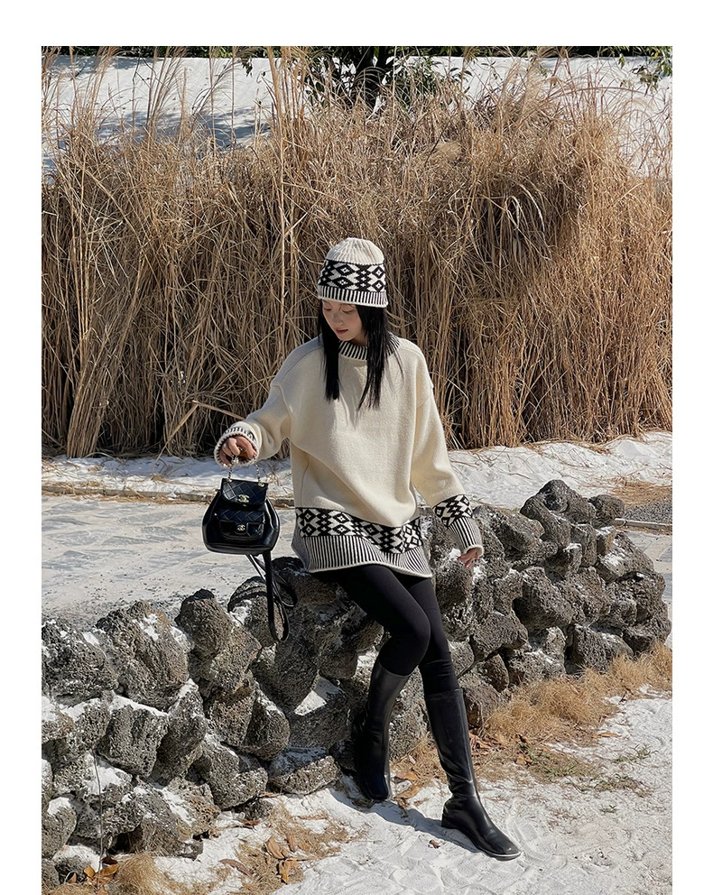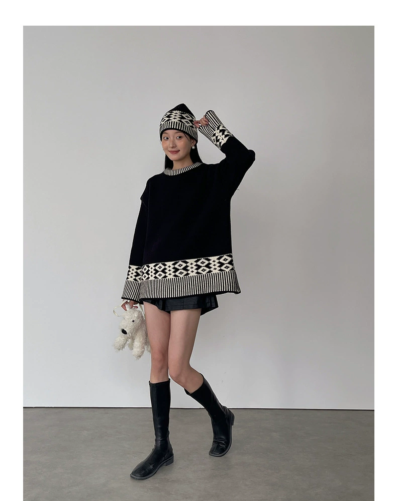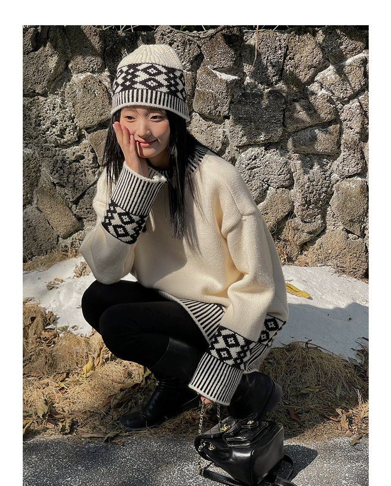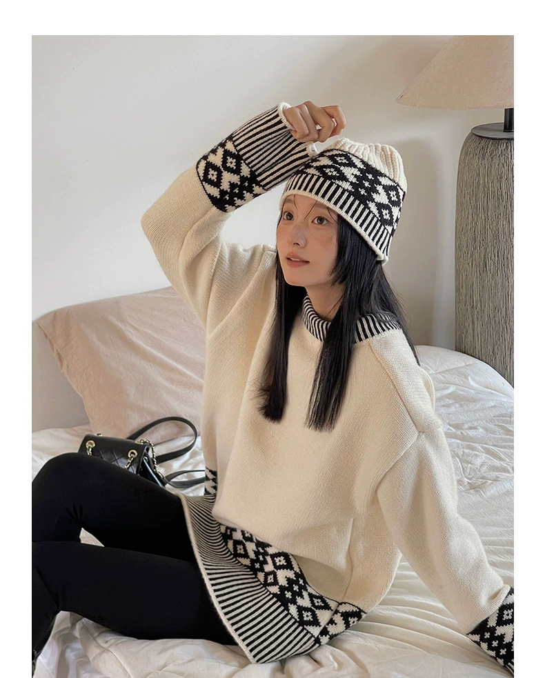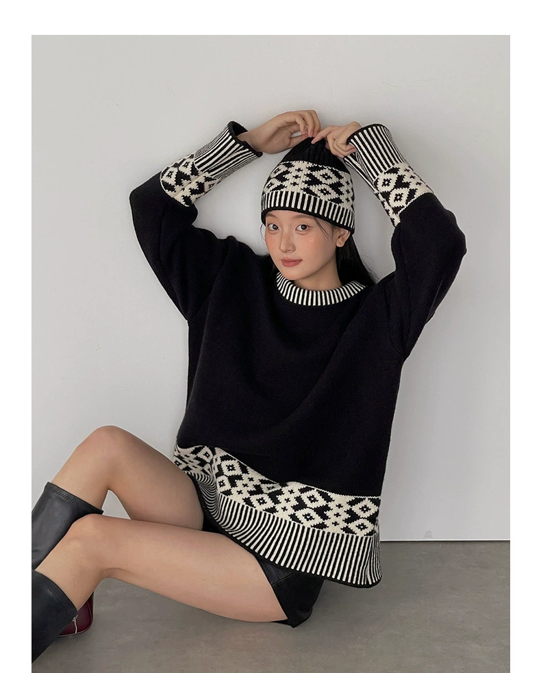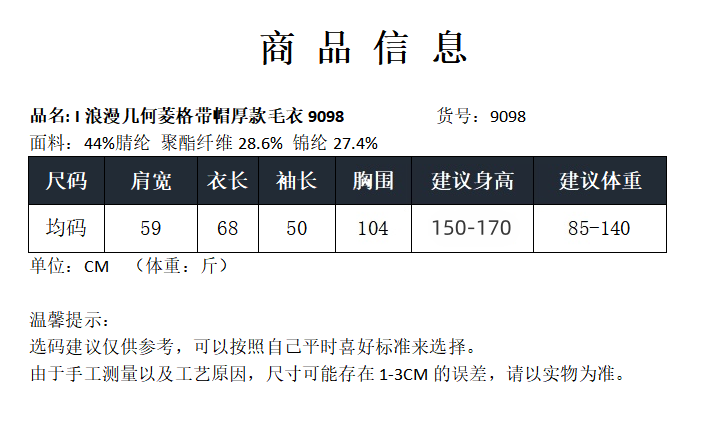 浪漫几何菱格带帽厚款毛衣9098