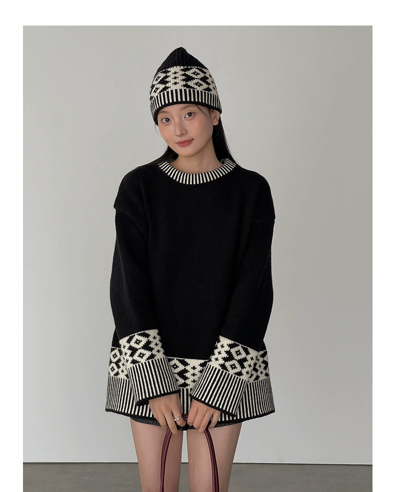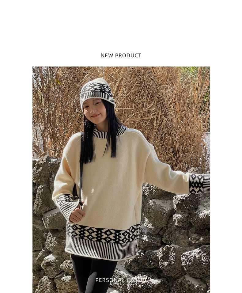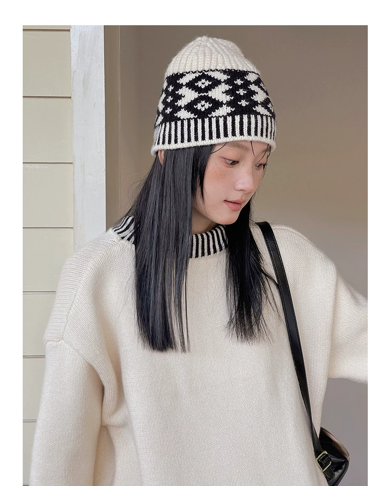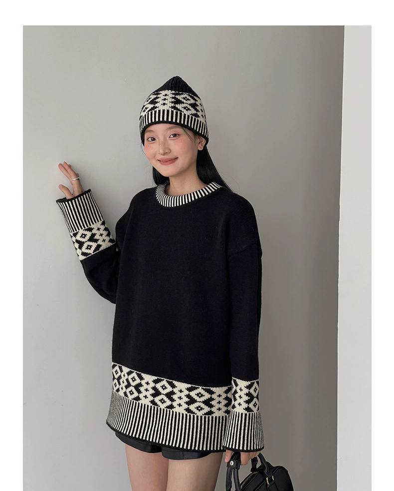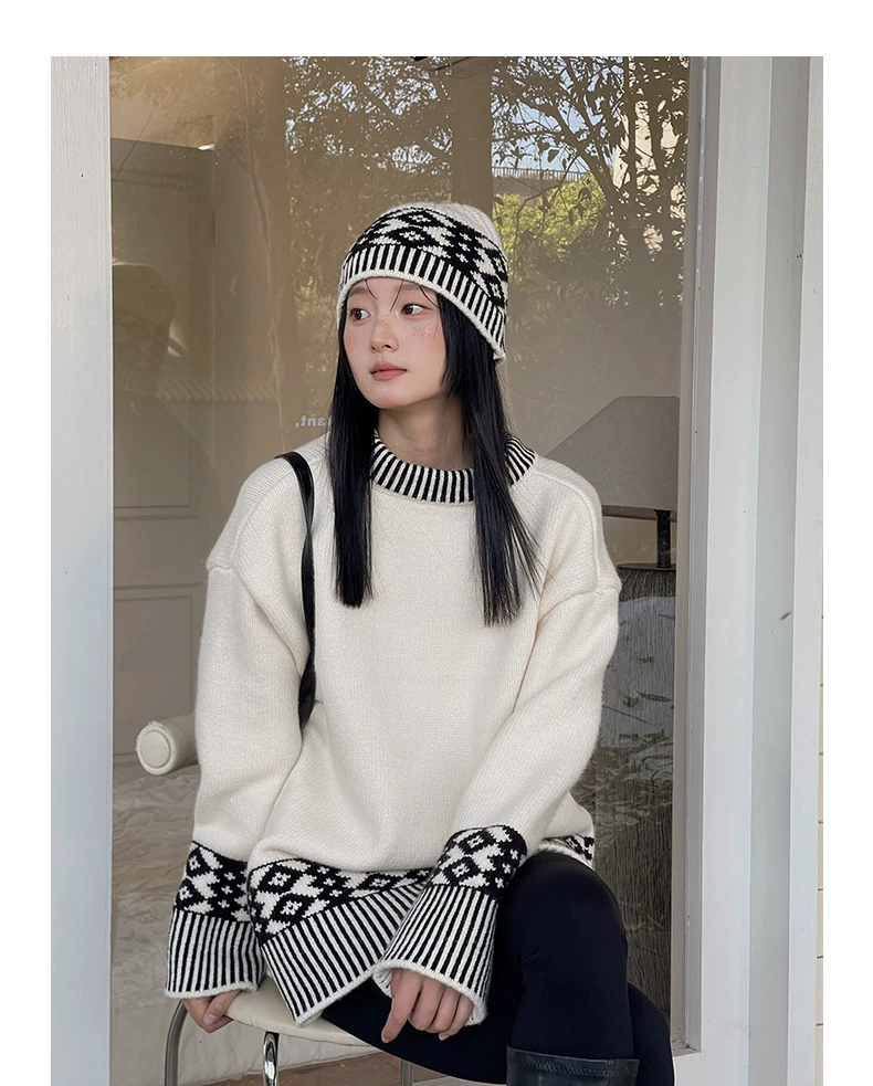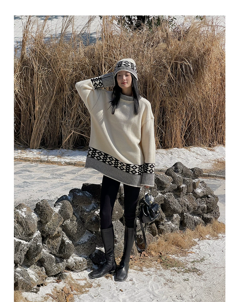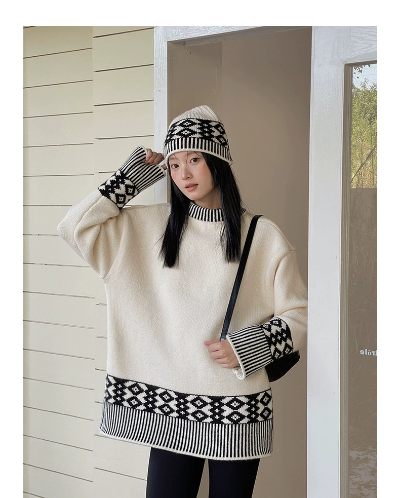 浪漫几何菱格带帽厚款毛衣9098