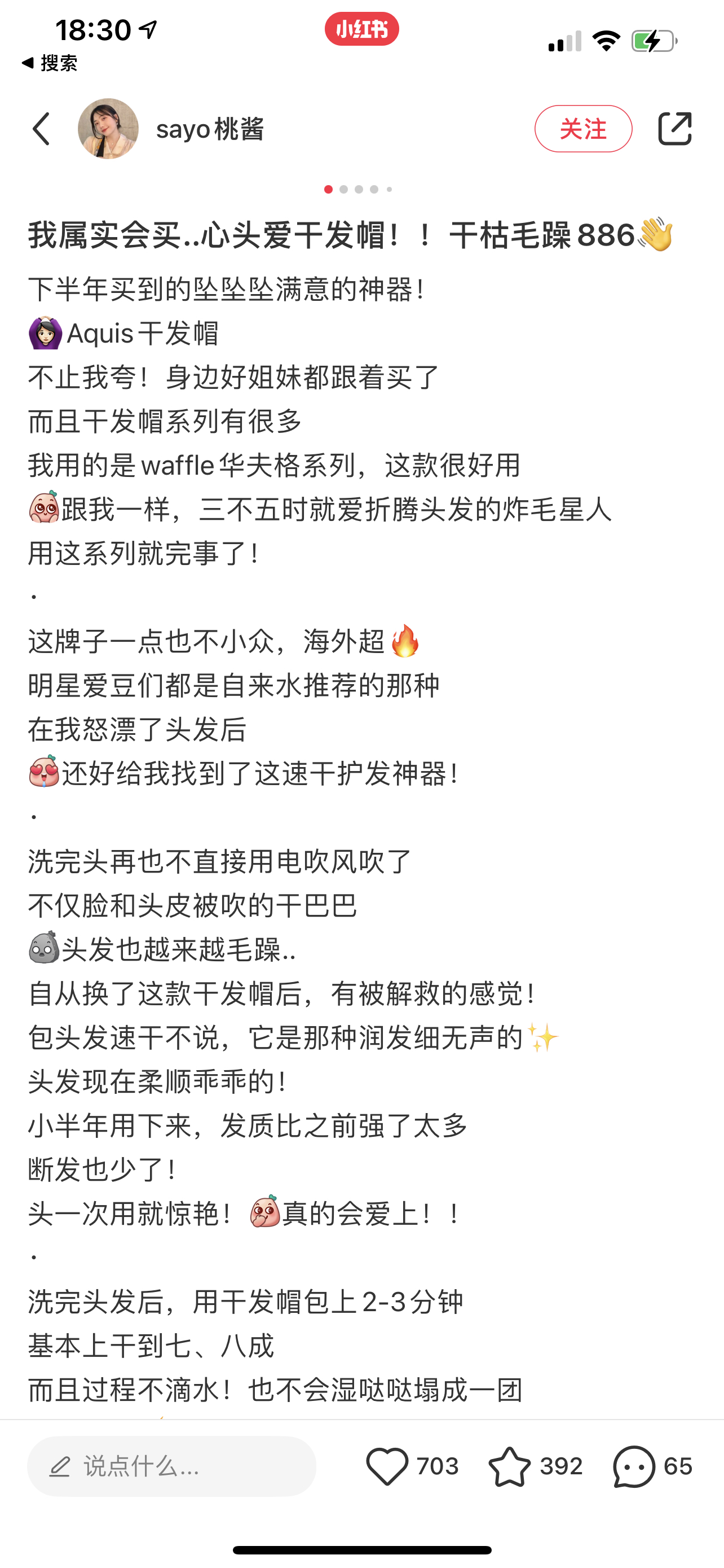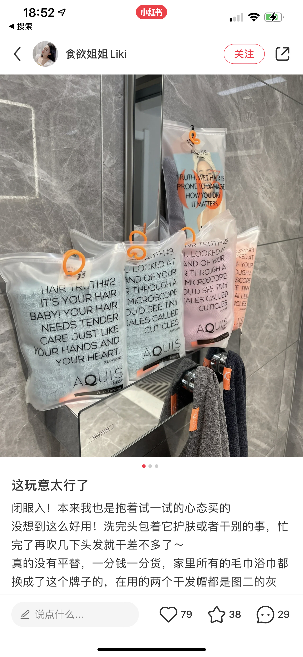 特!闭眼入!每年就一批!出口美国的订单,AQUIS原厂出!干发巾中的香奶奶,超吸水黑科技干发帽,