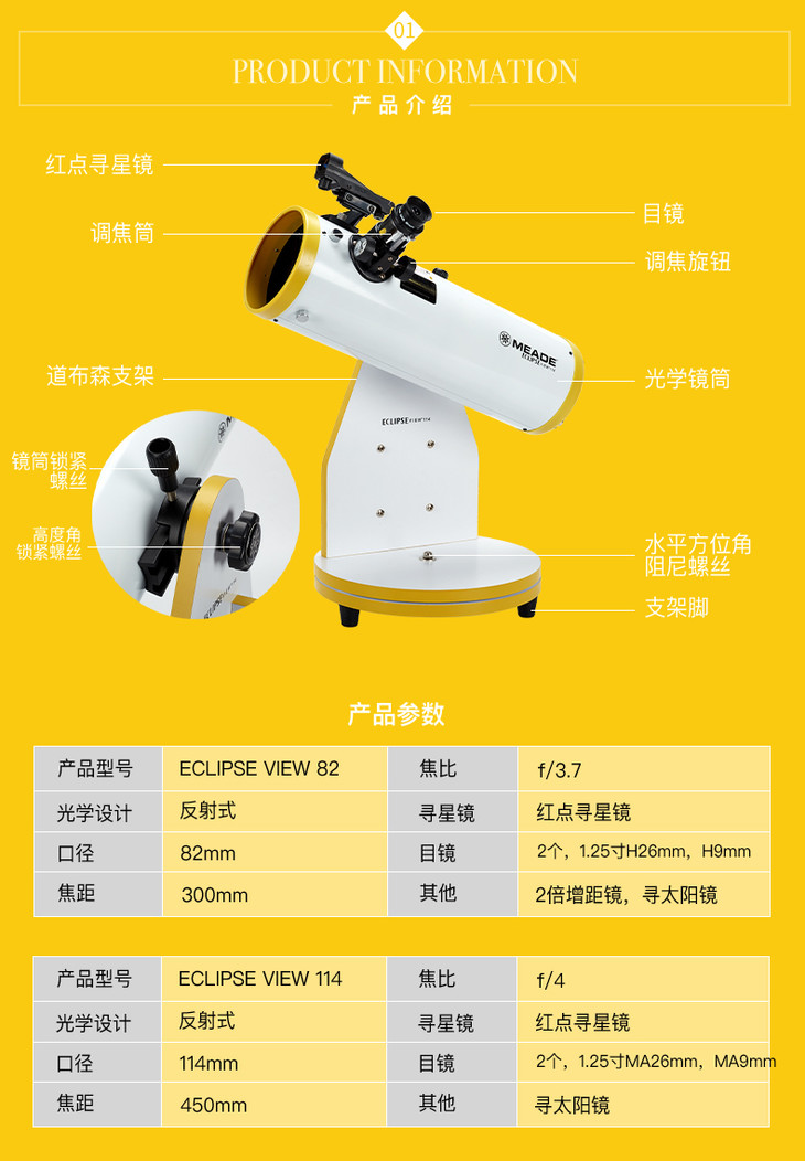 【米德天文望远镜】儿童礼物,让我们更接近宇宙!米德MEADE天文望远镜道普森EclipseView DOB 82