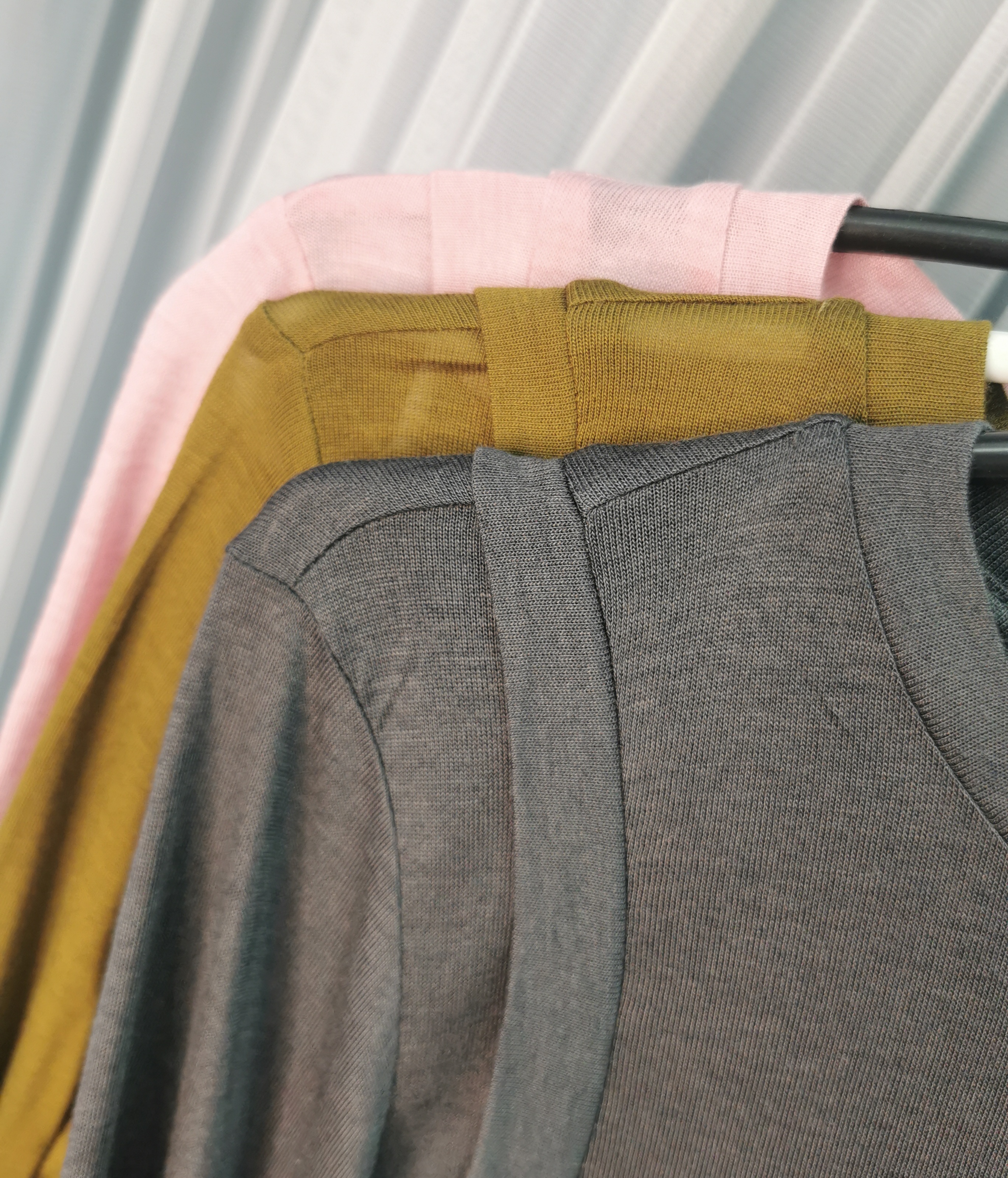 RM6363#下摆不规则羊毛莫代尔长袖T恤