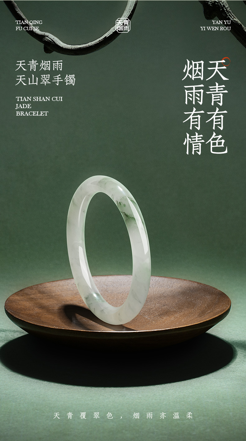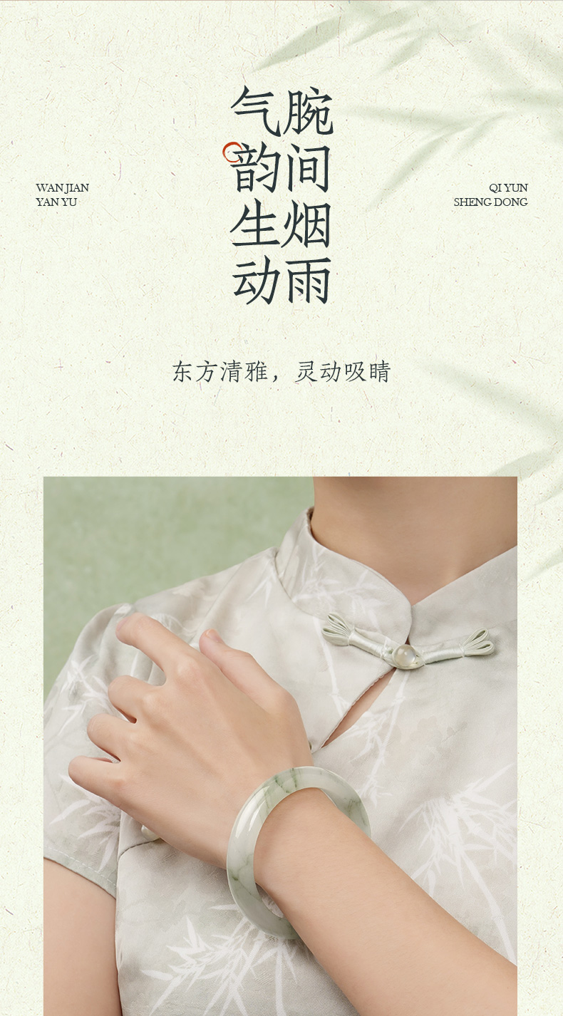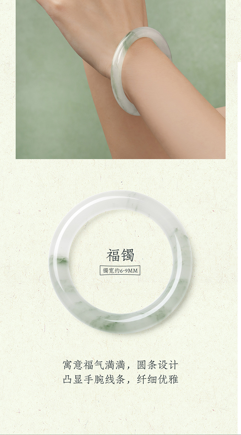 周大生天然翡翠手镯女芙蓉种淡飘绿湖光山色玉镯生日礼物送女朋友