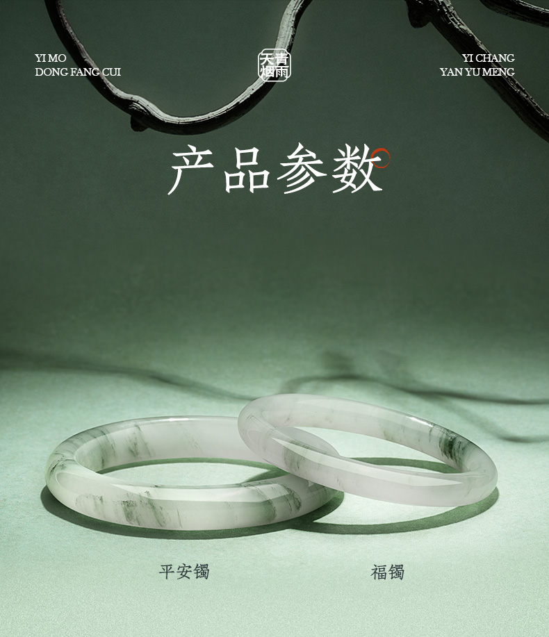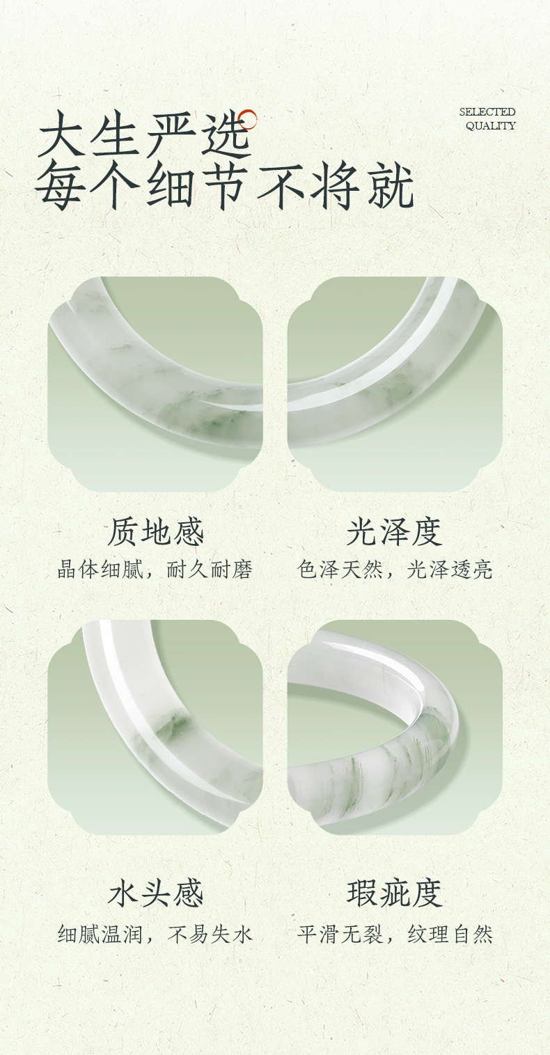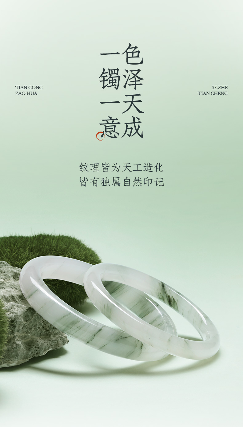 周大生天然翡翠手镯女芙蓉种淡飘绿湖光山色玉镯生日礼物送女朋友