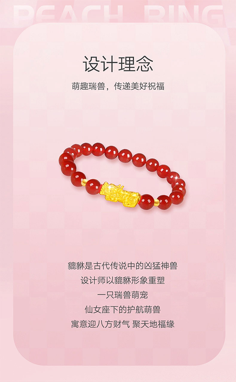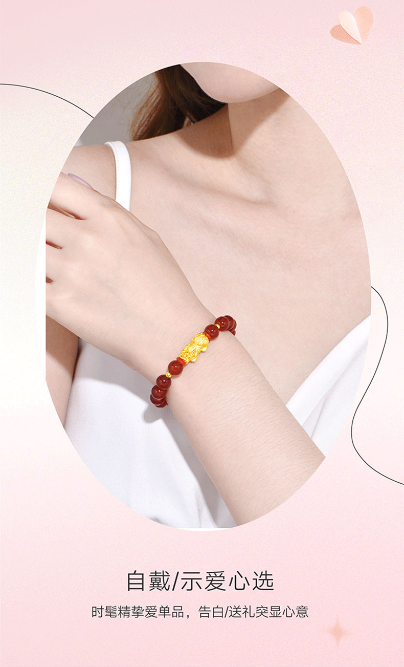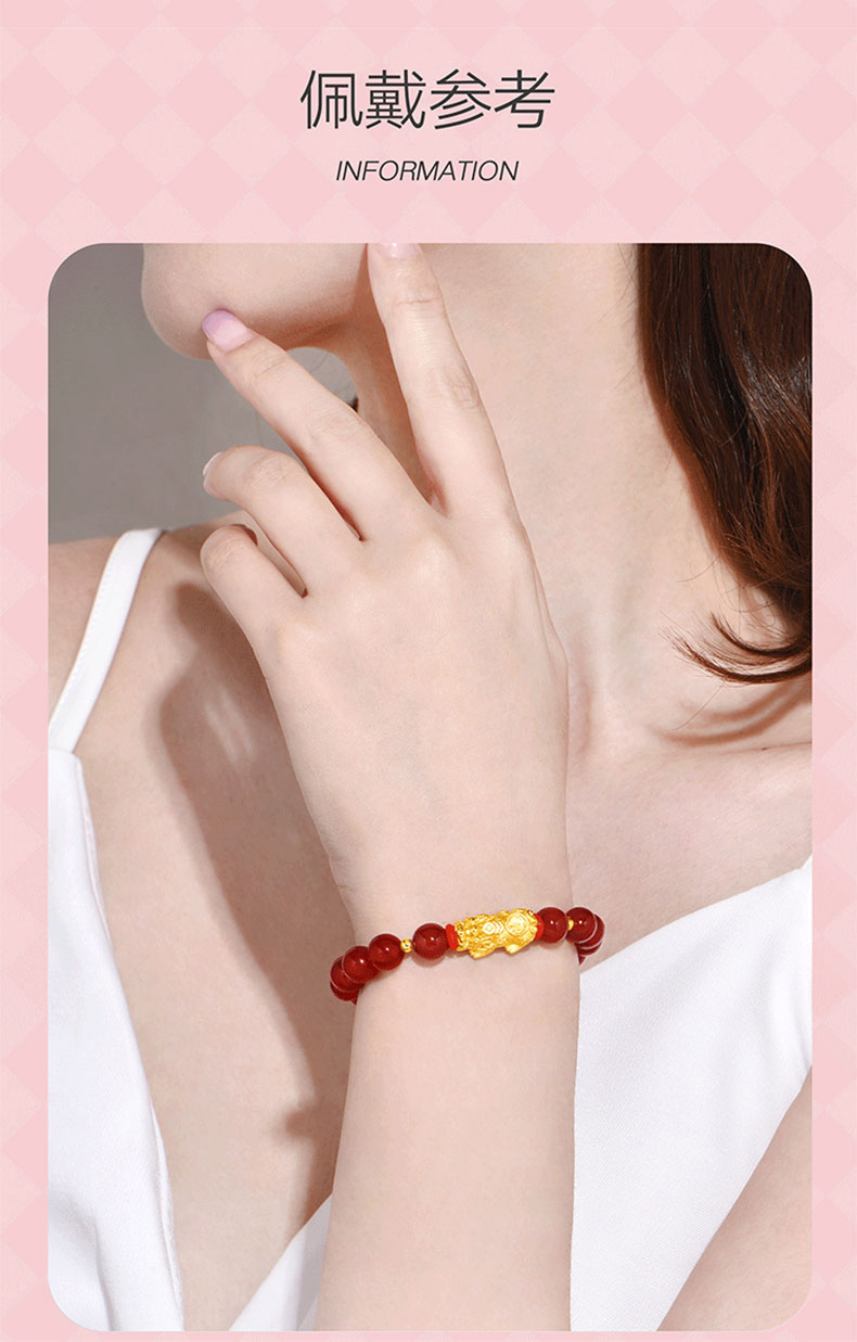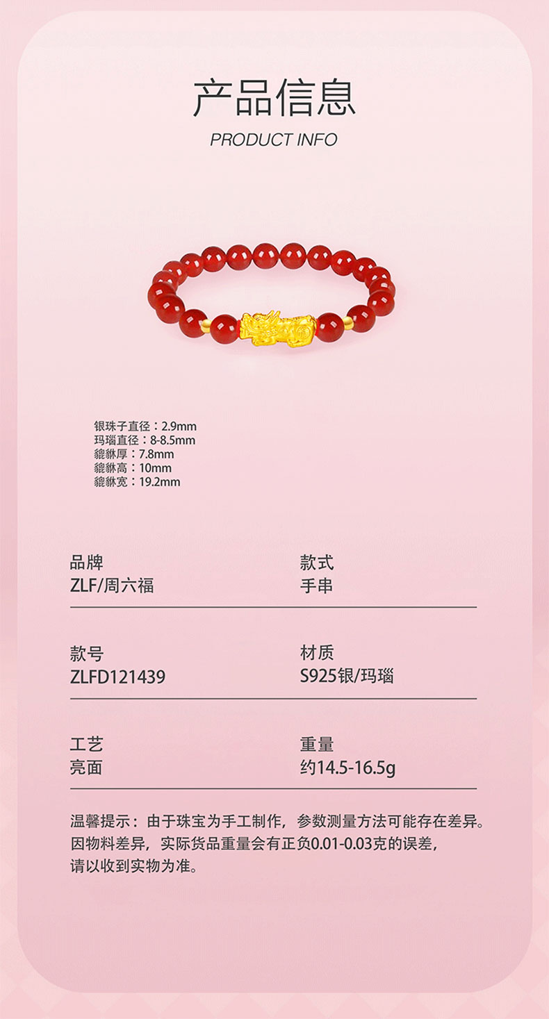 【品牌直发】周六福 925银红玛瑙貔貅手串