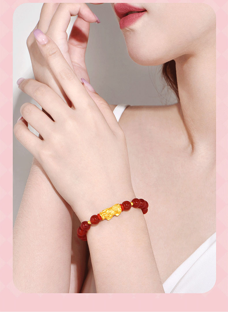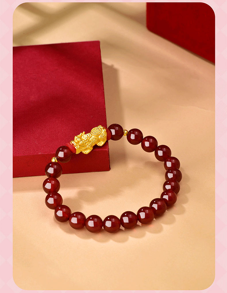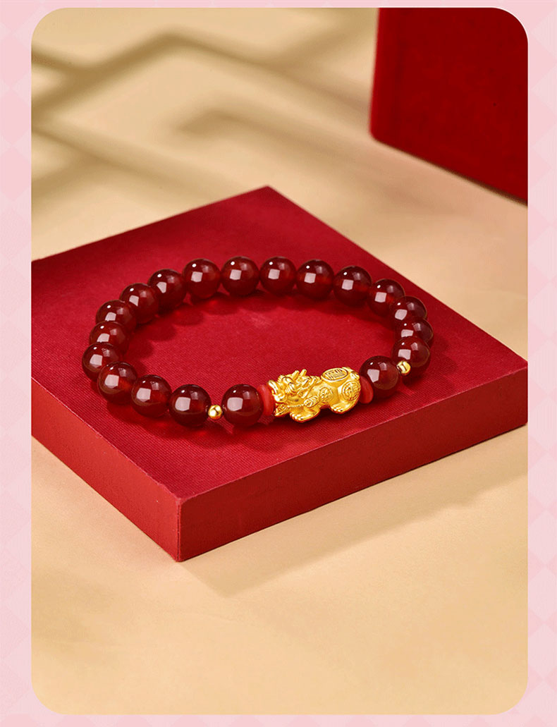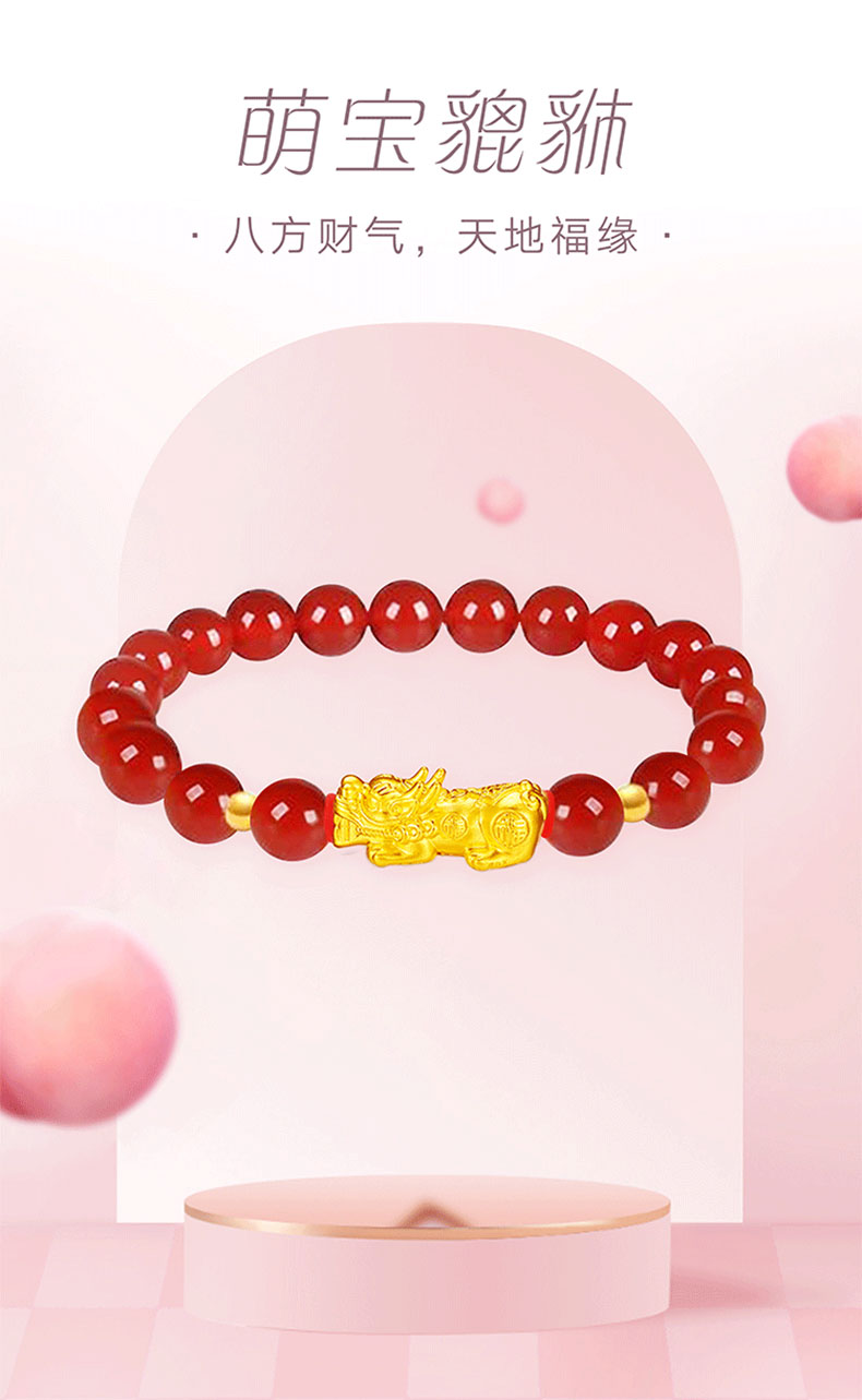 【品牌直发】周六福 925银红玛瑙貔貅手串
