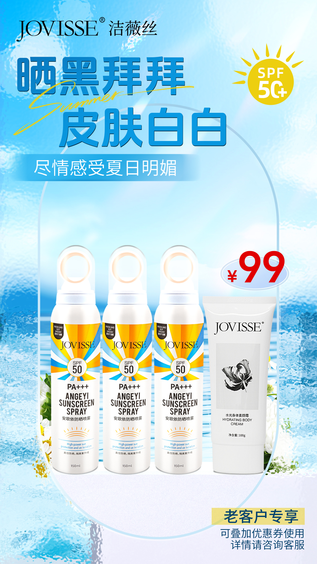 【老客专享】JOVISSE/洁薇丝安歌依防晒喷雾3瓶+JOVISSE水光身体素颜霜1支