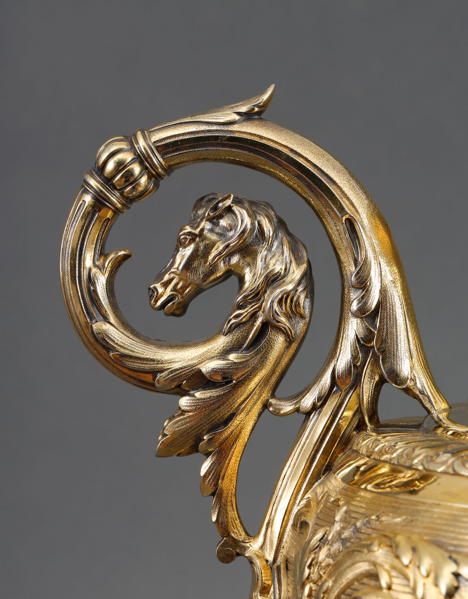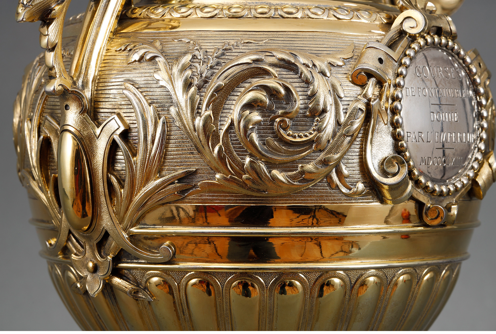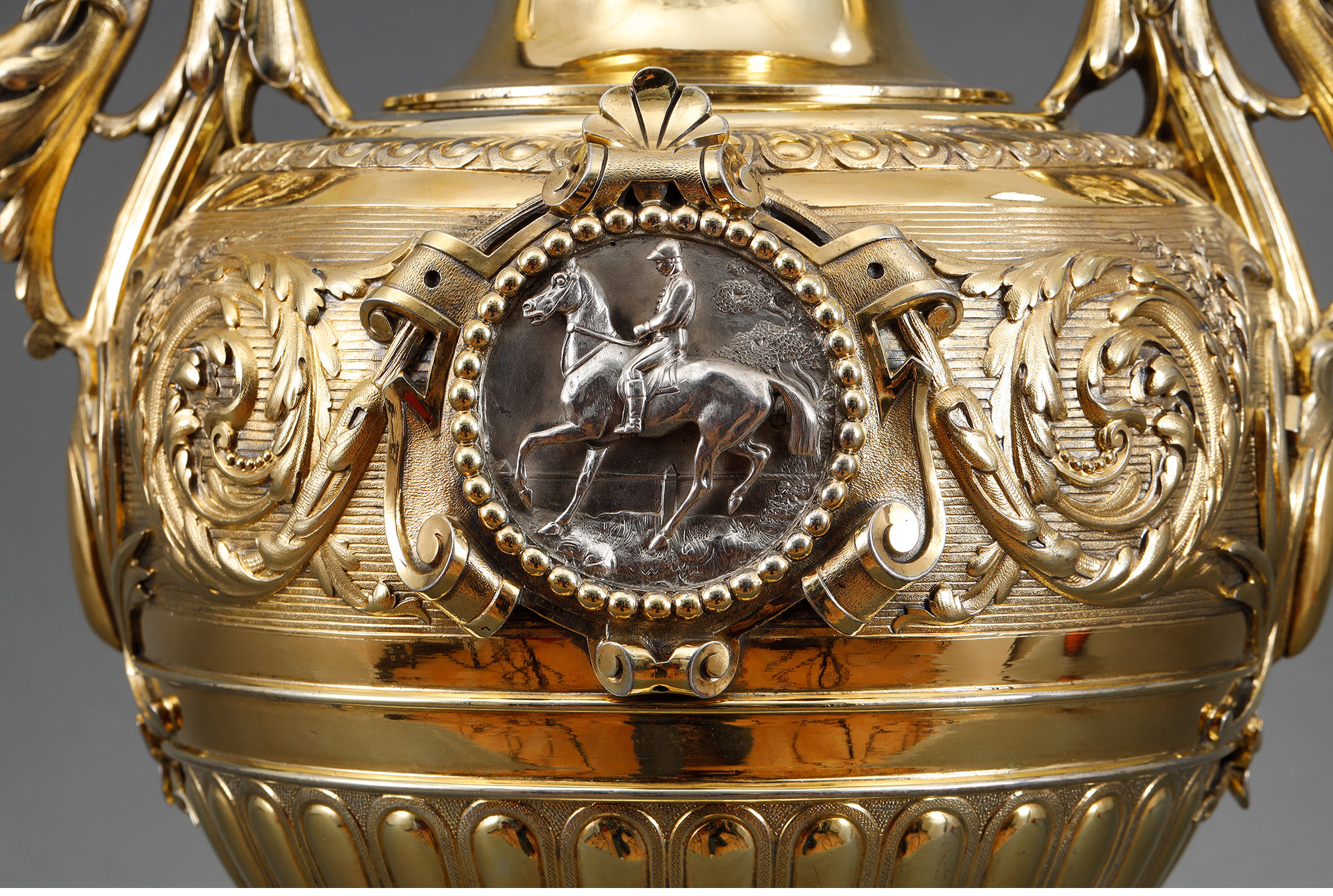 独角鹿西洋古董DUPONCHEL签名月桂小天使纯银镀金双耳式纪念奖杯