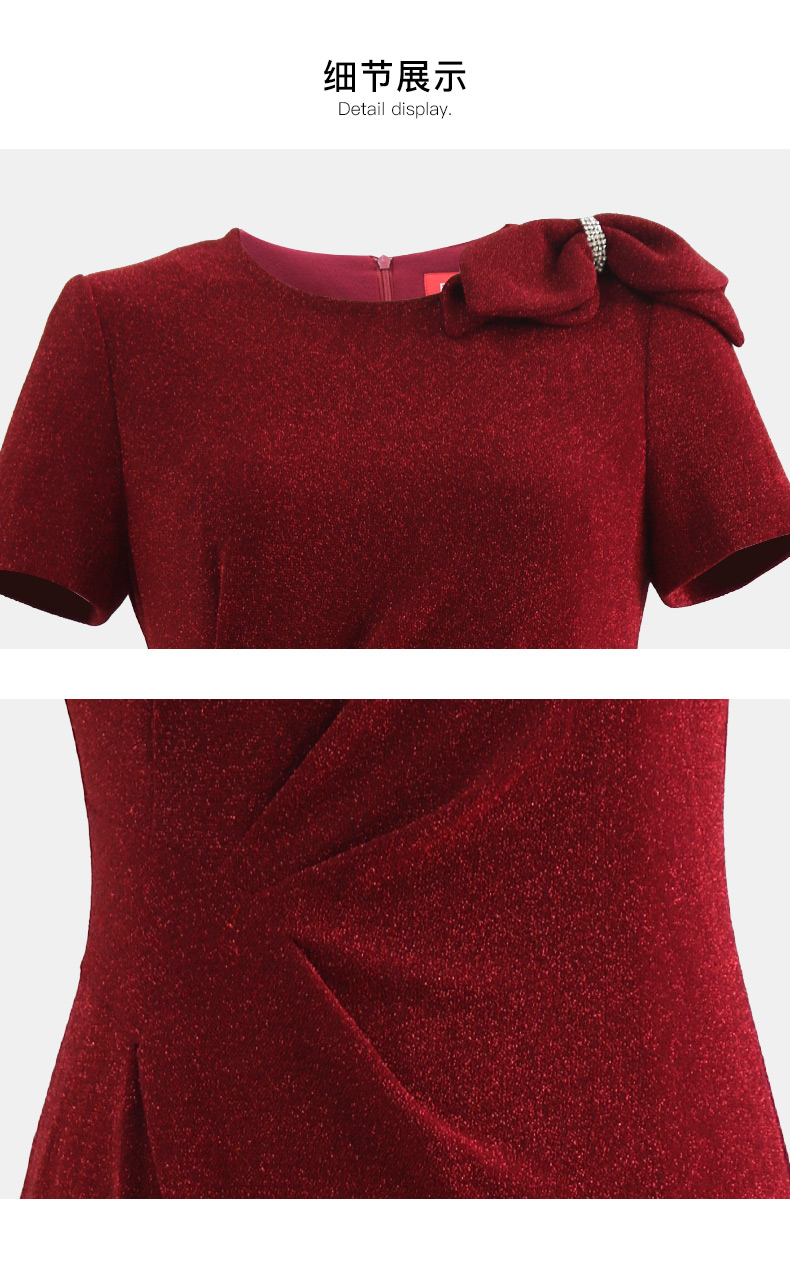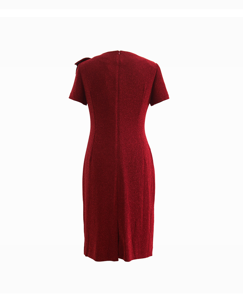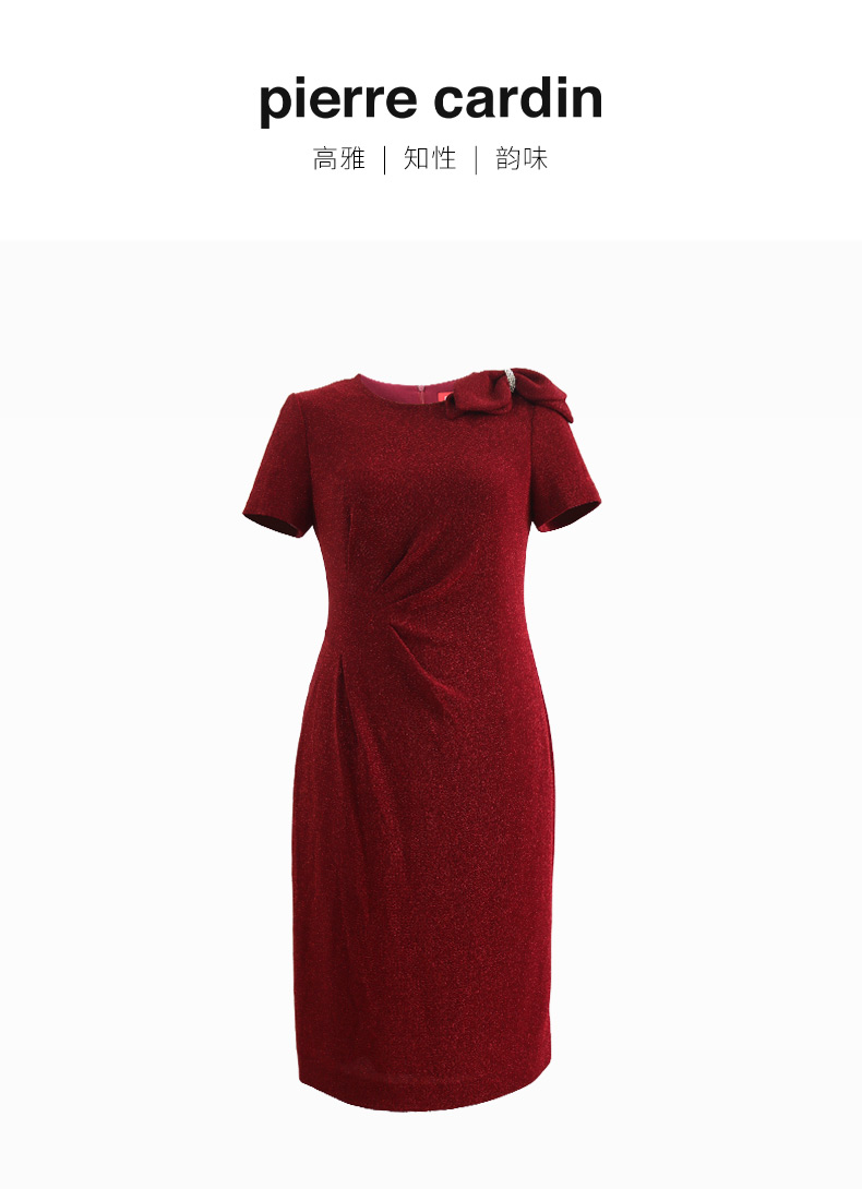 皮尔卡丹女装连衣裙红色侧腰捏褶婚庆喜宴大方得体裙P4200D2145R0