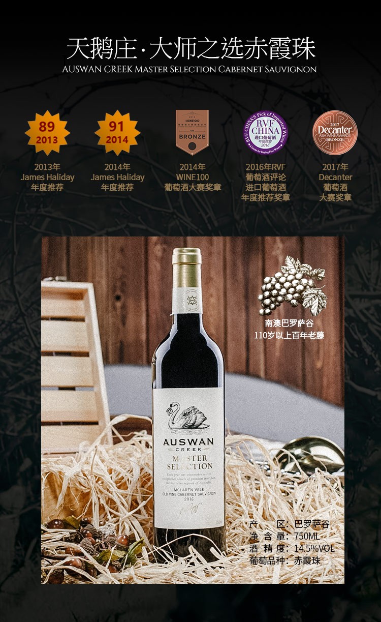 天鹅庄干红葡萄酒大师之选赤霞珠750ml