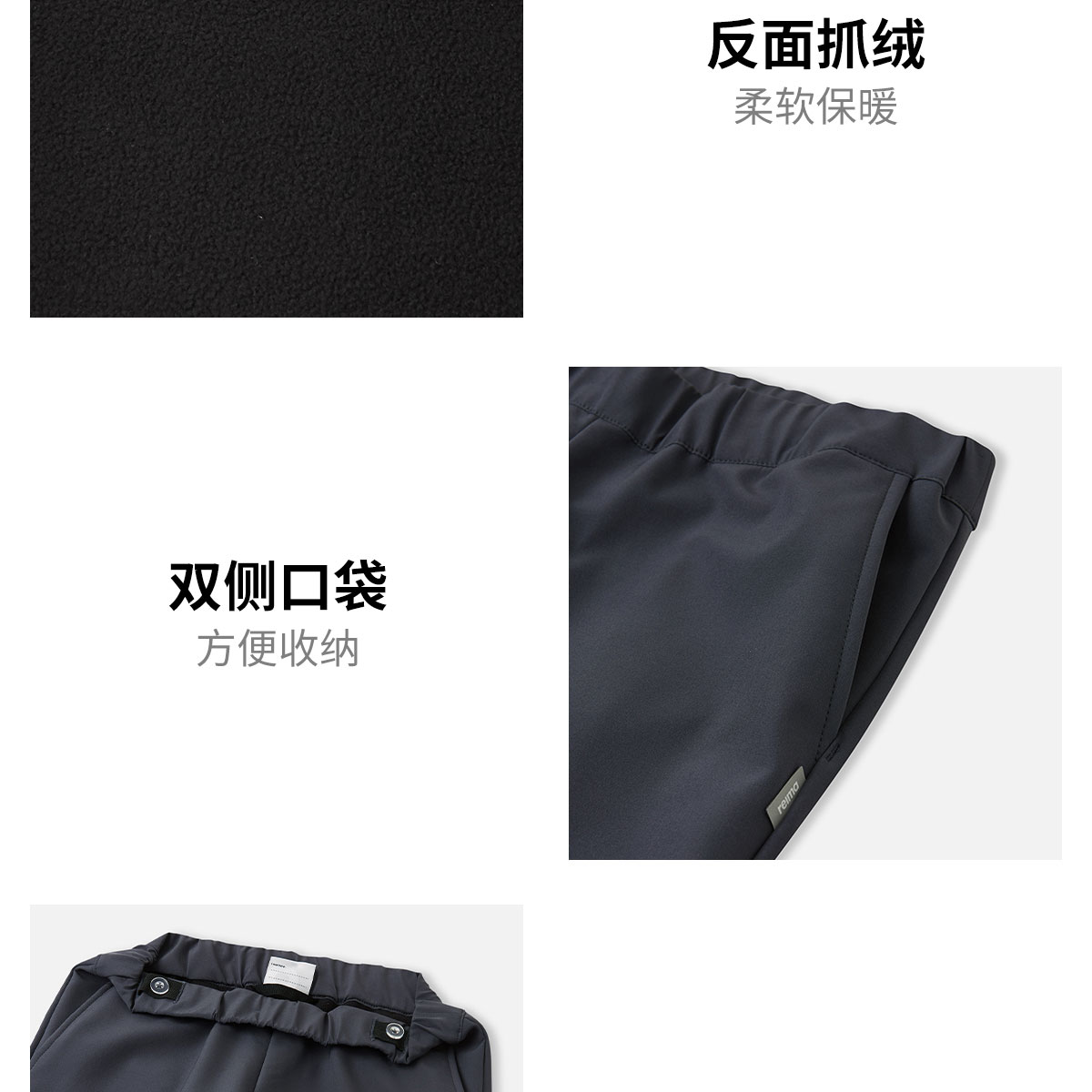 芬兰reima2025男女儿童拒风拒水抓绒保暖舒适运动软壳长裤子