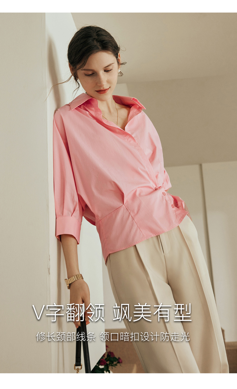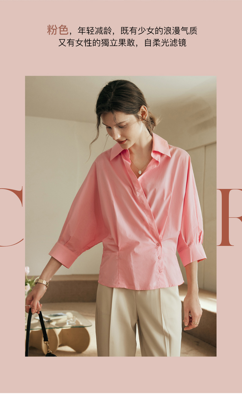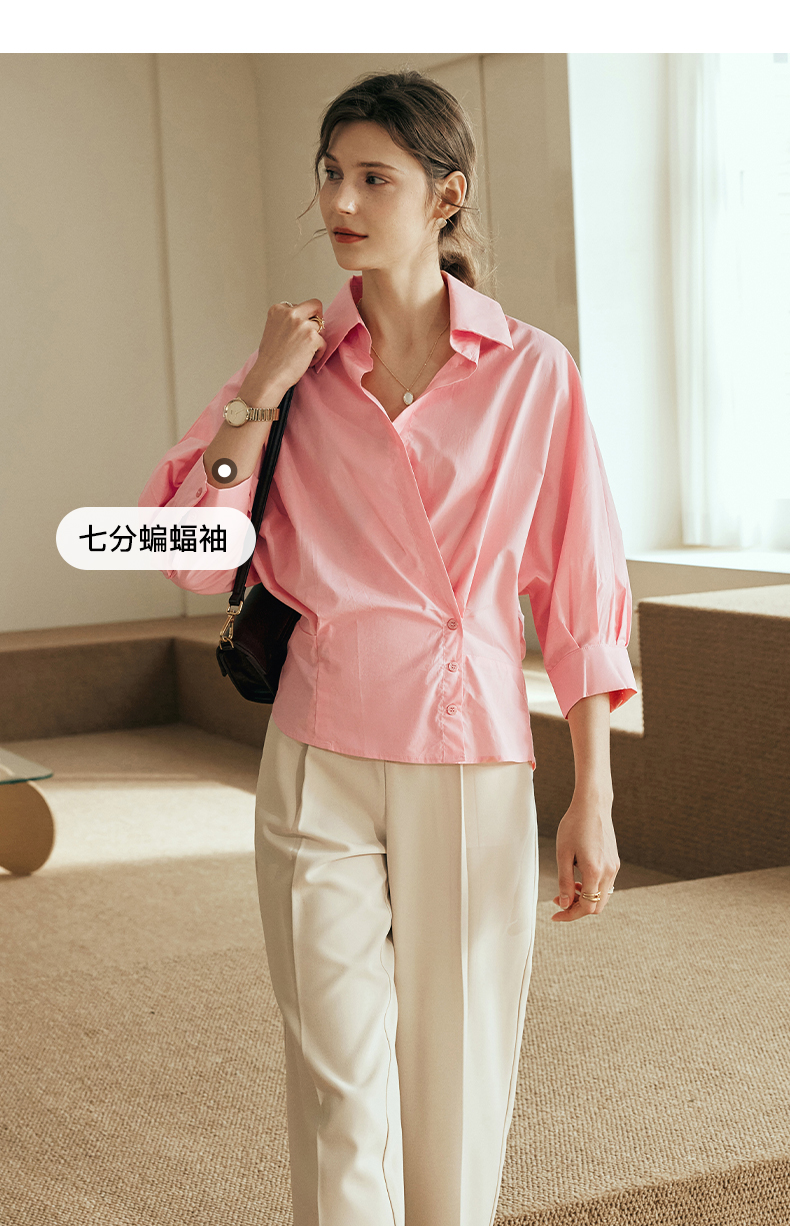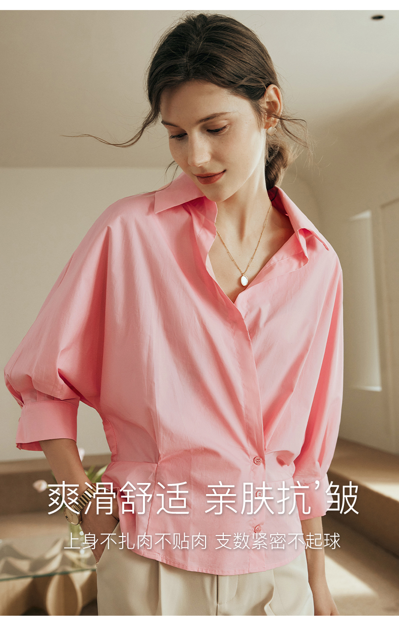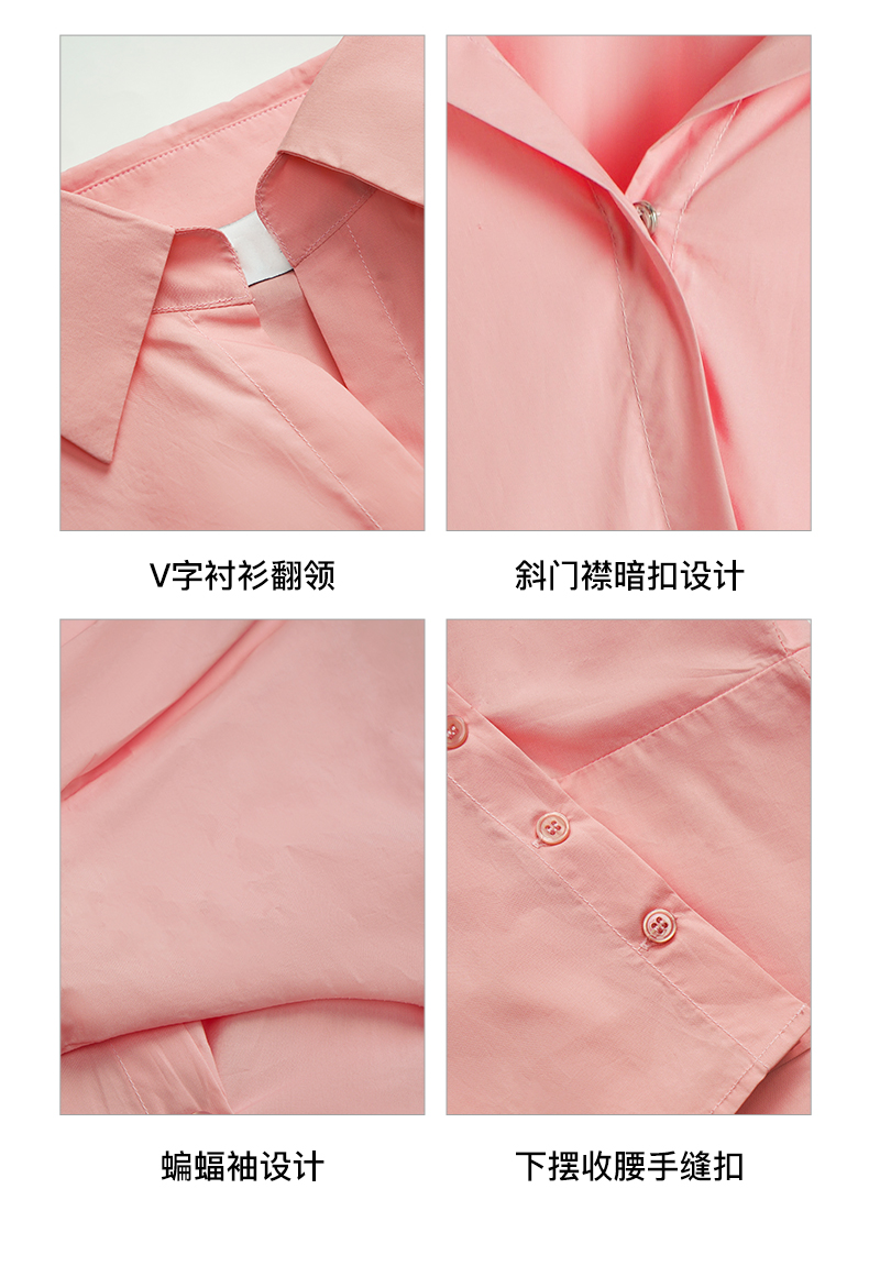 OLrain欧芮儿法式粉色衬衫女夏季2023年新款宽松七分袖一片式衬衣