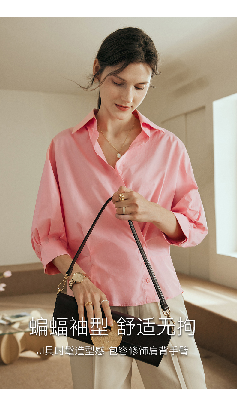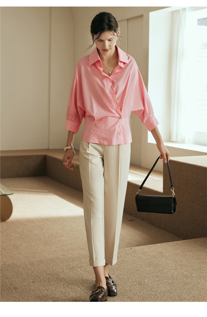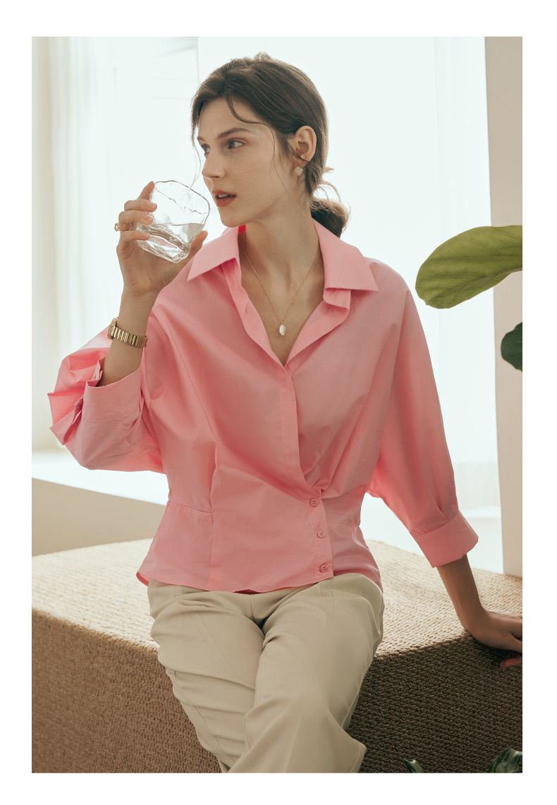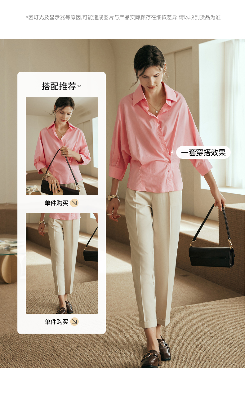 OLrain欧芮儿法式粉色衬衫女夏季2023年新款宽松七分袖一片式衬衣