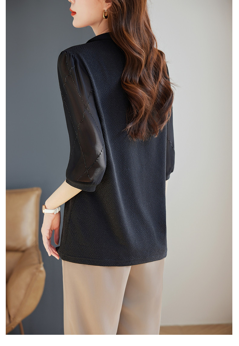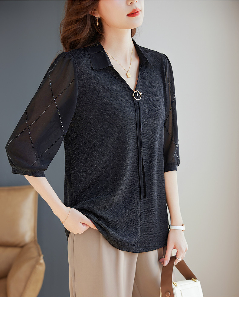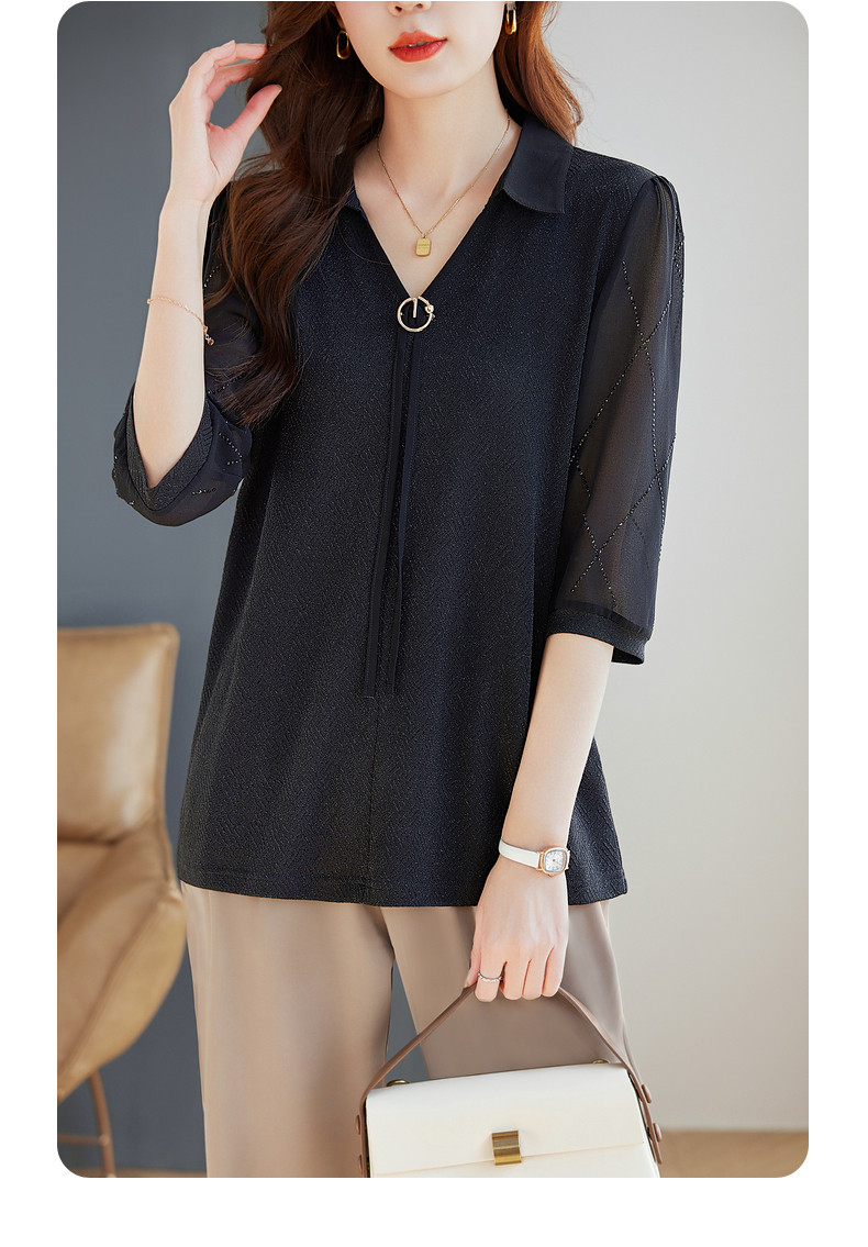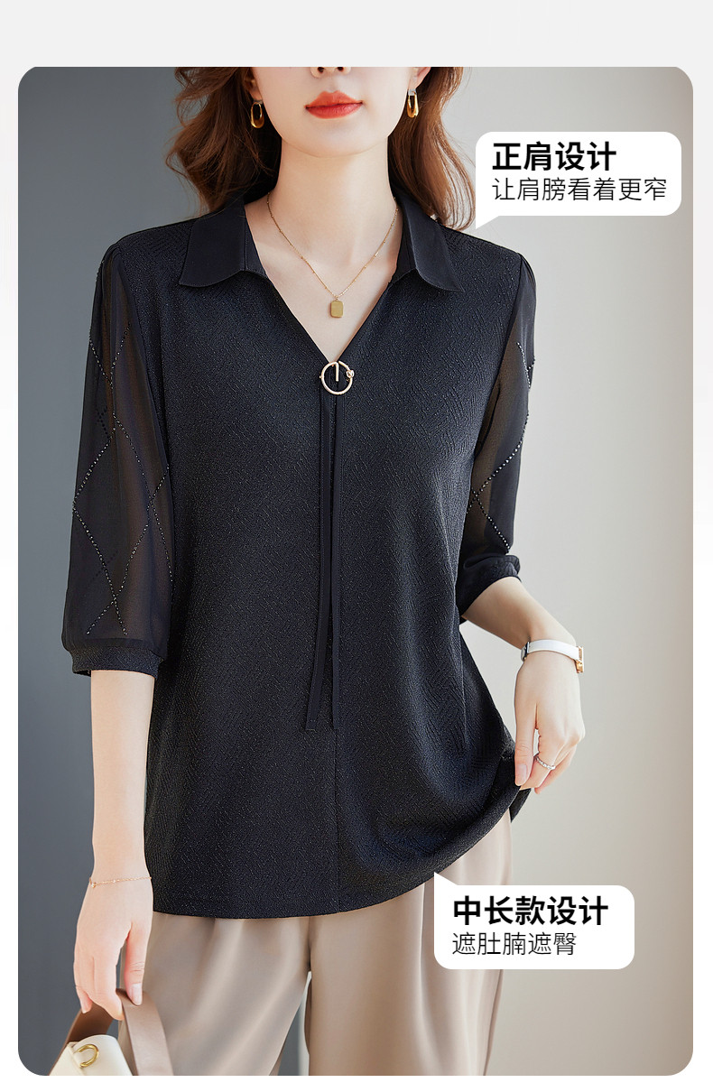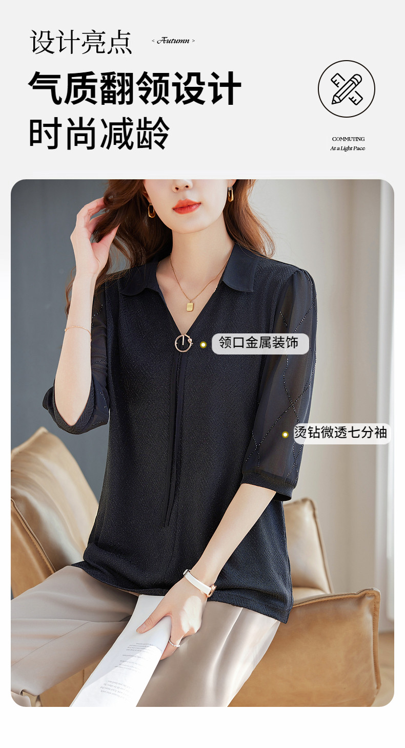 女士雪纺衫2026夏季新款妈妈翻领衬衣女装宽松大码七分袖衬衫上衣