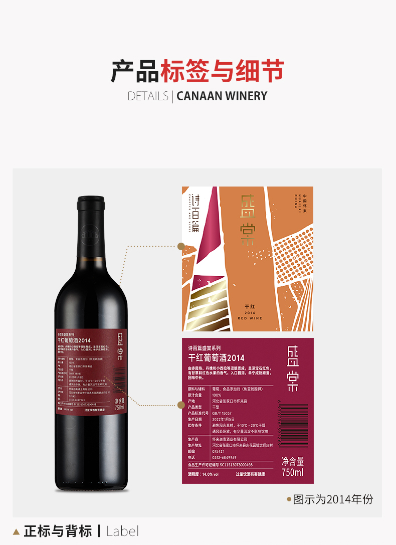 【诗百篇】中国怀来迦南酒业 2014年份盛棠干红葡萄酒 单宁成熟顺滑 赤霞珠 丹魄和小西拉等混酿 赠礼盒