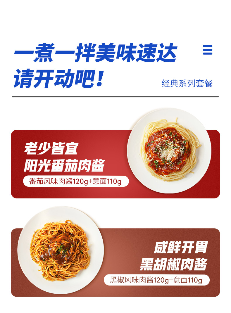 【任选4件5折】小牛凯西原味/黑椒味意面组合*4(意面110g*4+意面酱120g*4)
