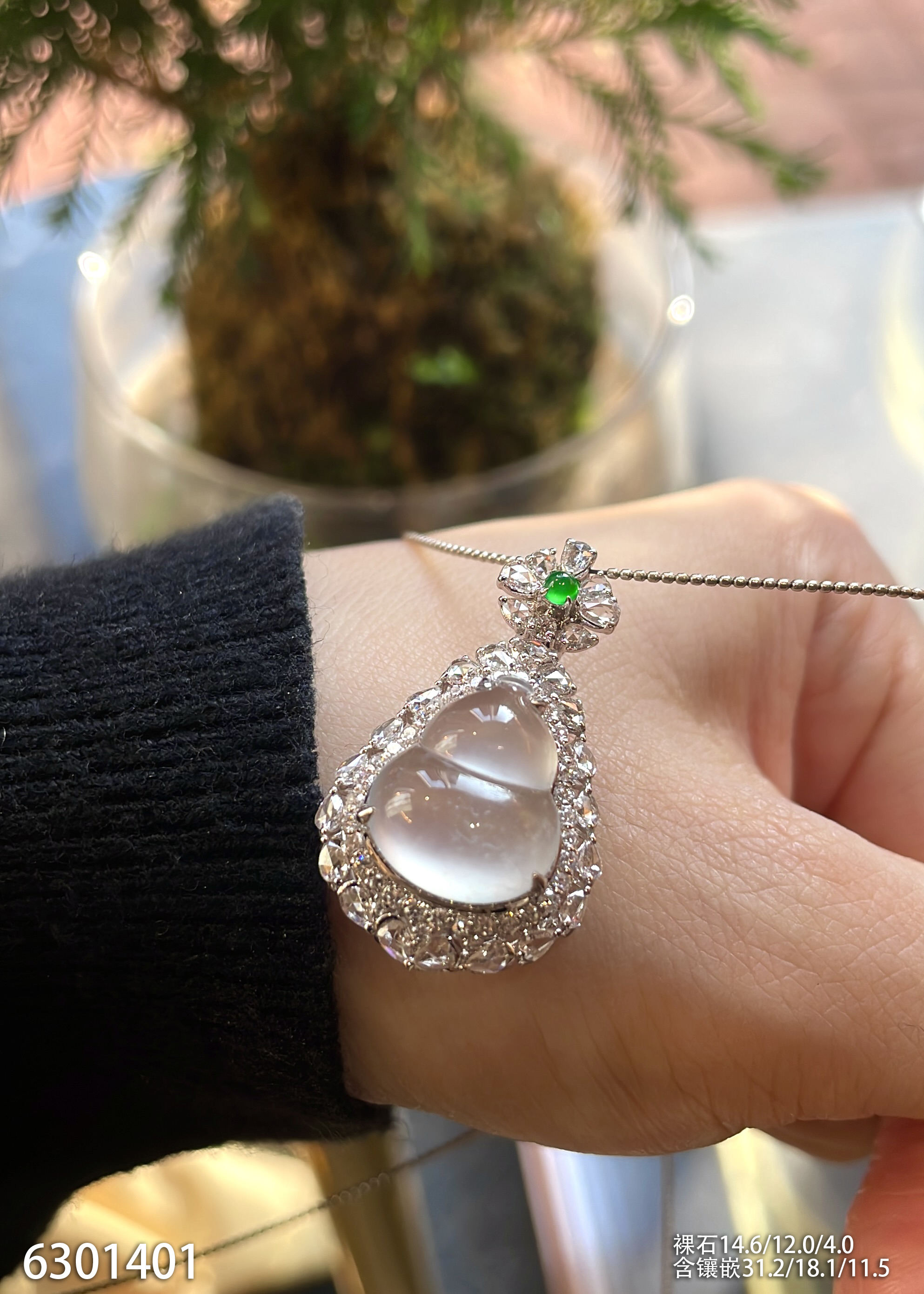 高冰种艳绿蛋面耳钉【6310503】具体价格微信咨询