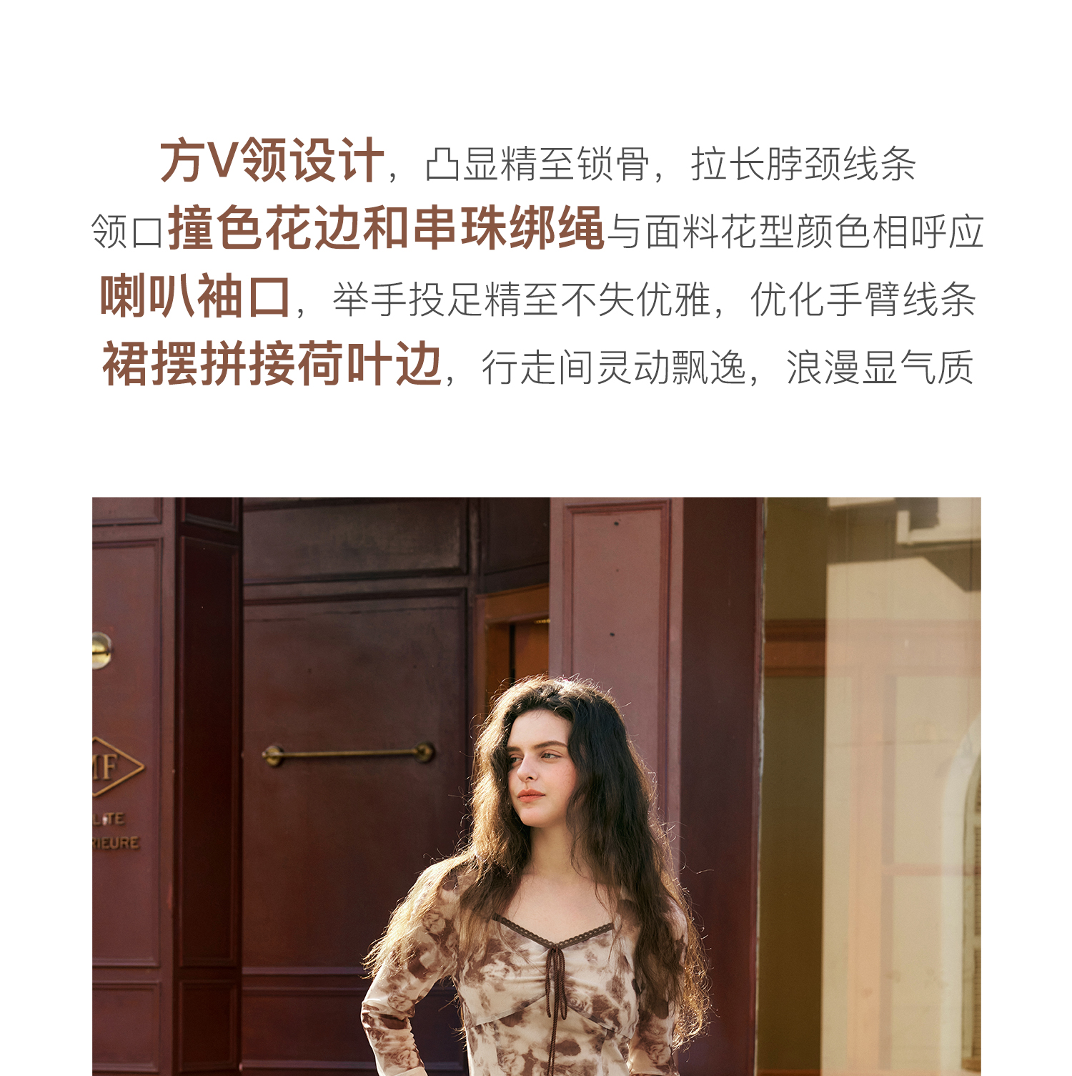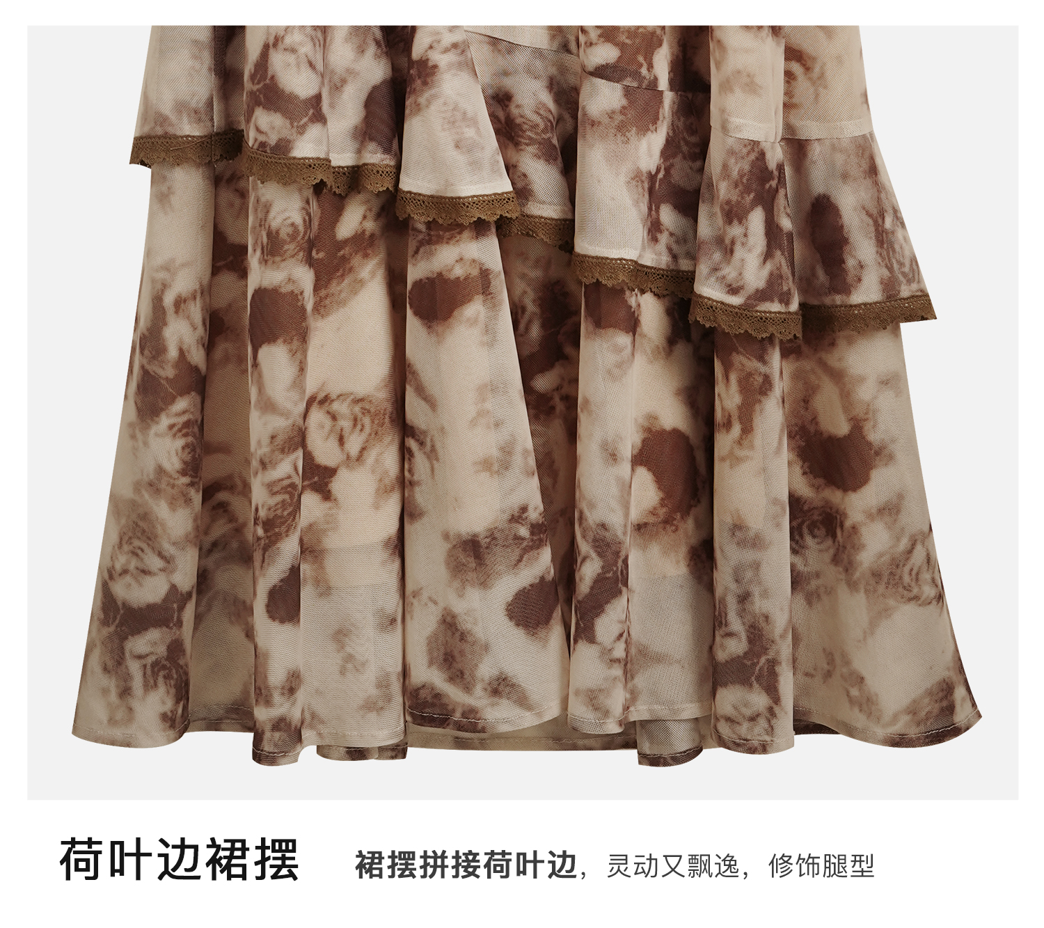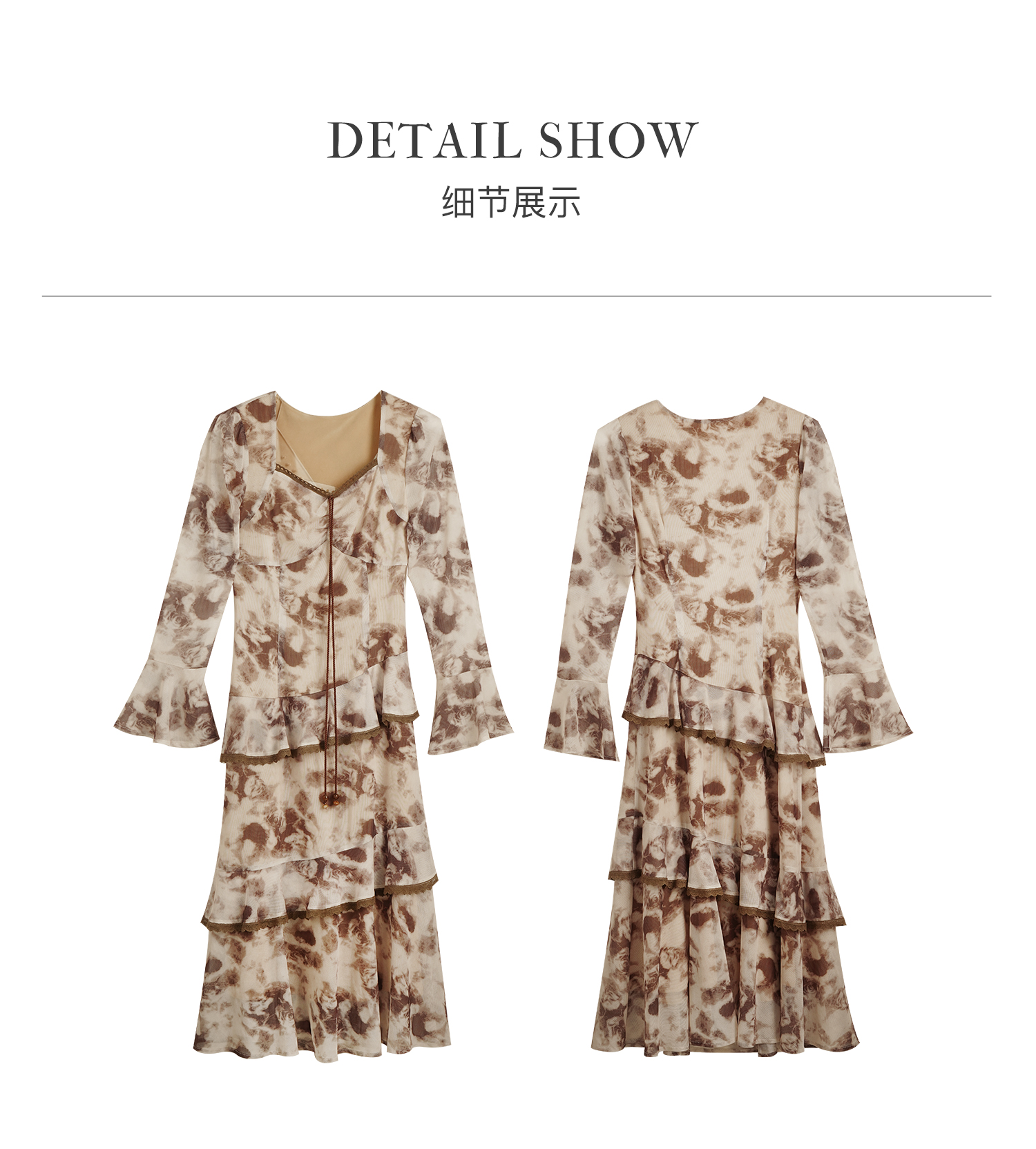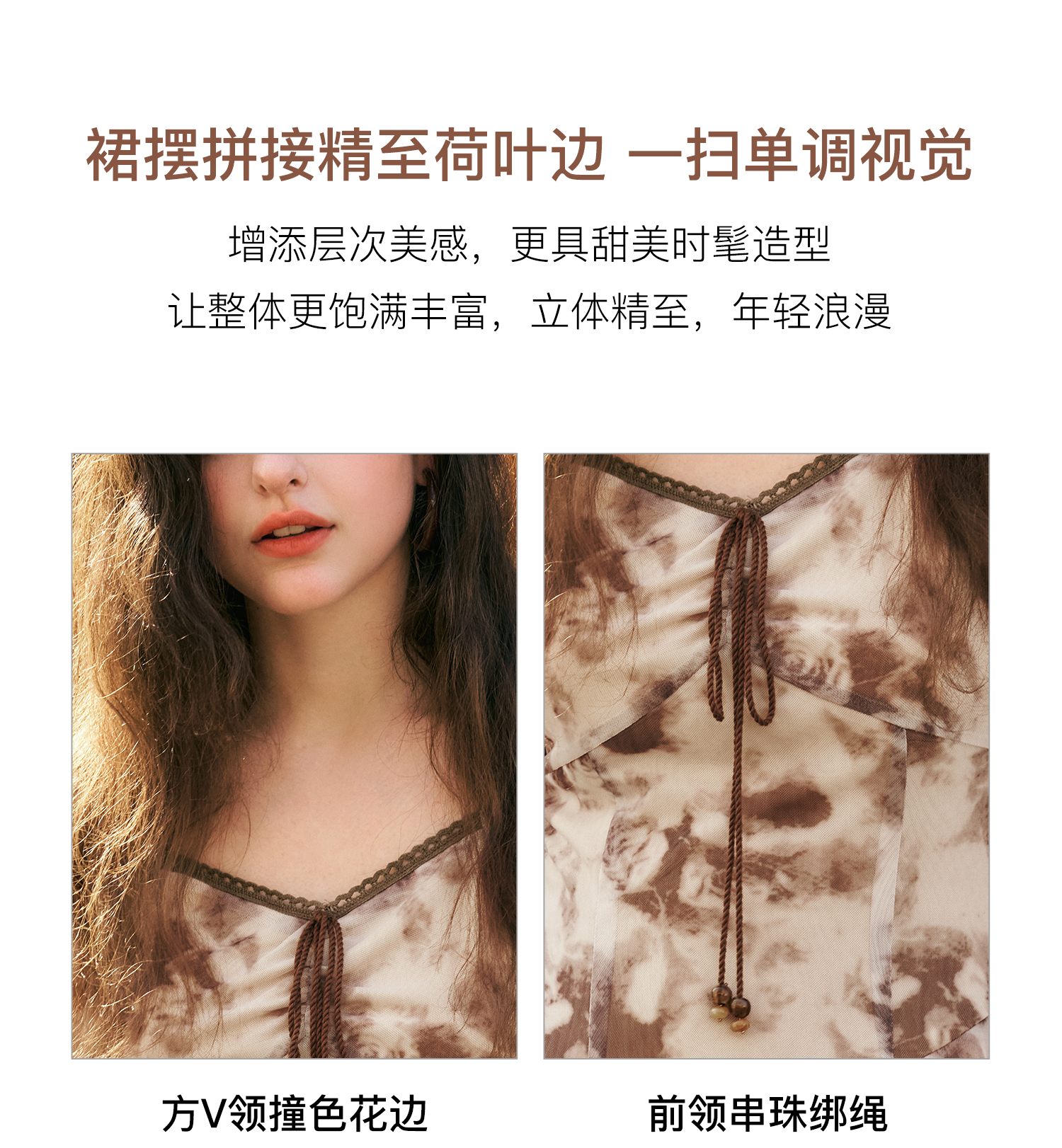 OLrain欧芮儿法式长袖连衣裙女秋季2024年新款荷叶边晕染V领裙子