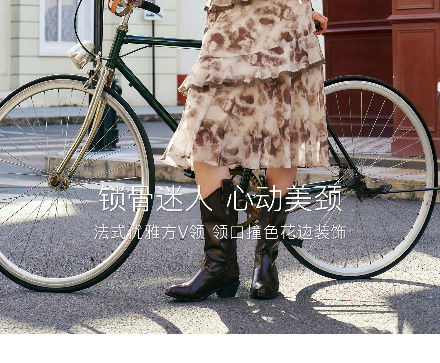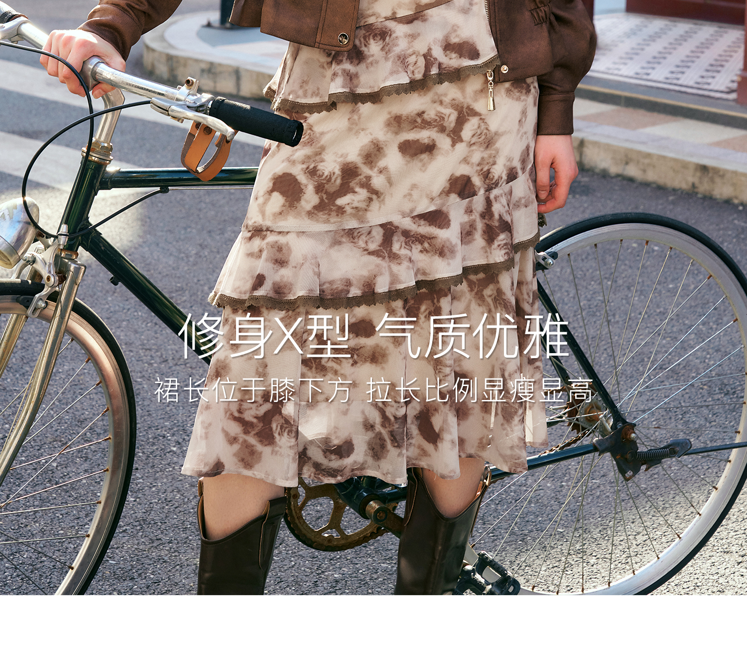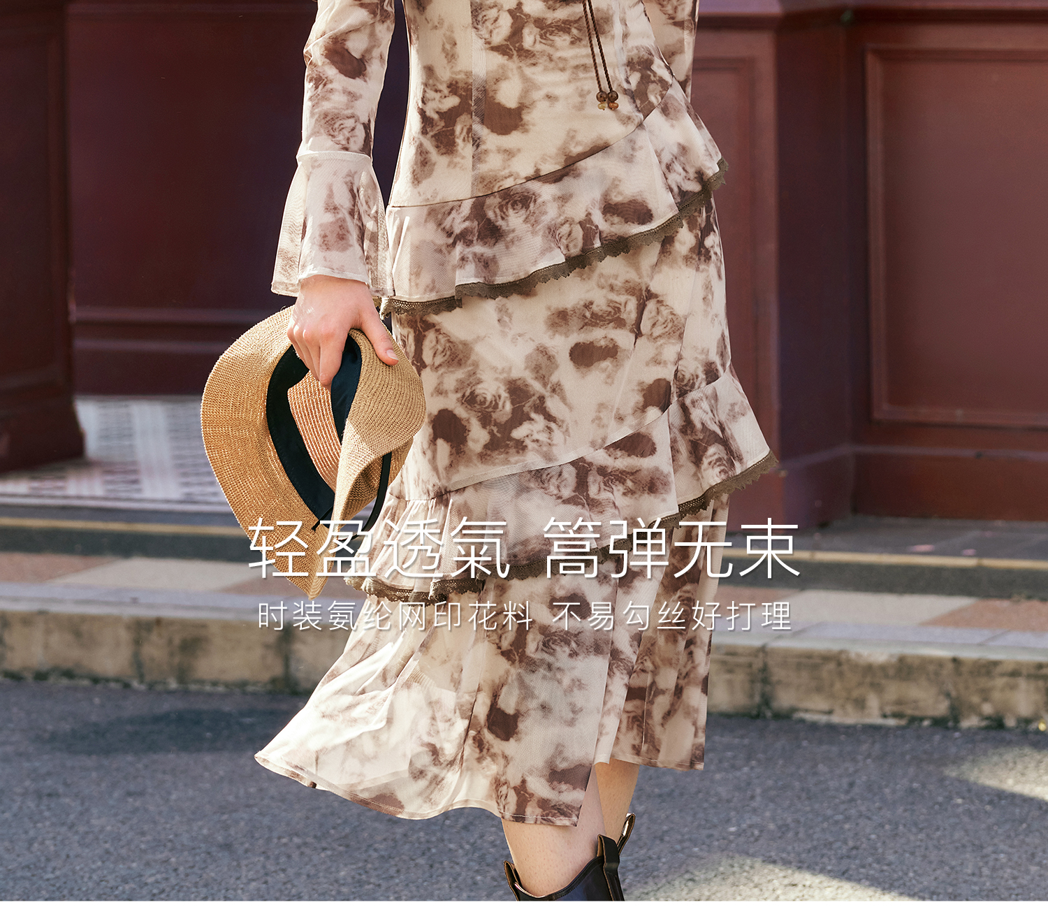 OLrain欧芮儿法式长袖连衣裙女秋季2024年新款荷叶边晕染V领裙子