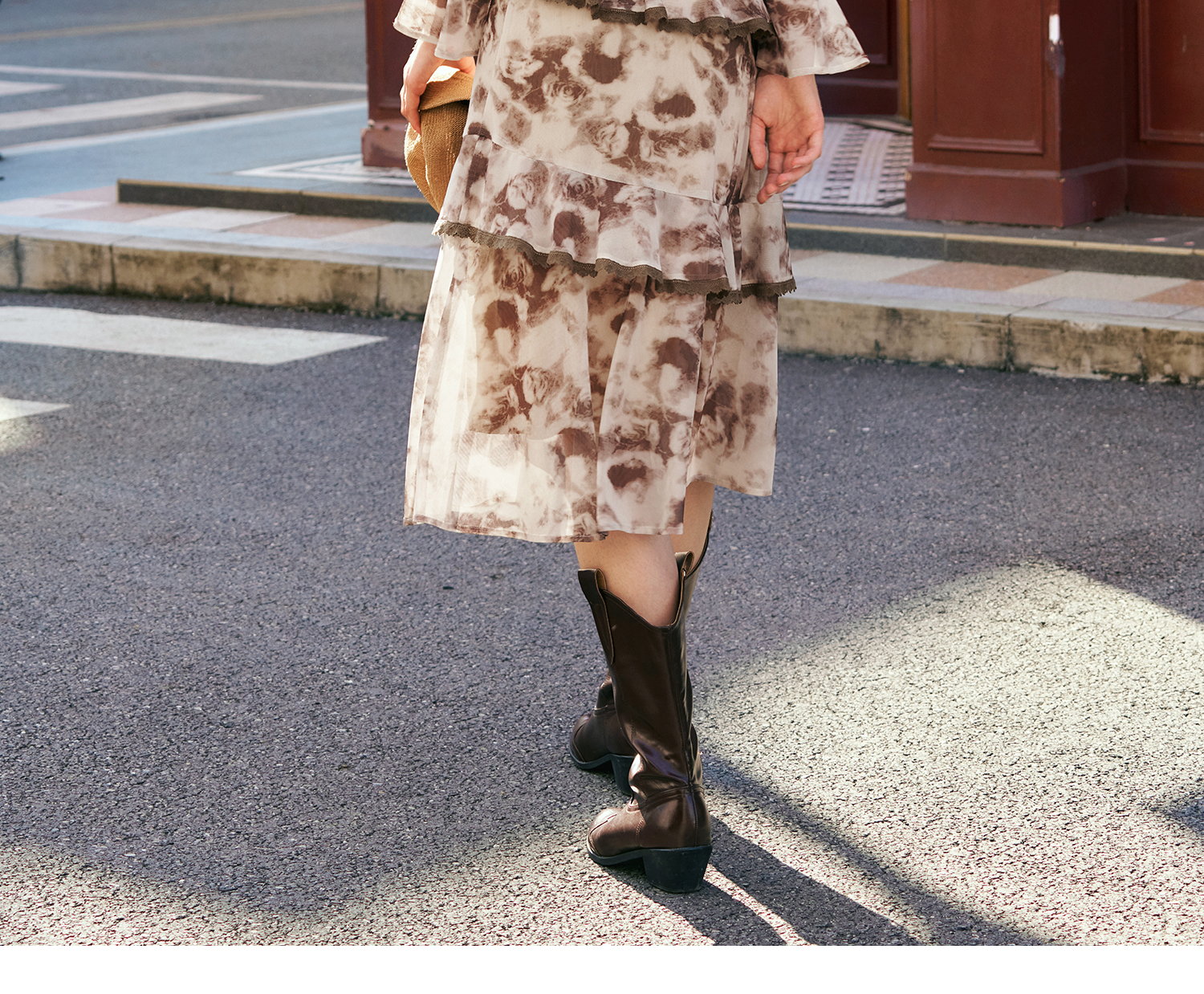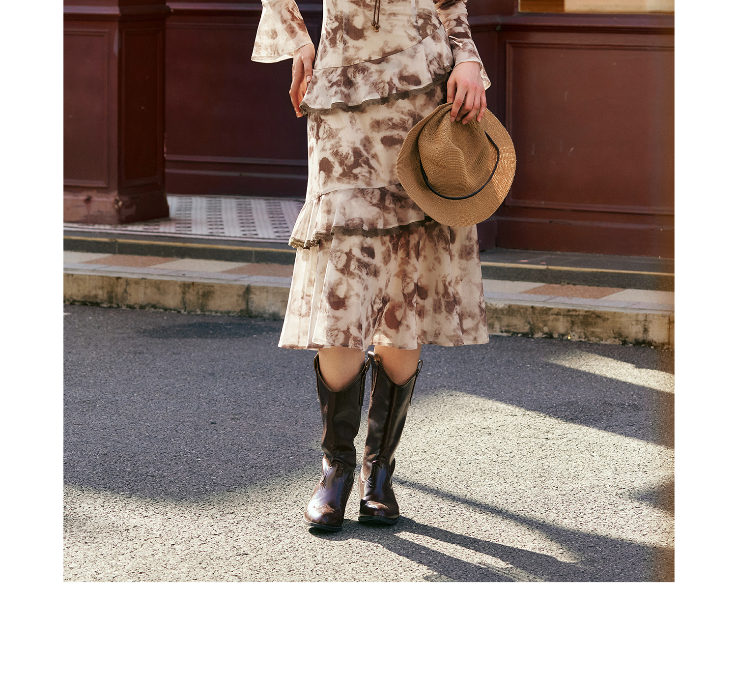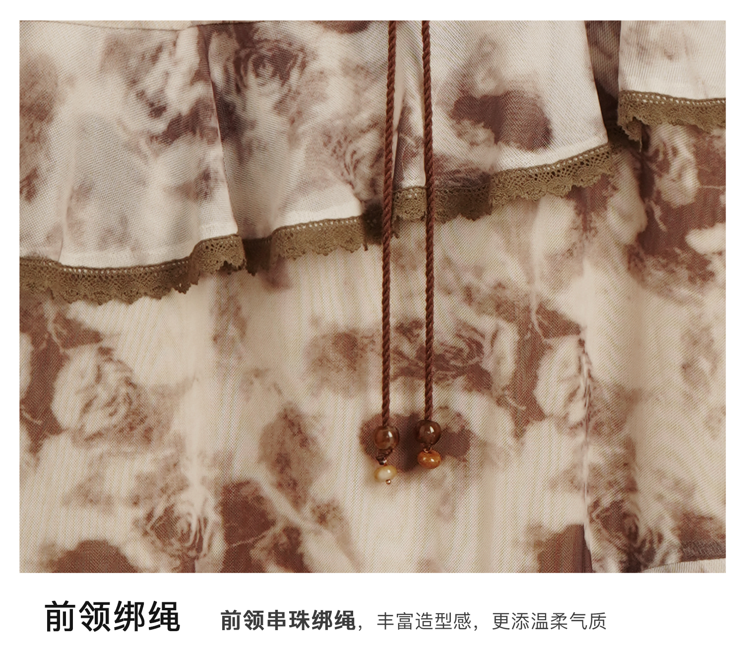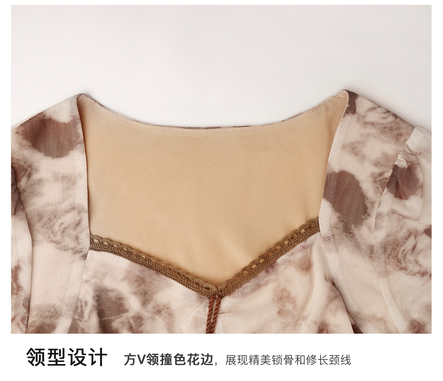 OLrain欧芮儿法式长袖连衣裙女秋季2024年新款荷叶边晕染V领裙子
