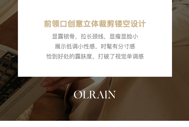 - “精致”是欧芮儿olrain品牌文化的核心,欧芮儿认为,精致的女人,不但要外在动人,更要内在迷人,内外兼修,有魅力、有气质、有内涵,自信而不自傲,优雅而不矫揉,自有万种风情而不轻浮,更不故作矜持。