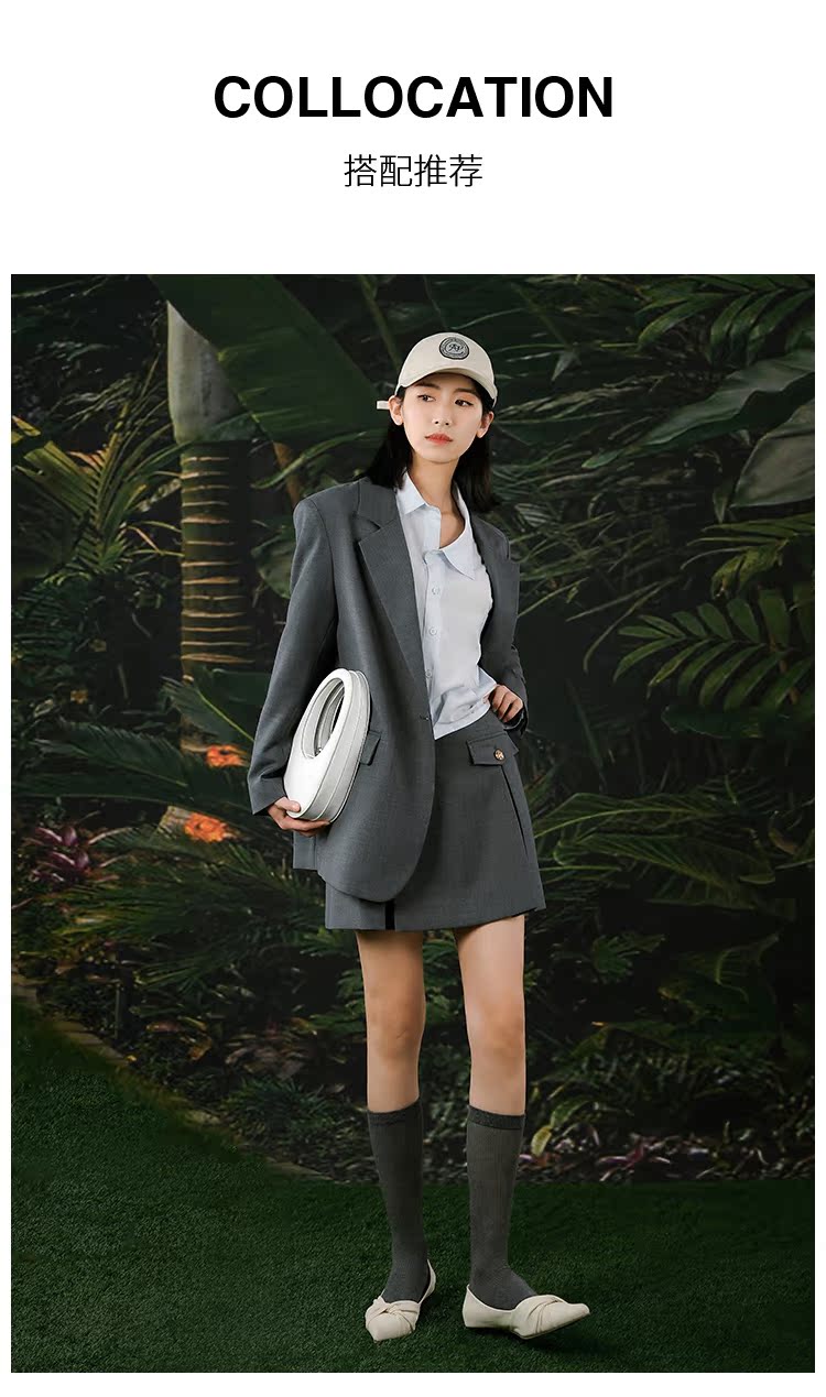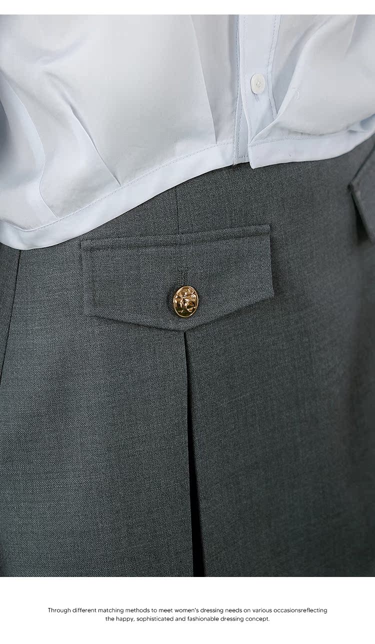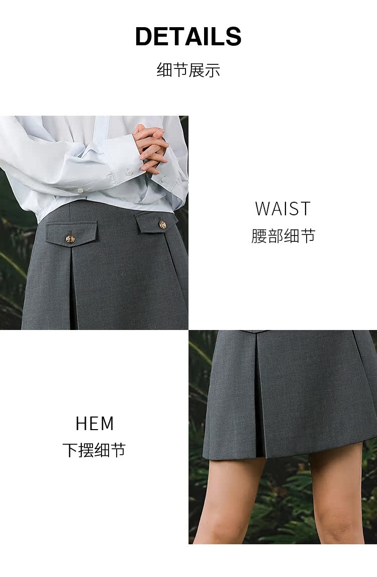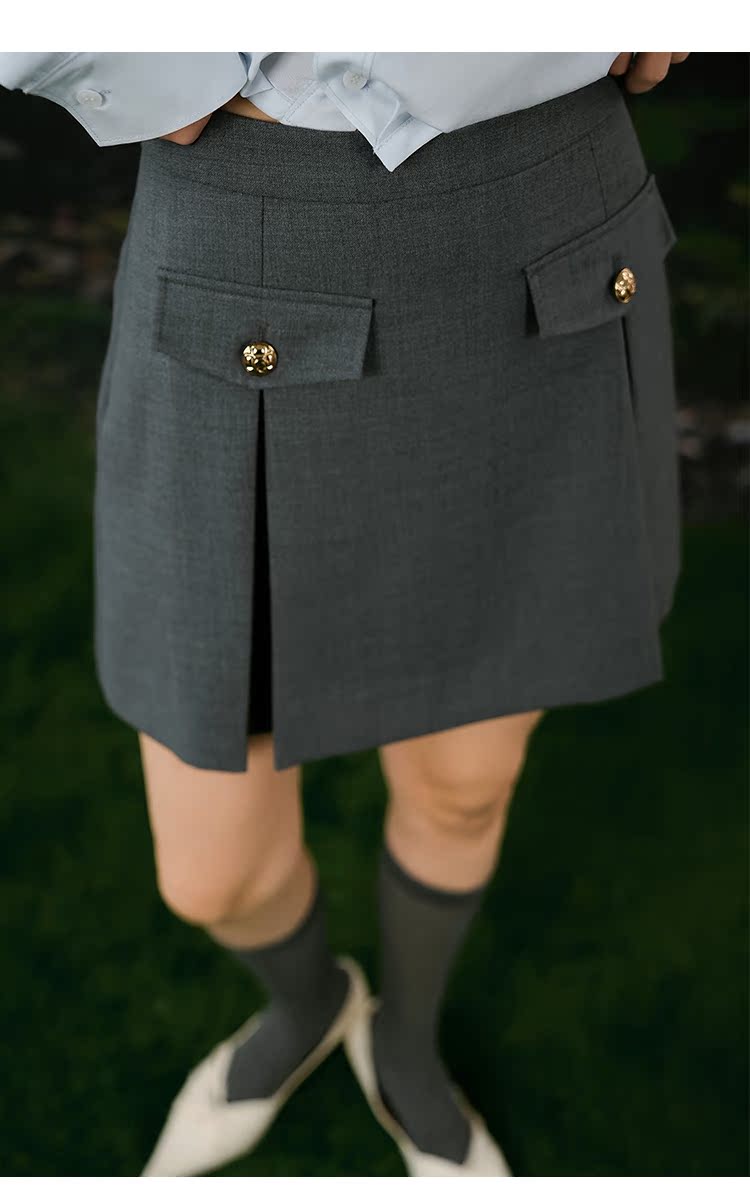 NUTS春秋季新款灰色通勤气质A字高腰短款西装半身裙女412061069