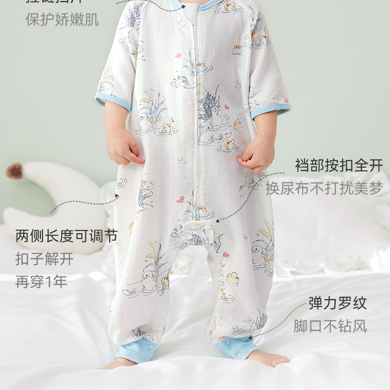 i-baby2-24双层纱恒温分腿睡袋-鸭戏春江