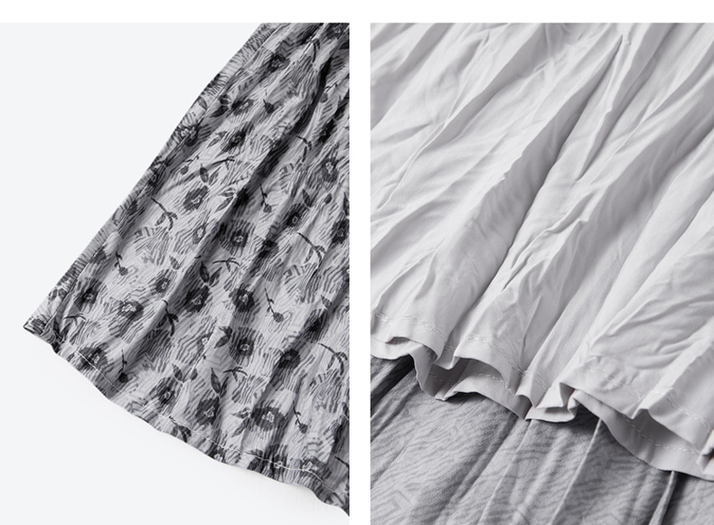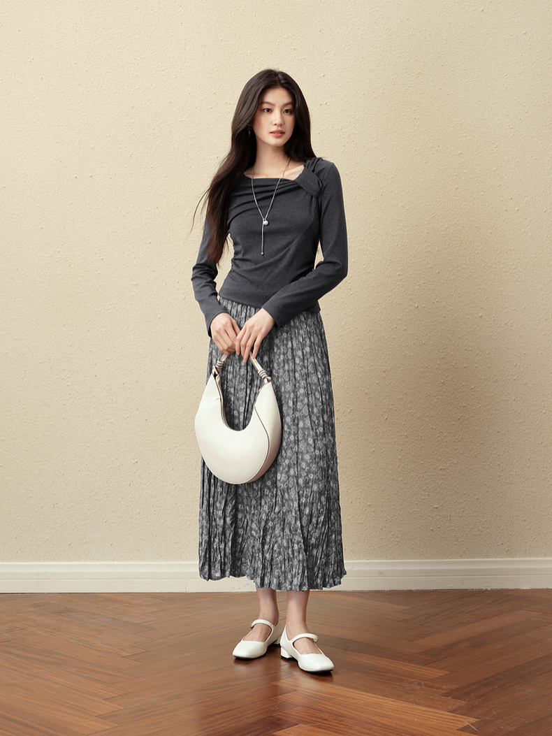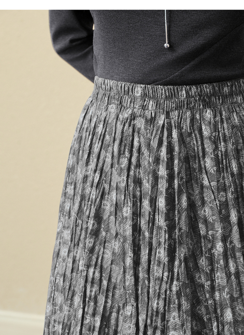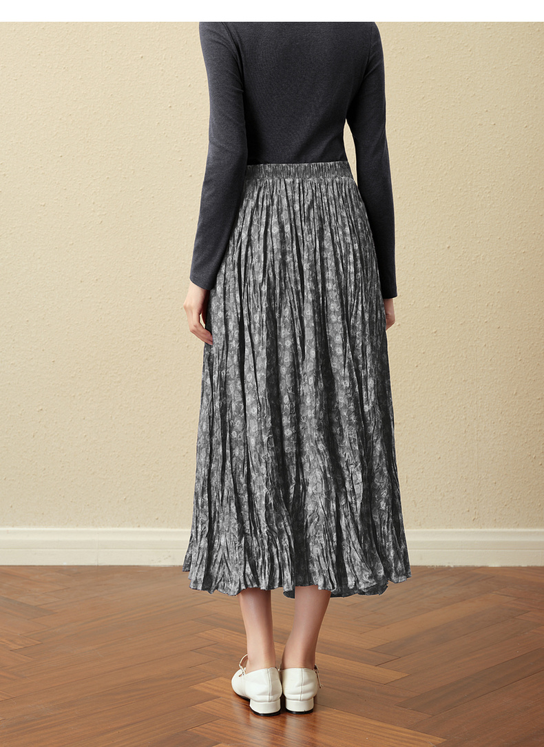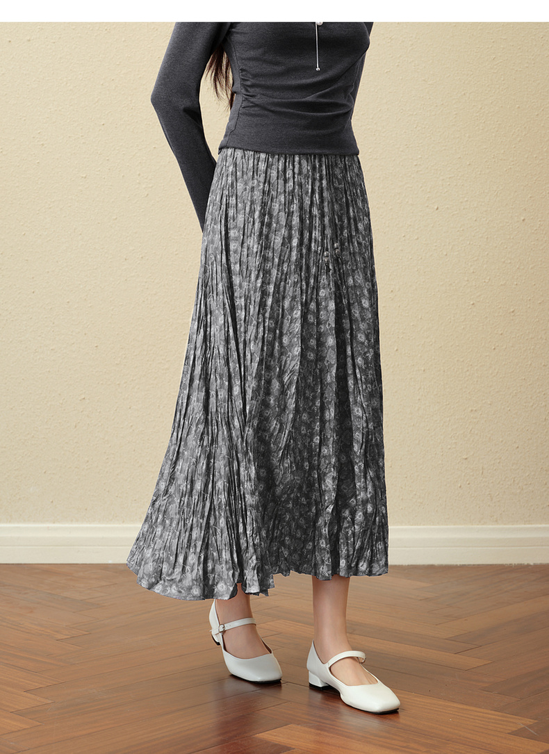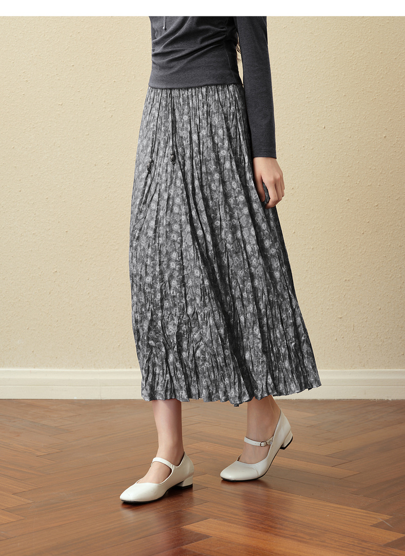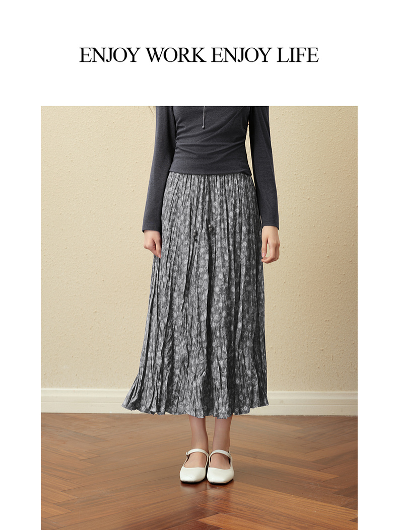 【严选】诗凡黎灰色细褶碎花半身裙2025秋新款灵动飘逸显瘦优雅气质中长裙7G8340981