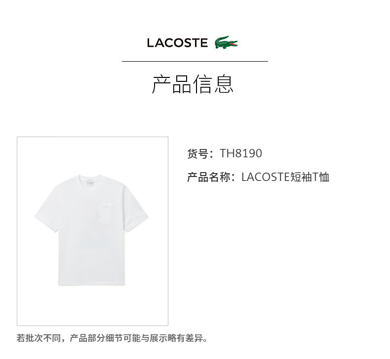 【海南专供价】Lacoste法国鳄鱼夏日系列新款舒适百搭短袖T恤TH8190-98