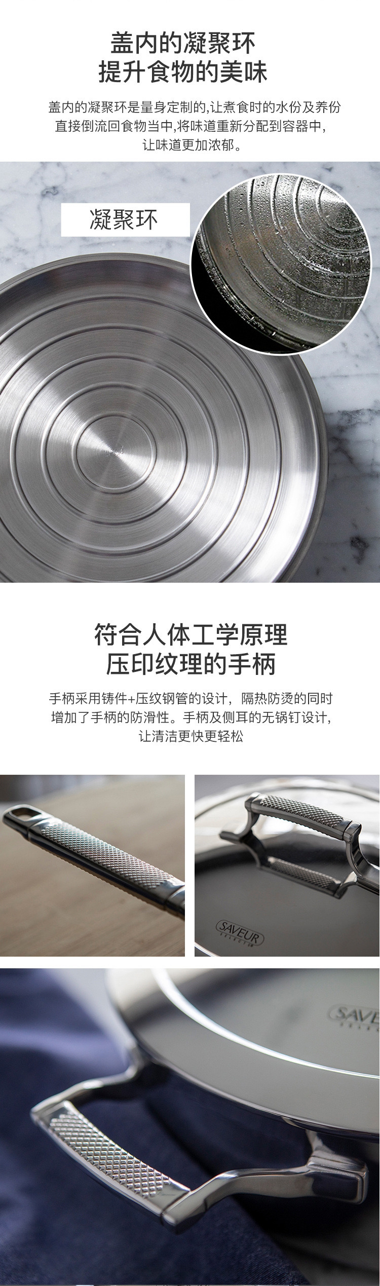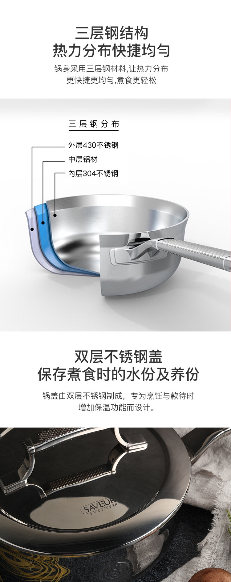 美国SAVEUR不锈钢汤锅煎炒锅单柄煲烹饪厨具家用锅具套装