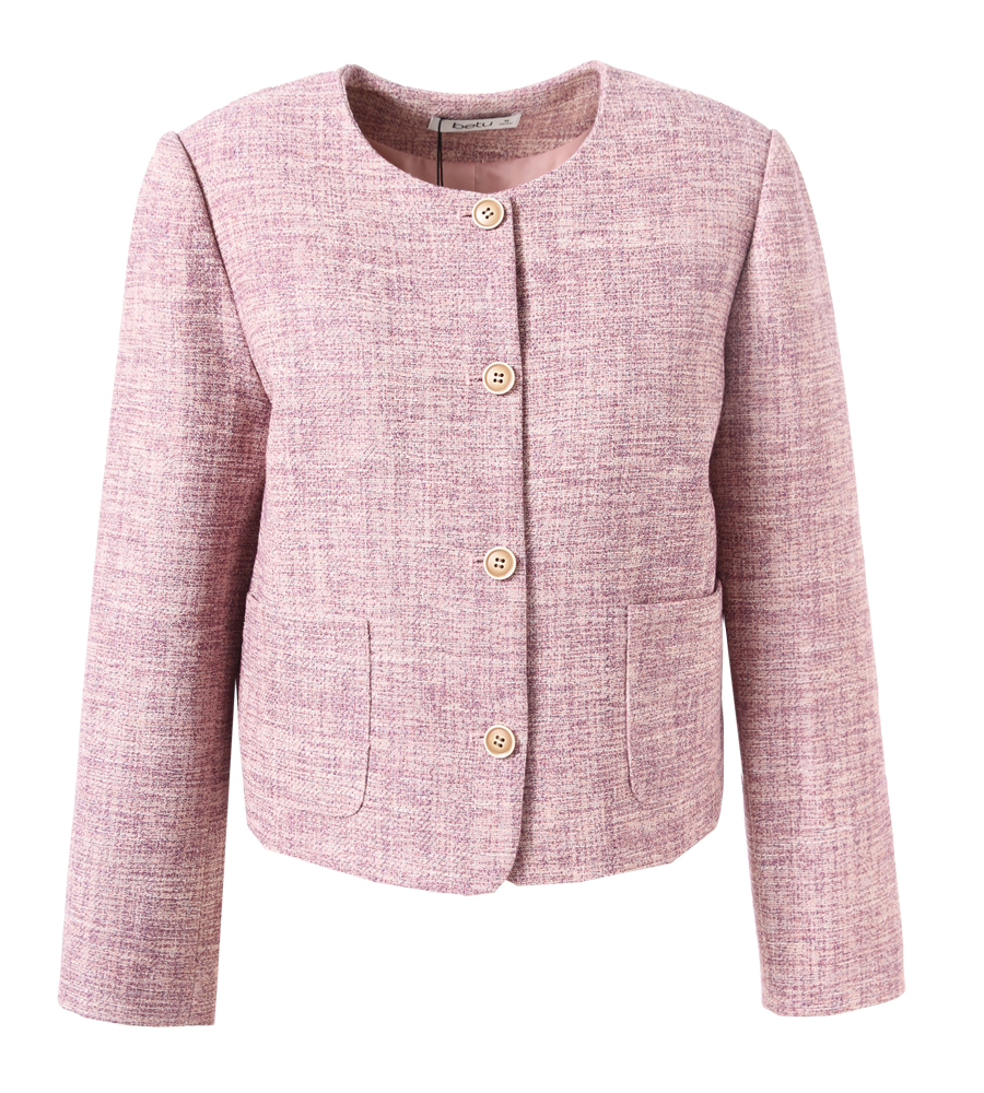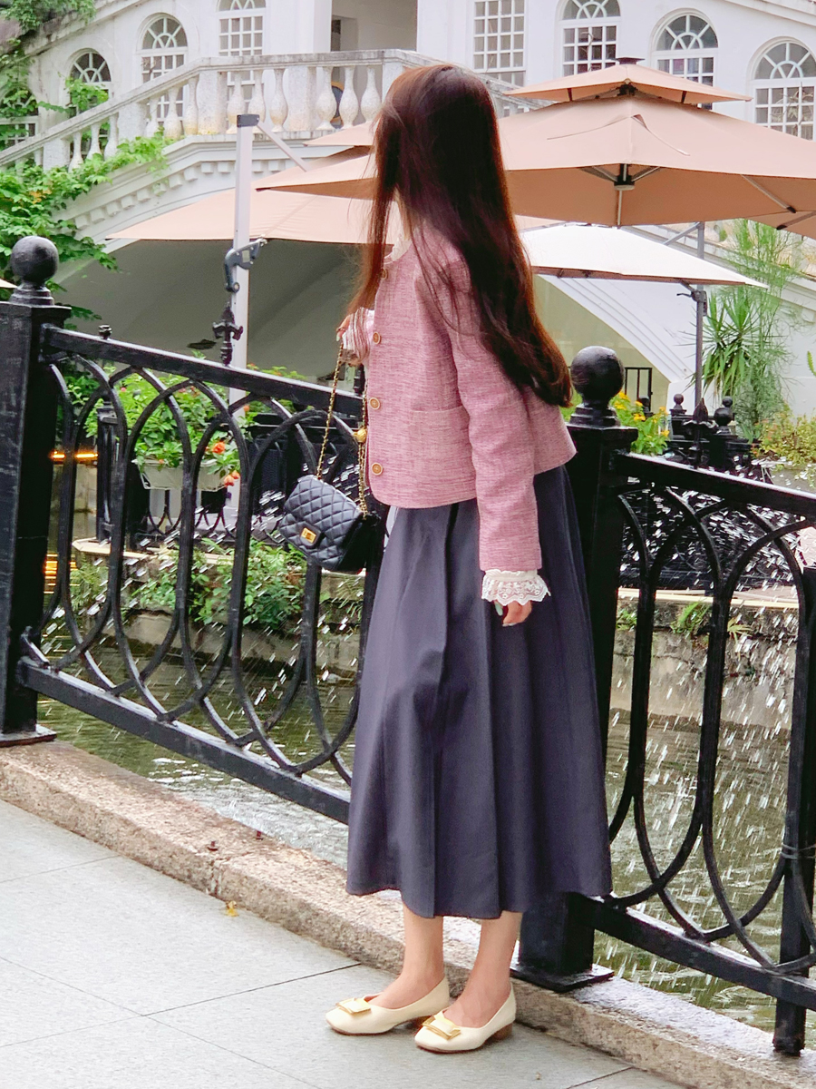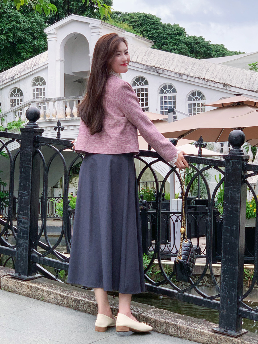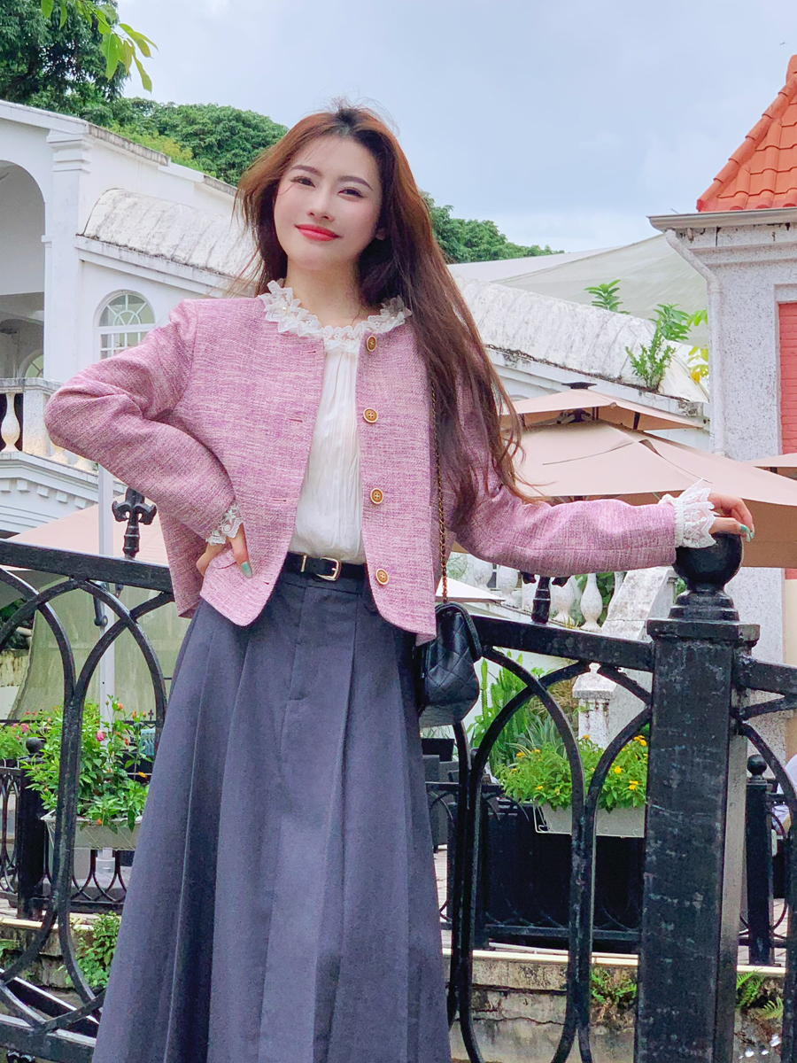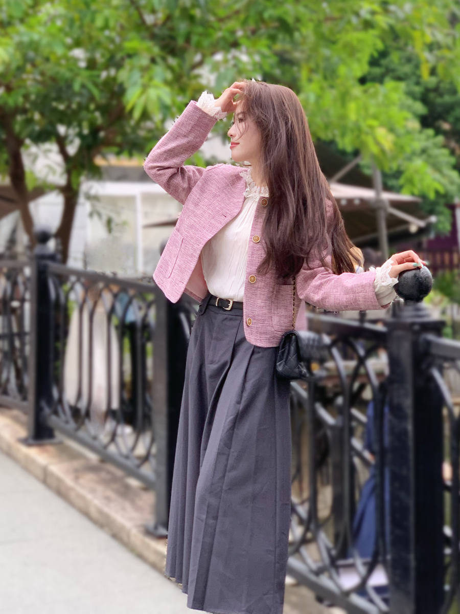 粗花呢,是香风外套的不可或缺的灵魂,用到5种特种纱经纬编织,有一种凹凸有致,别致厚重的肌理感,同时采用经典的花纹,使面料高雅而又别致,成熟而又显气质。