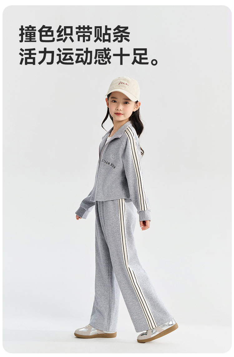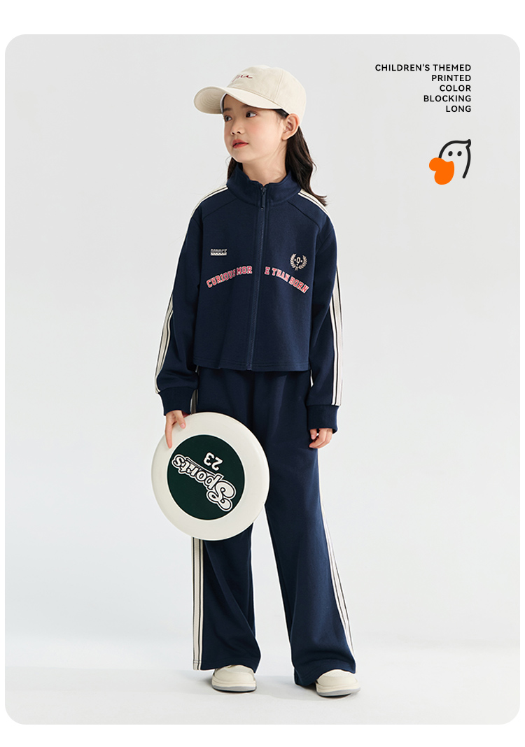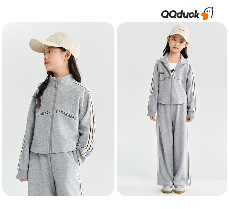 【清仓捡漏】【两件套】【130-165】【可可鸭】女童春秋休闲运动套装开衫外套直筒阔腿裤