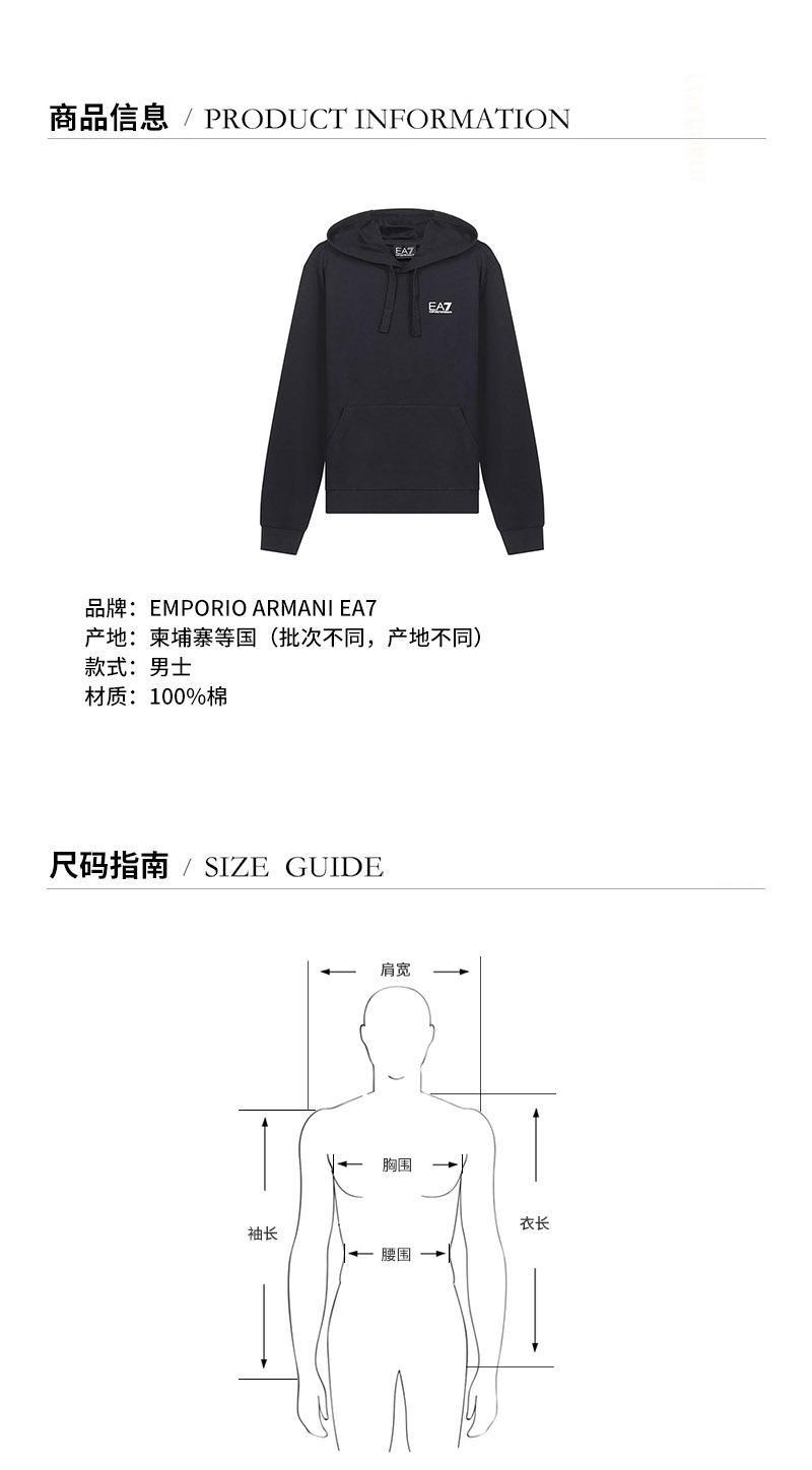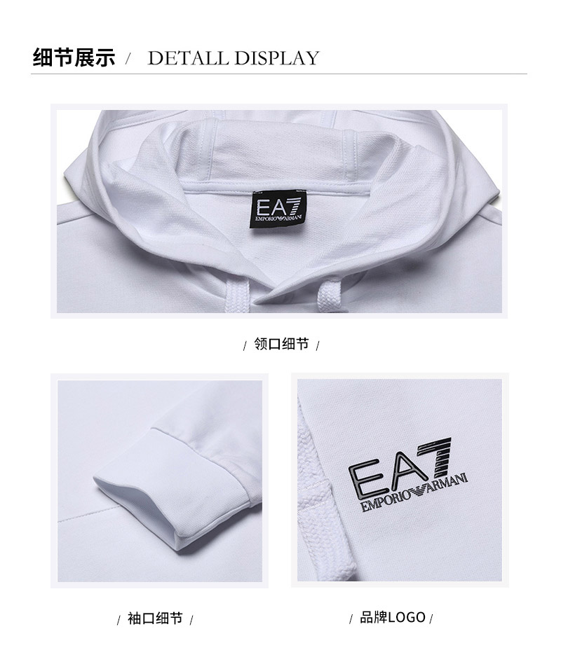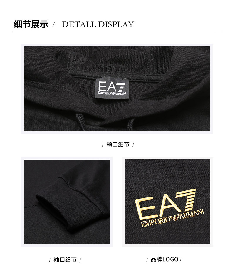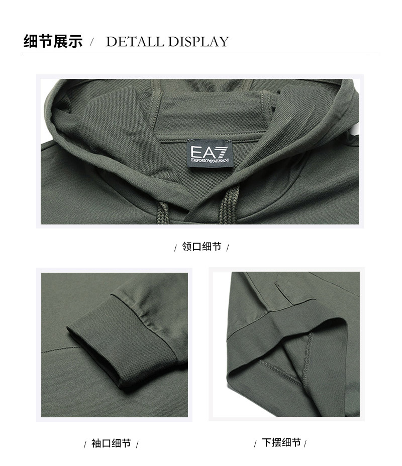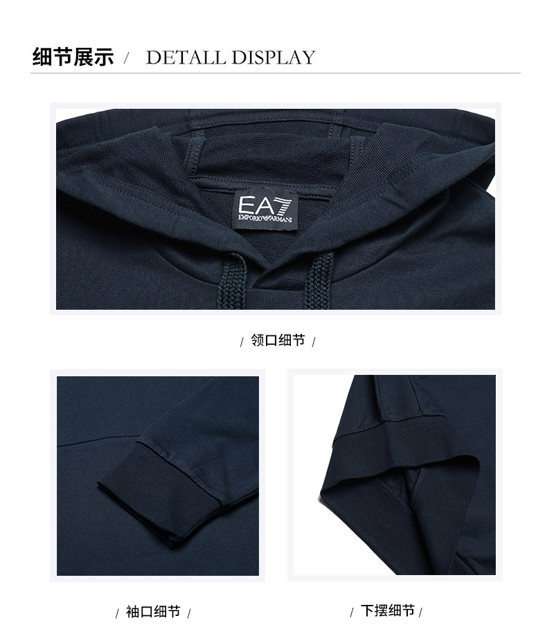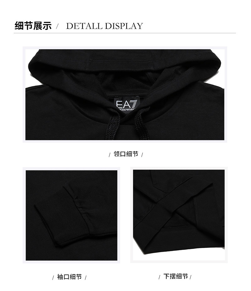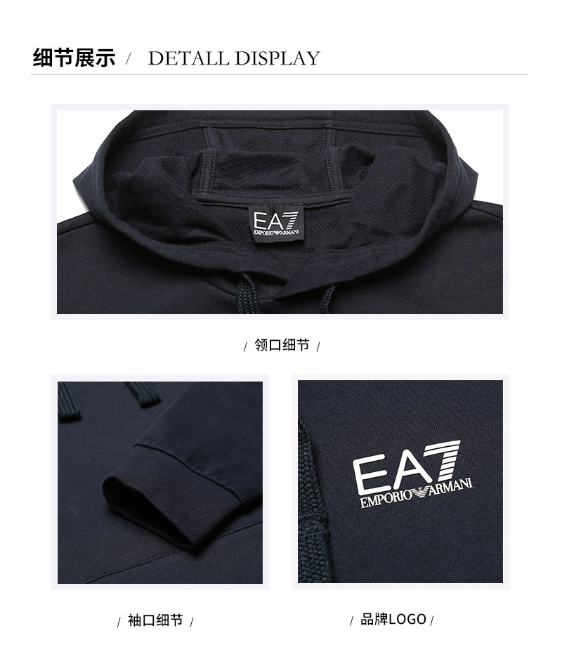 EA7/EA7男士棉质连帽长袖运动衫男卫衣 8NPM04 PJ05Z
