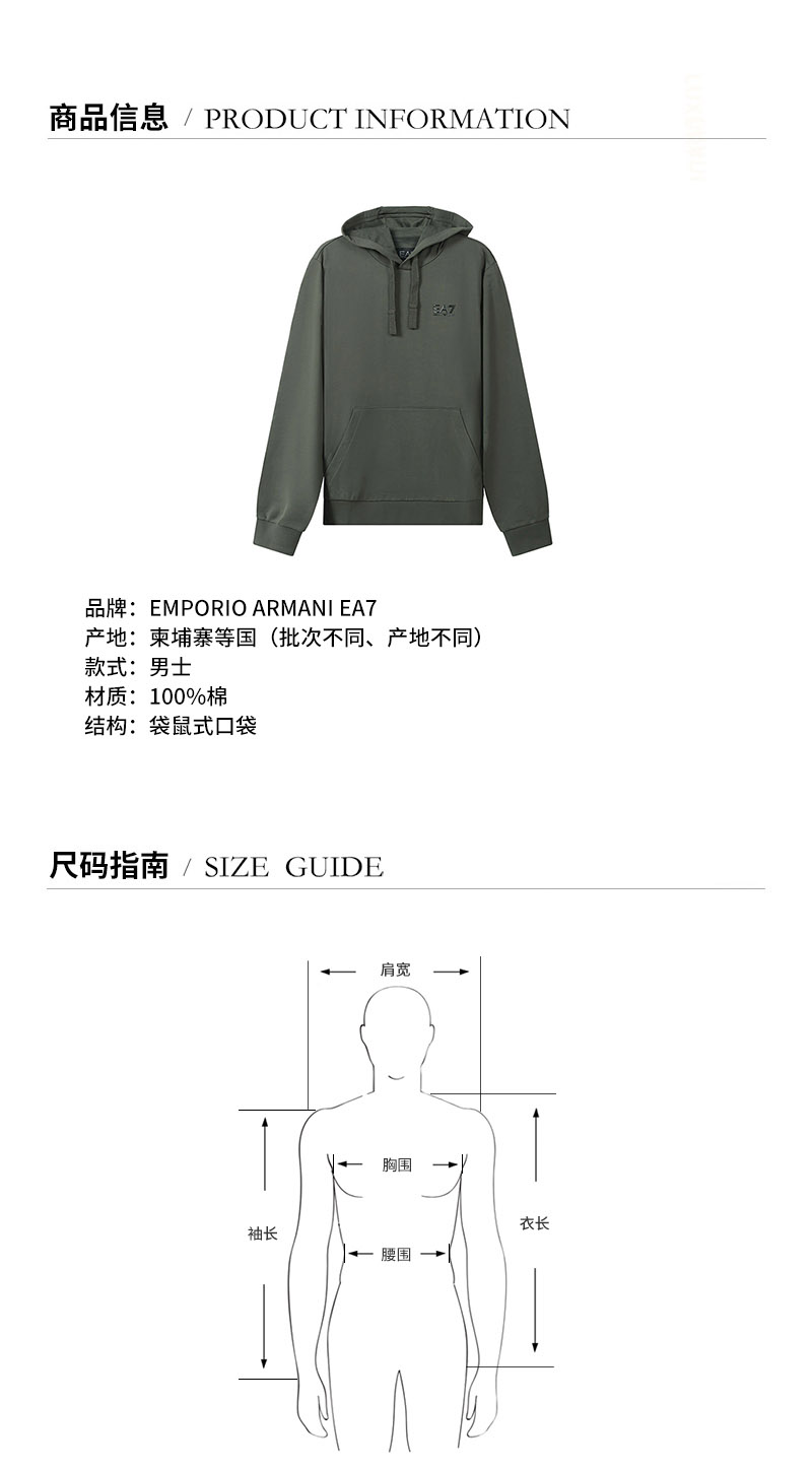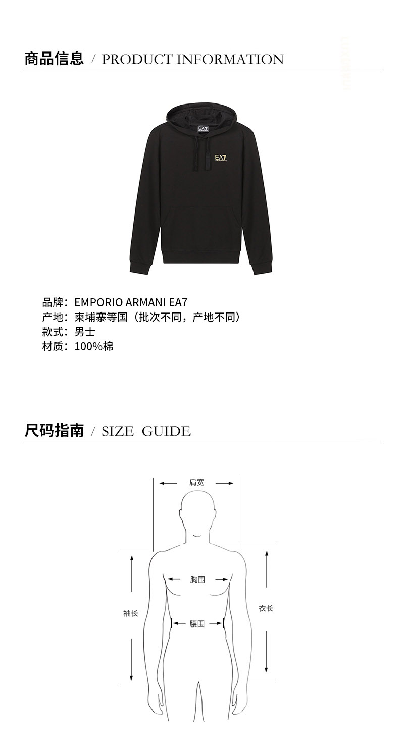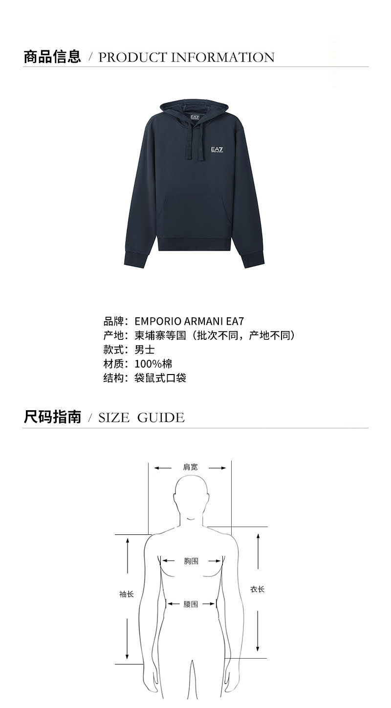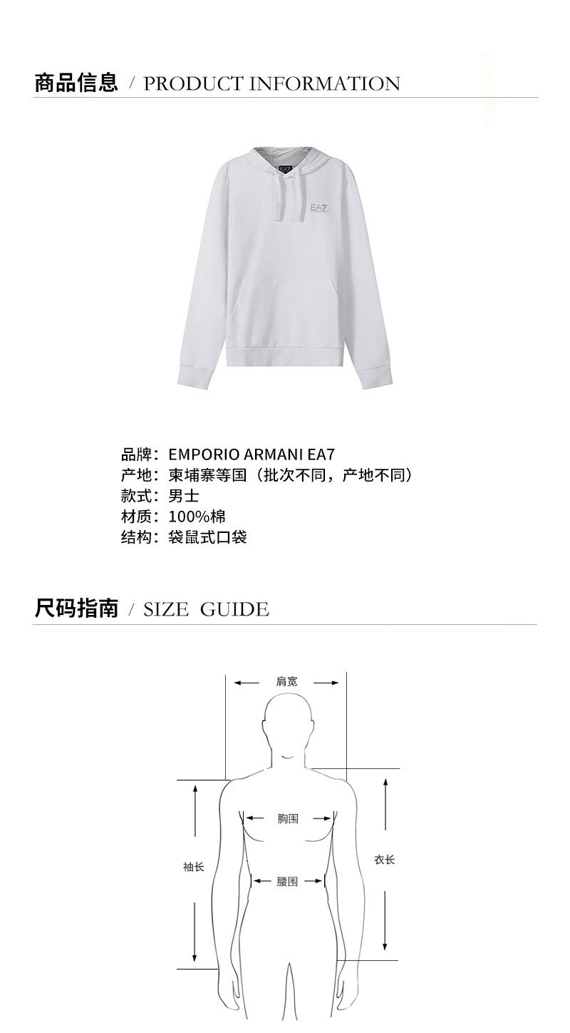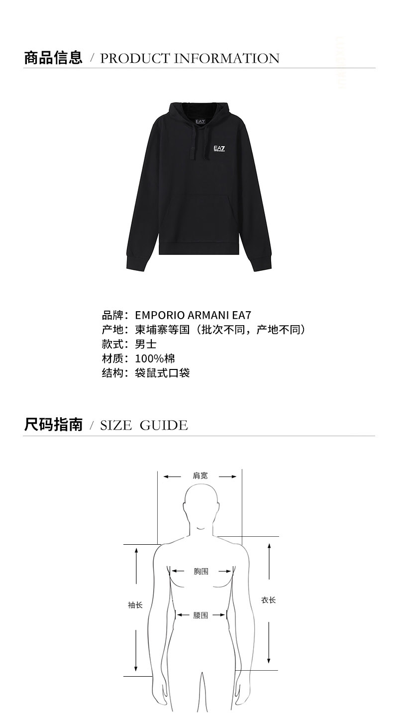 EA7/EA7男士棉质连帽长袖运动衫男卫衣 8NPM04 PJ05Z
