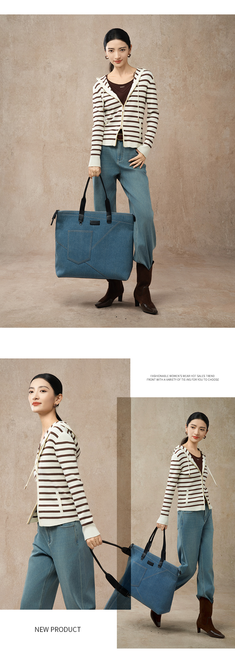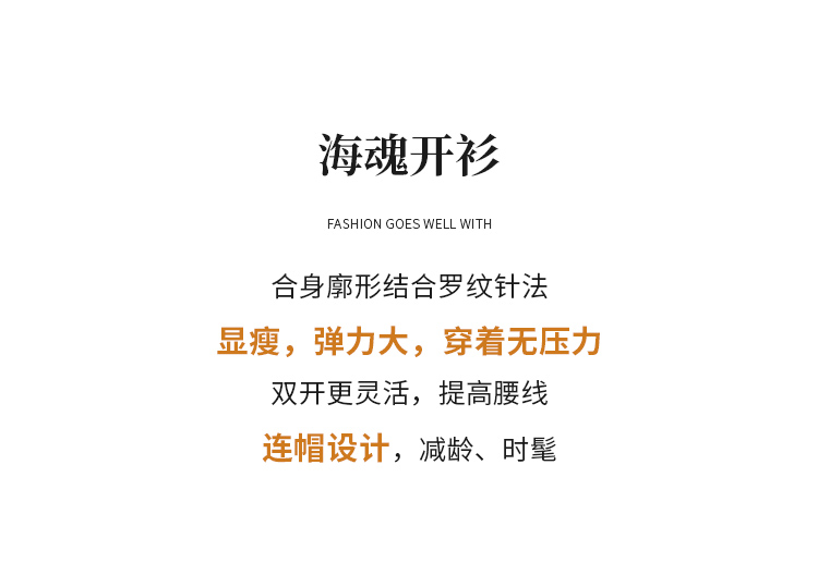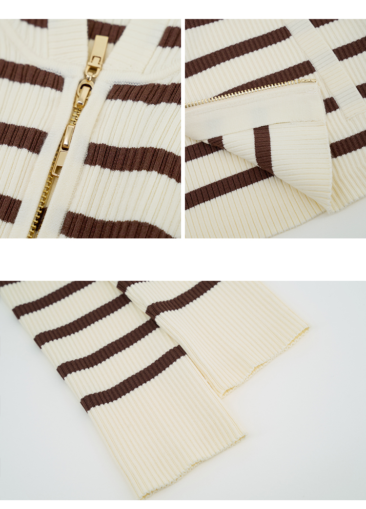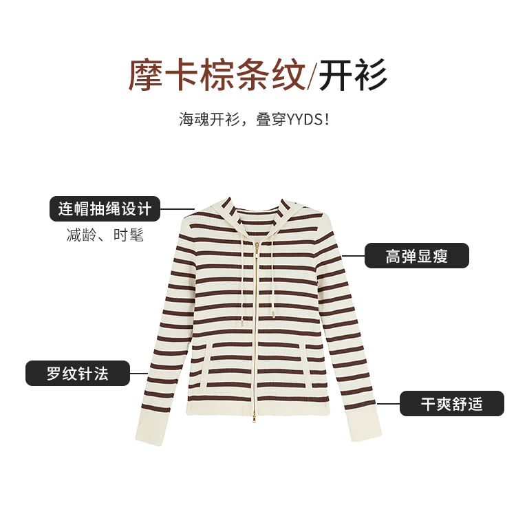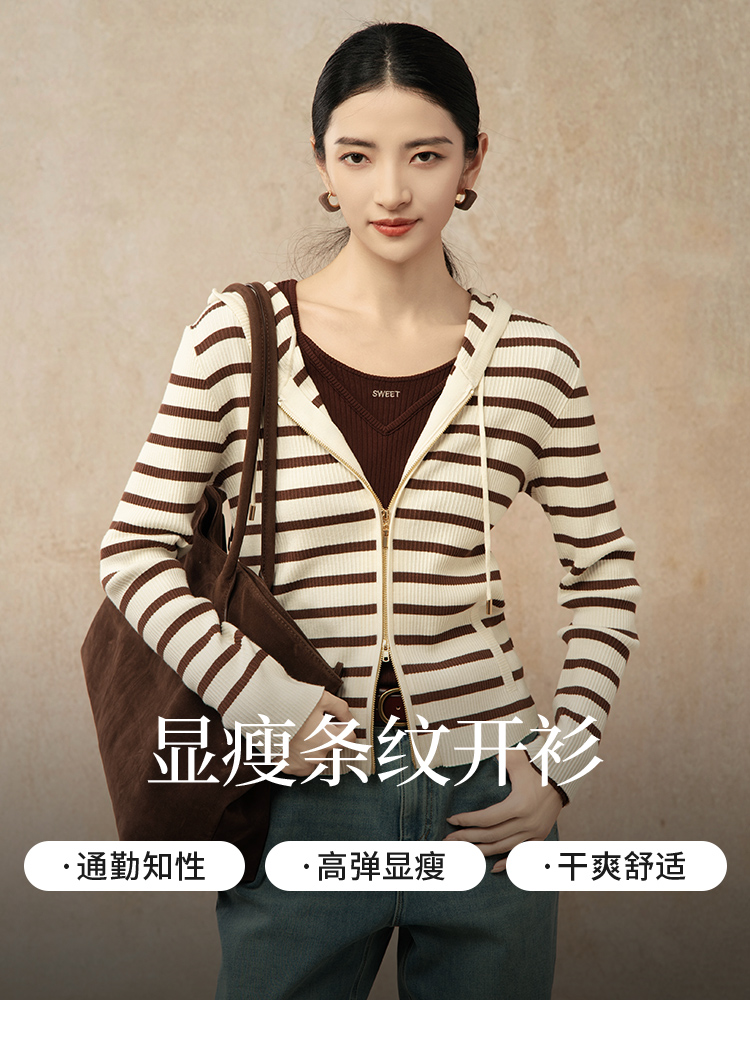 【商场同款】CNR5874 “高弹连帽拉链开衫” 可机洗的连帽开衫 休闲舒适 好穿好搭 米咖条纹