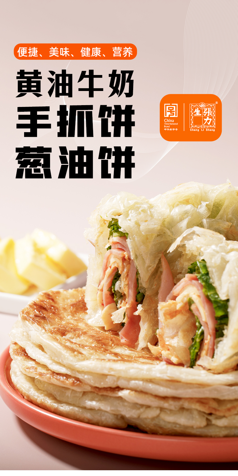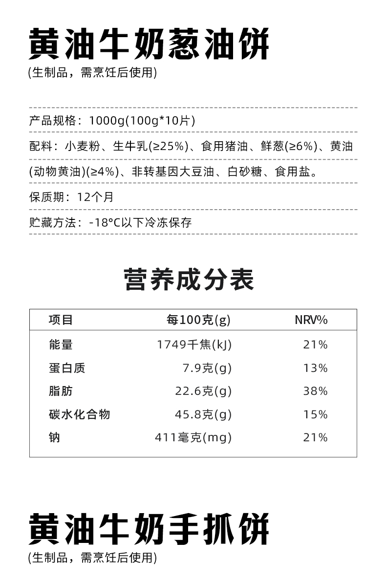 【中华老字号】张力生 黄油牛奶葱油饼/手抓饼 1000g*2/1000g*3