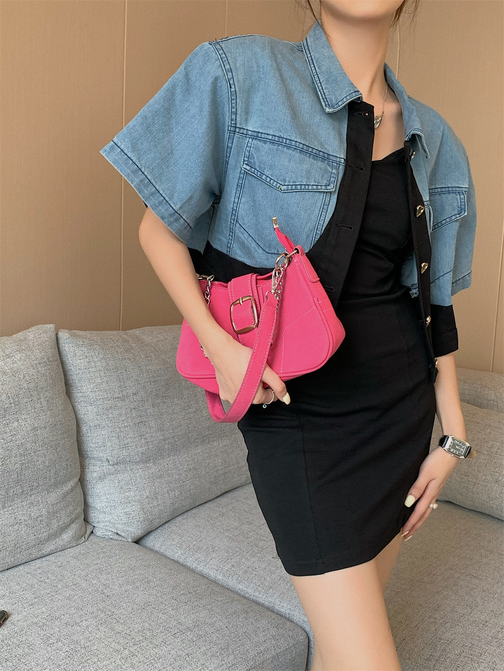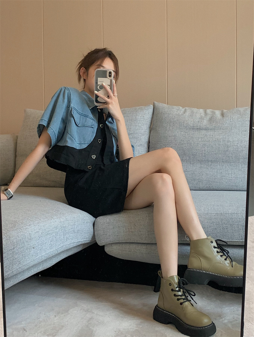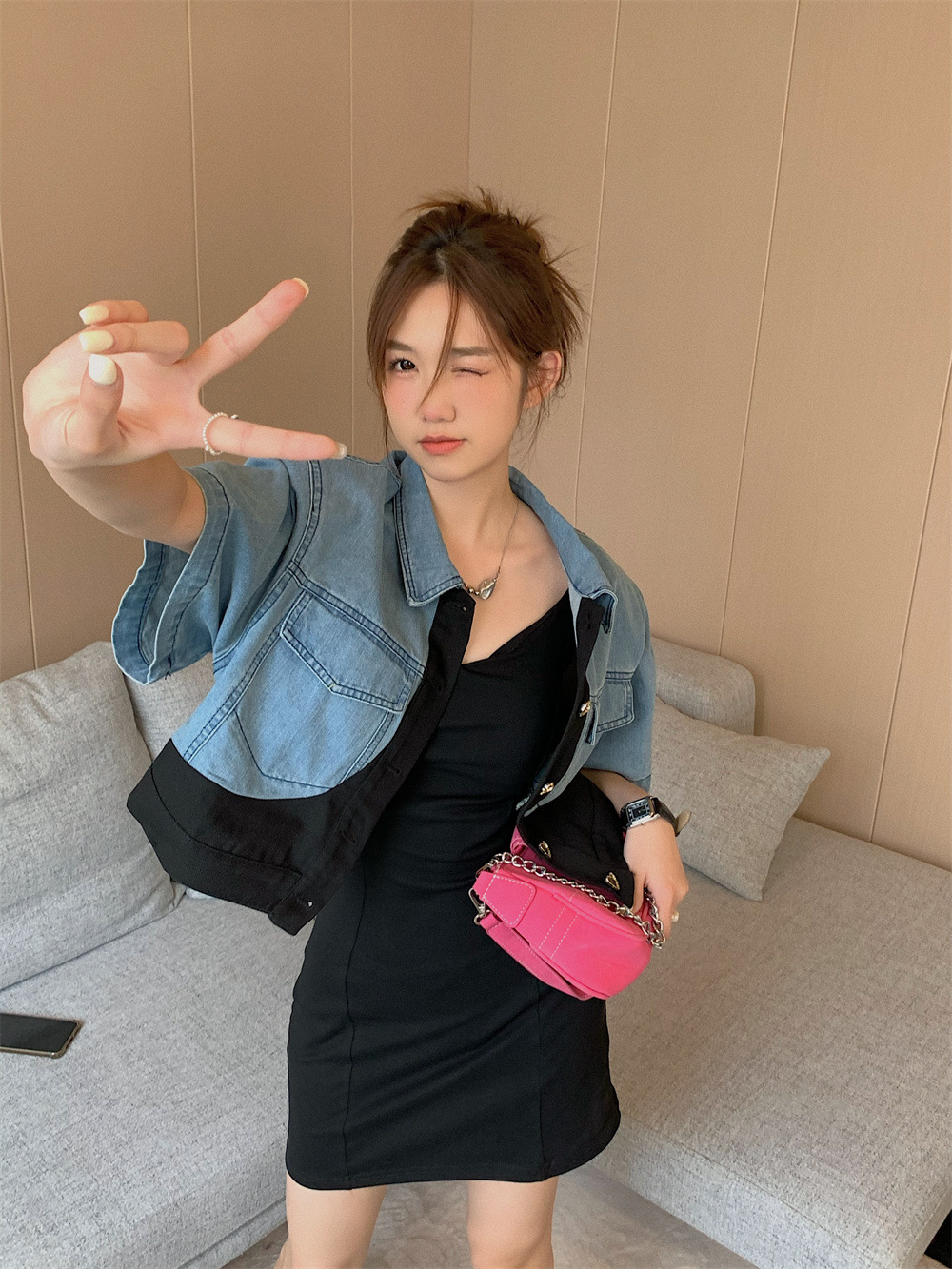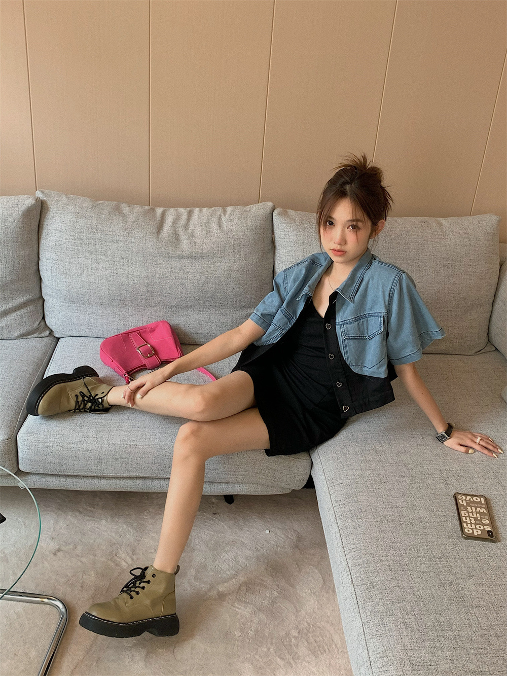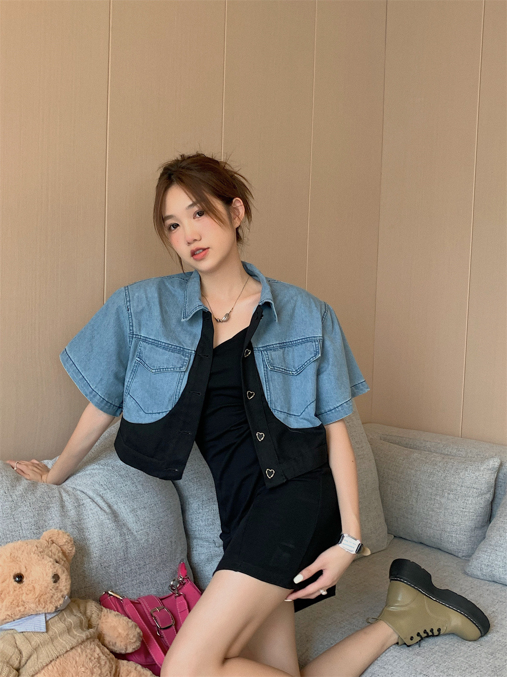 (清仓现货)【社群供V】设计感爱心撞色牛仔外套+修身吊带裙棉