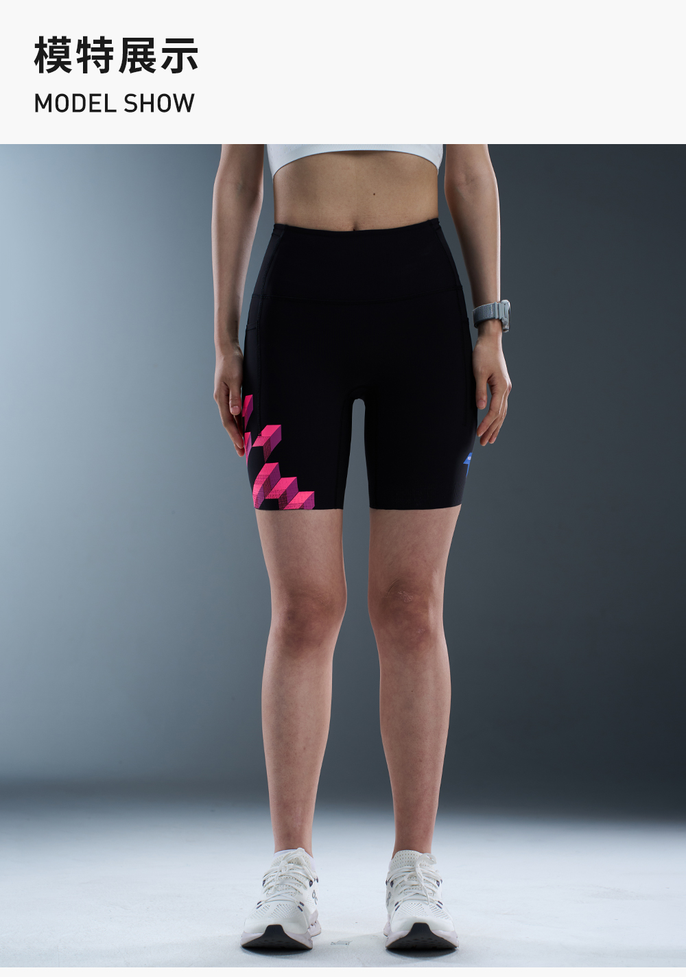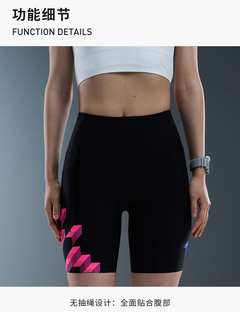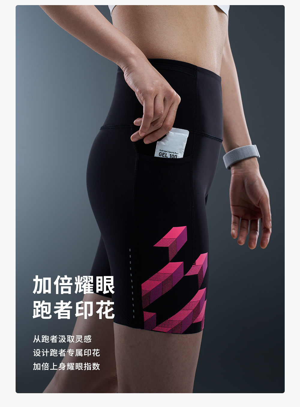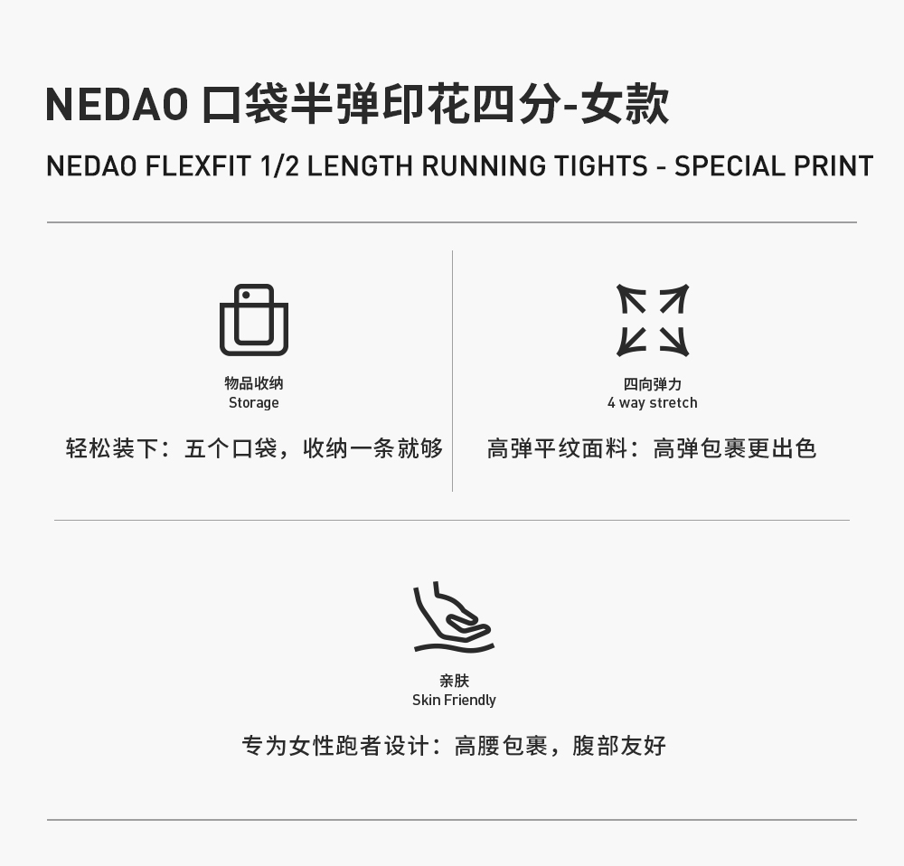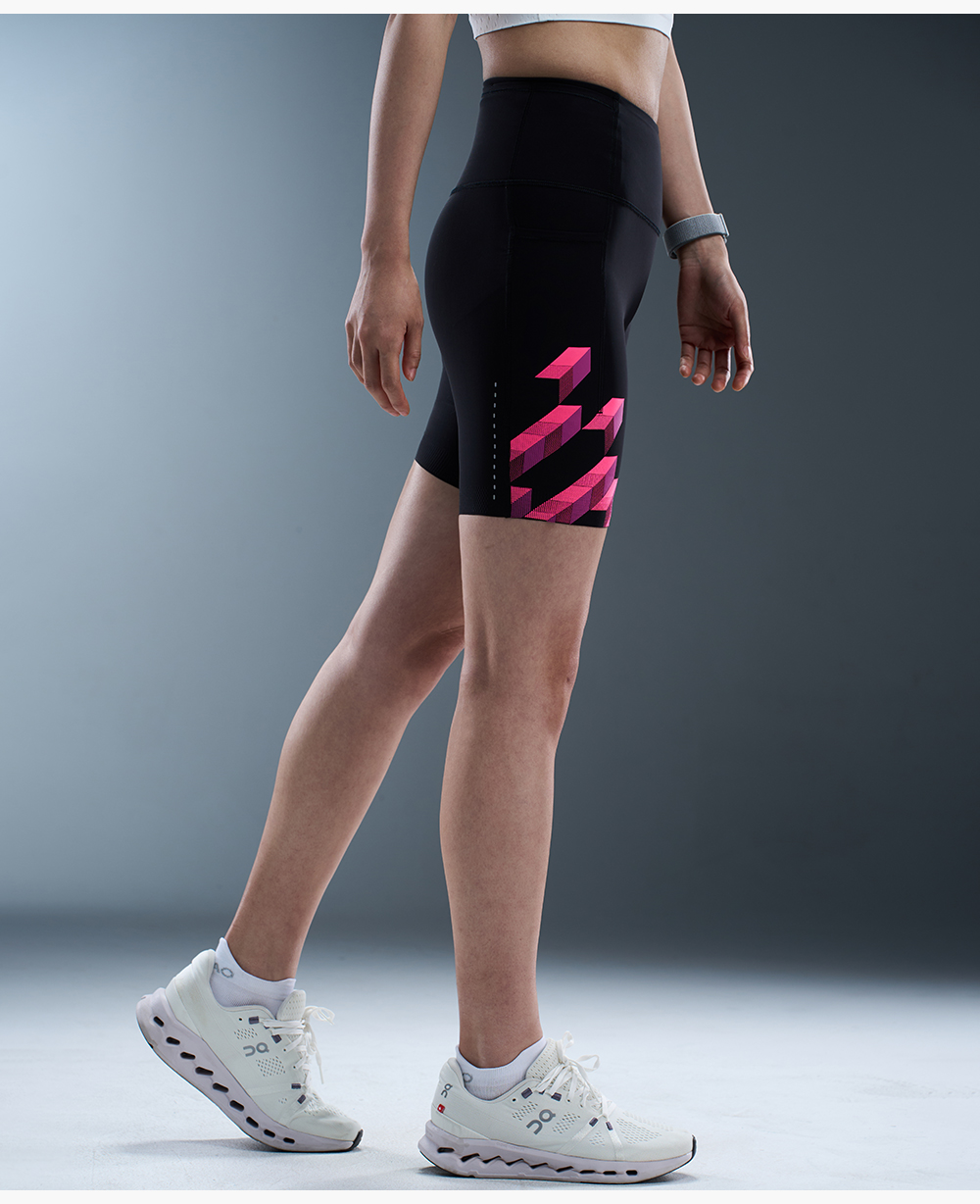 内道灵动力印花收纳四分防滑紧身裤弹力平纹女款跑步训练运动