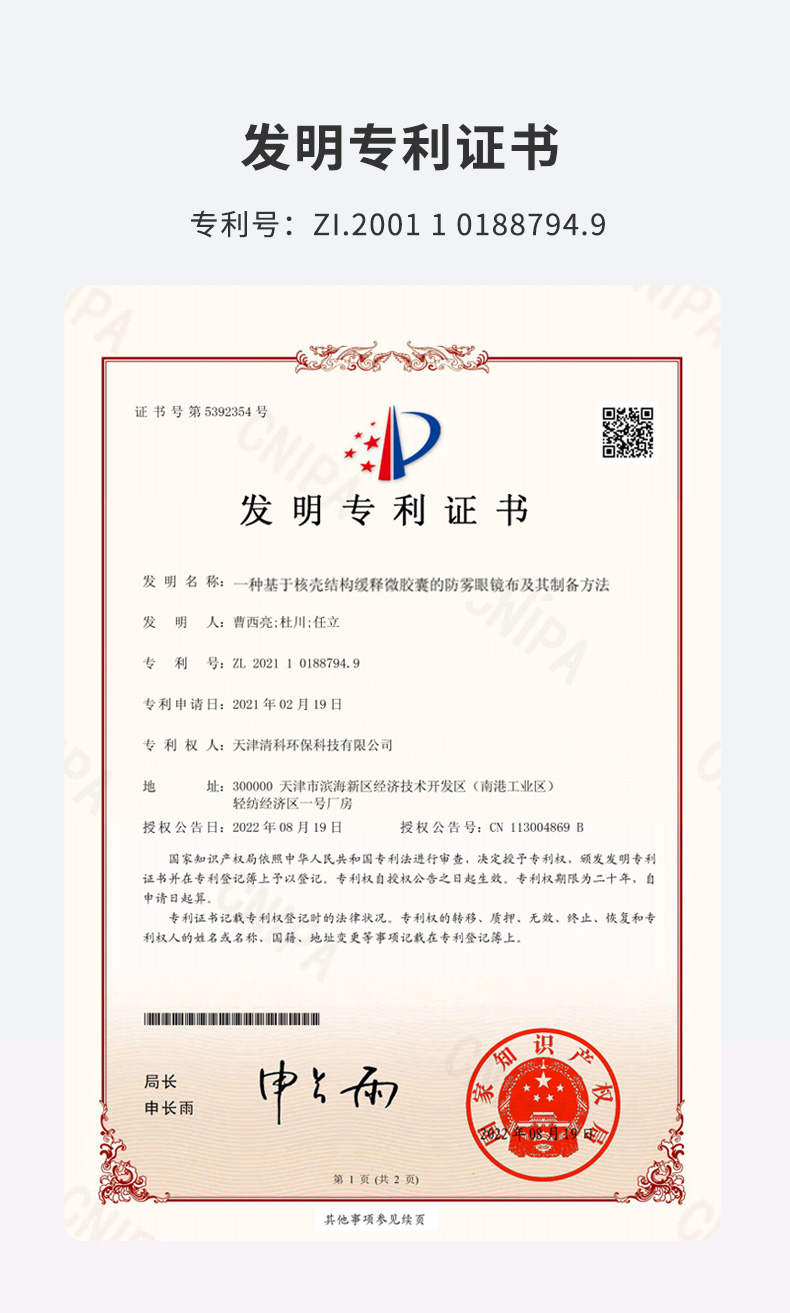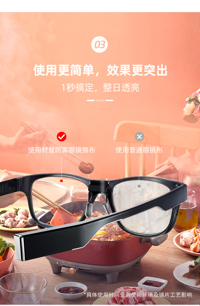 【清华大学天津高端装备研究院研发】材慧防雾眼镜擦布 24小时长效防雾