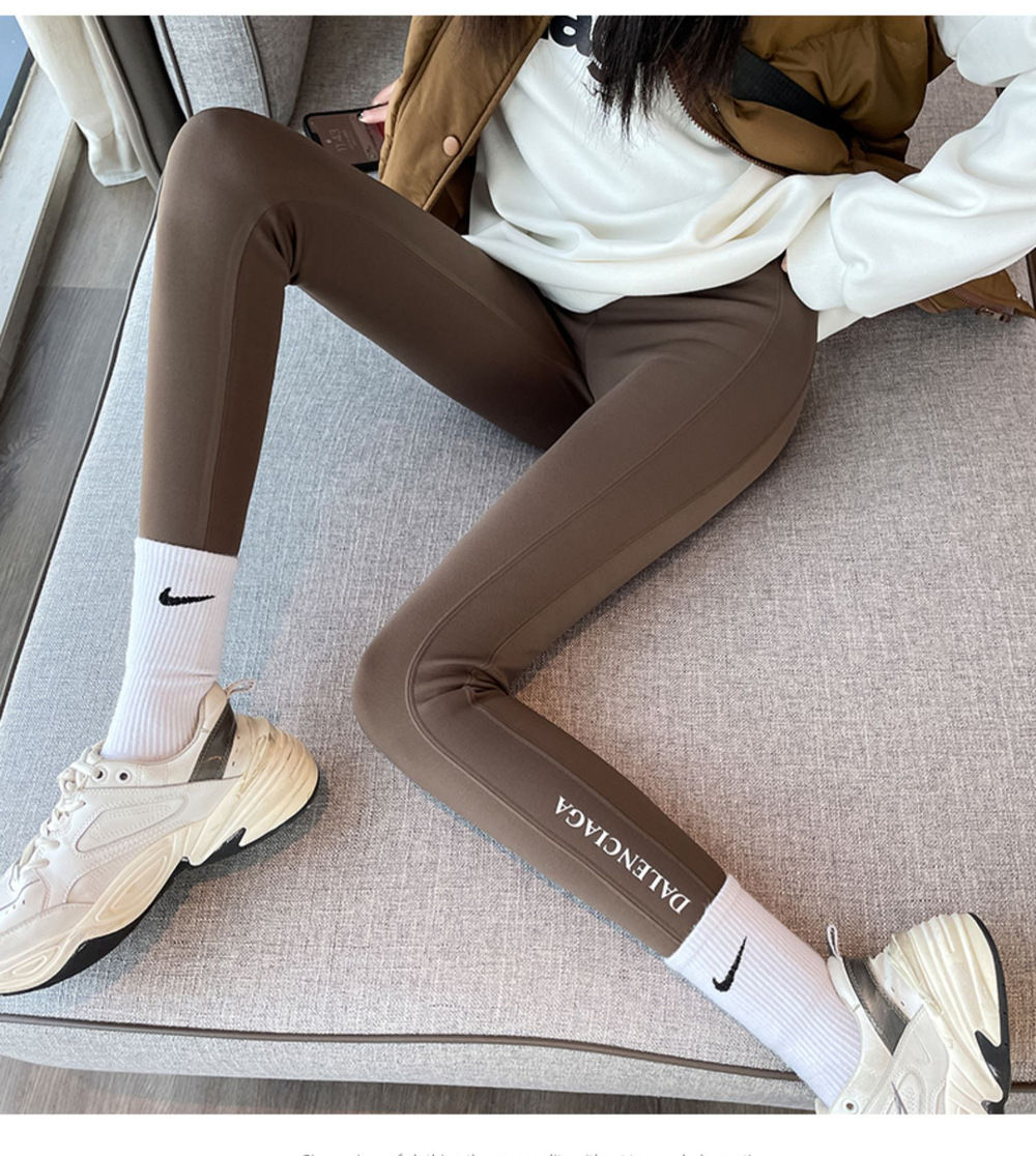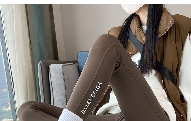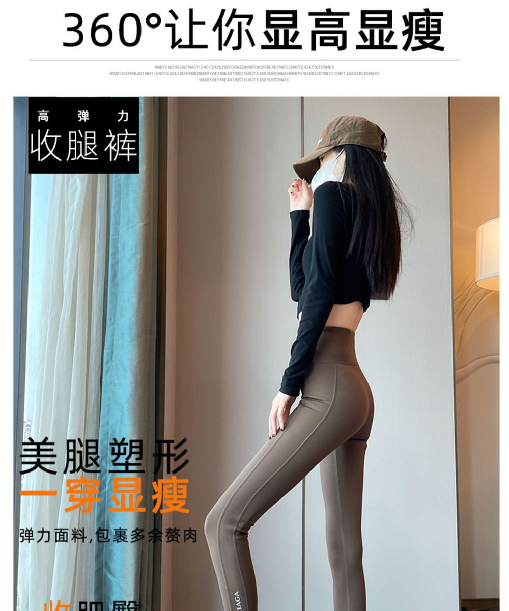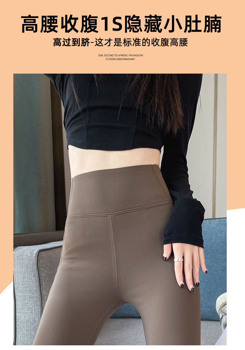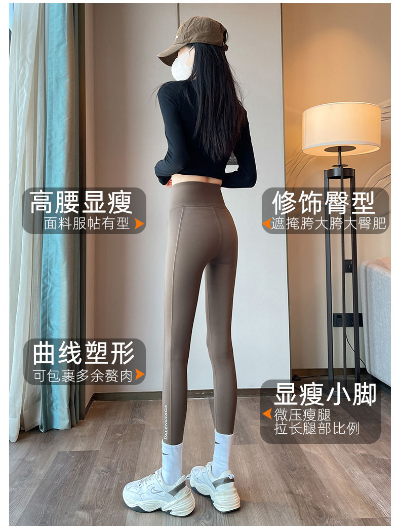 【爆款超低价预售 急单慎拍】斯尔丽卡其色鲨鱼皮打底裤女外穿高腰收腹提臀秋冬加绒瑜伽芭比裤