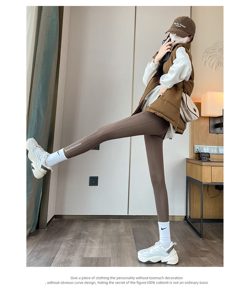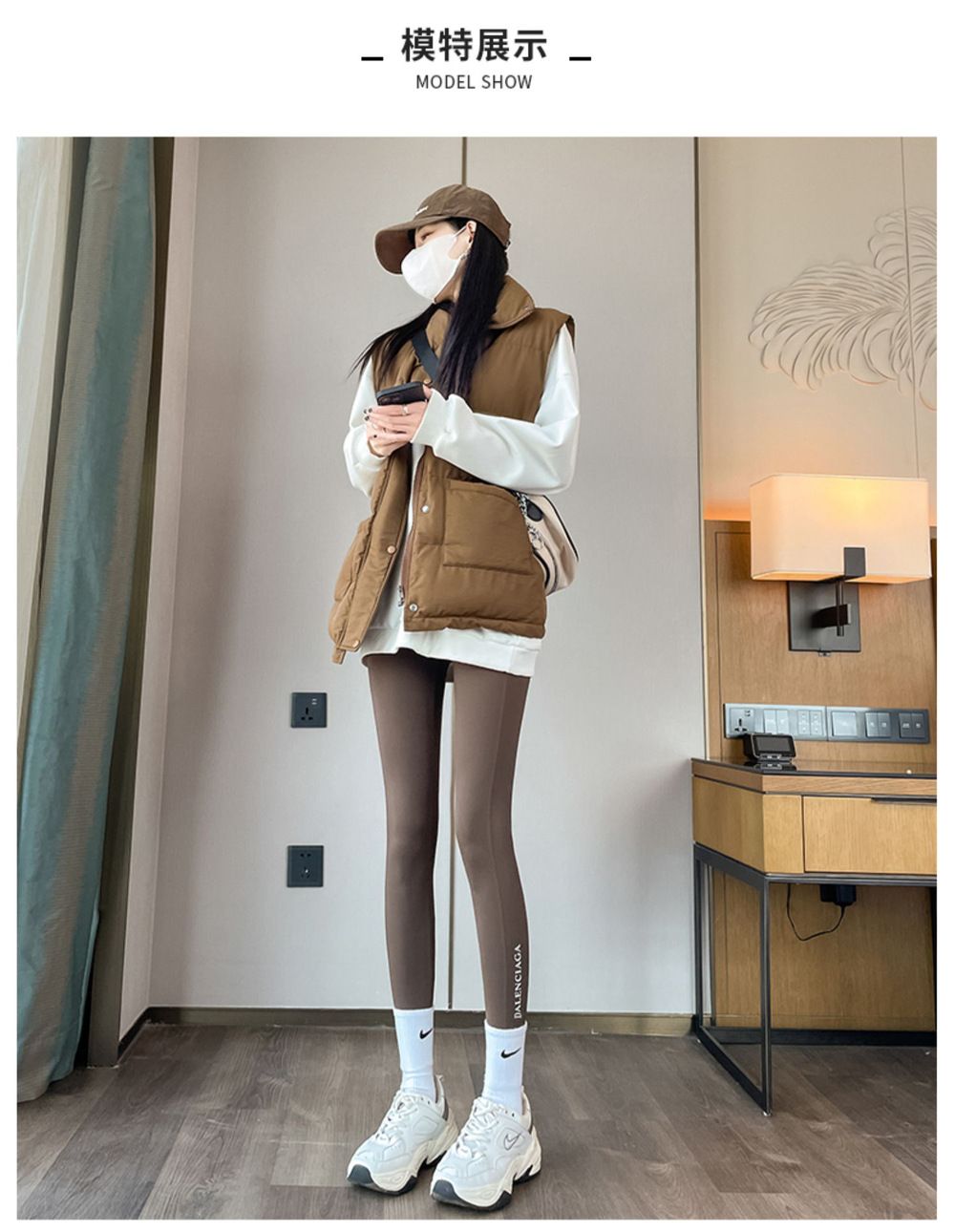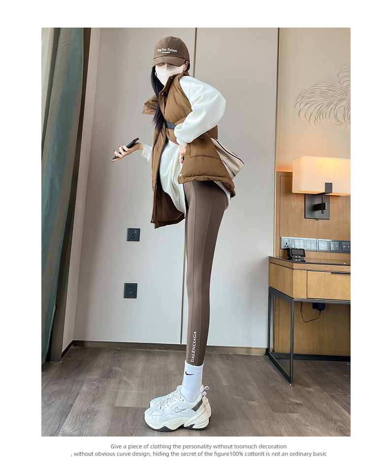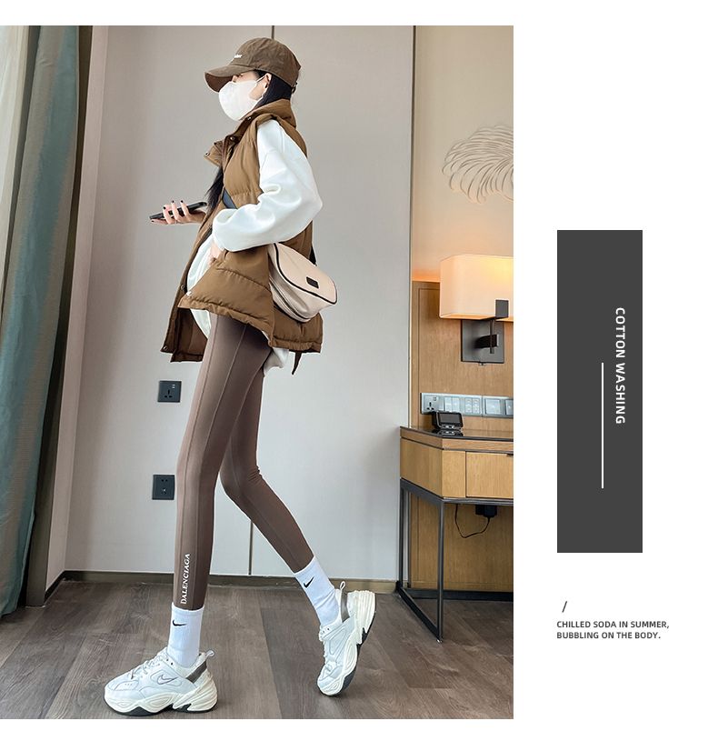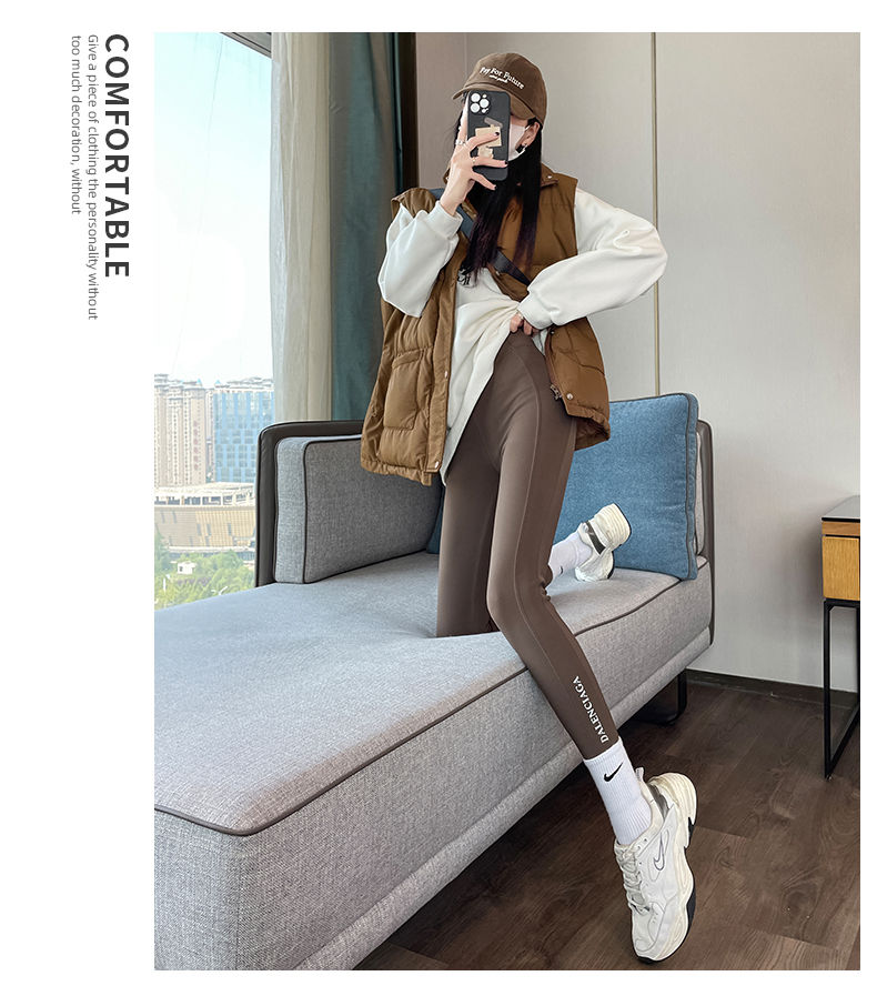 【爆款超低价预售 急单慎拍】斯尔丽卡其色鲨鱼皮打底裤女外穿高腰收腹提臀秋冬加绒瑜伽芭比裤