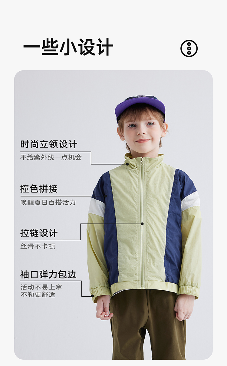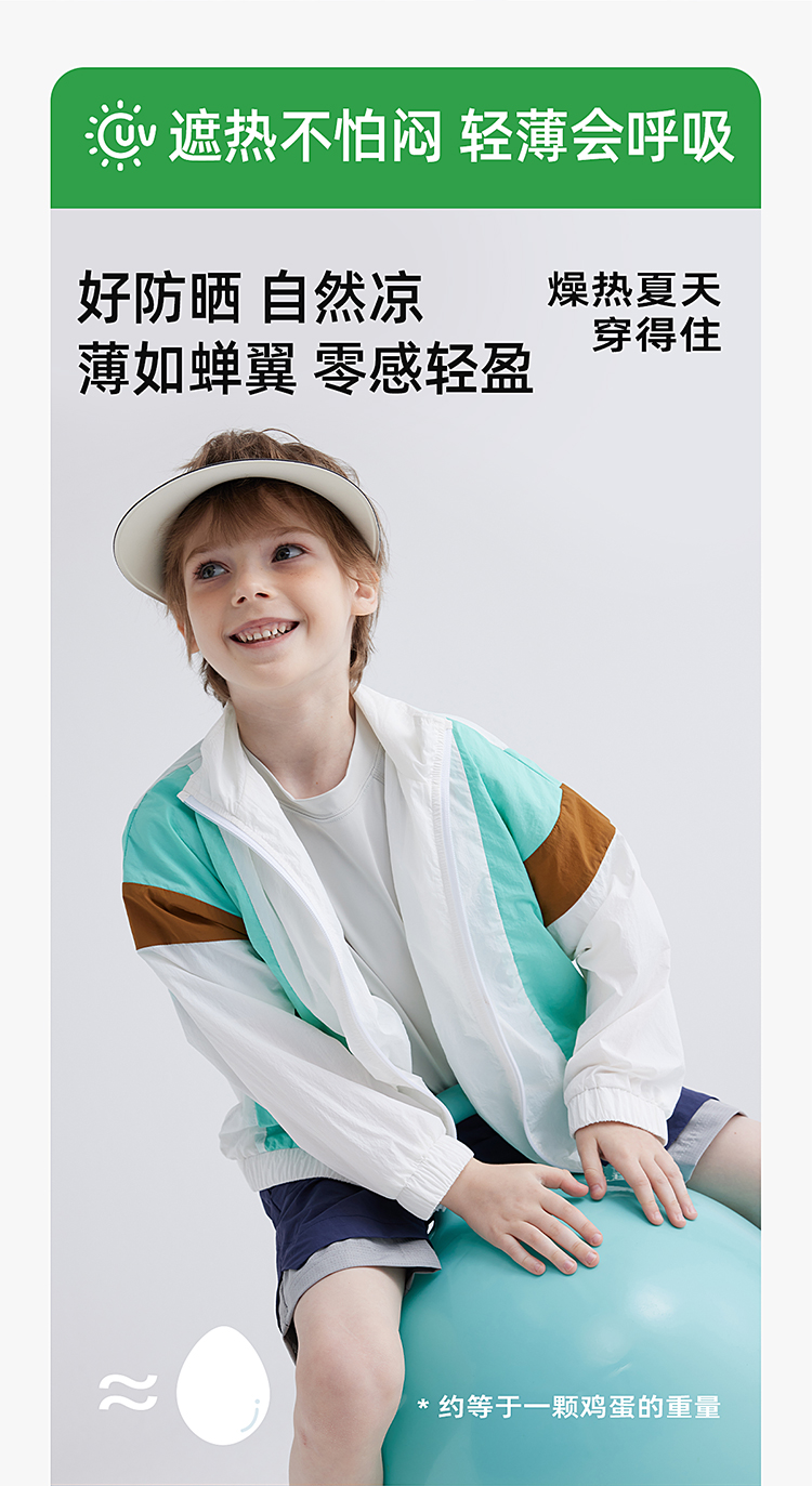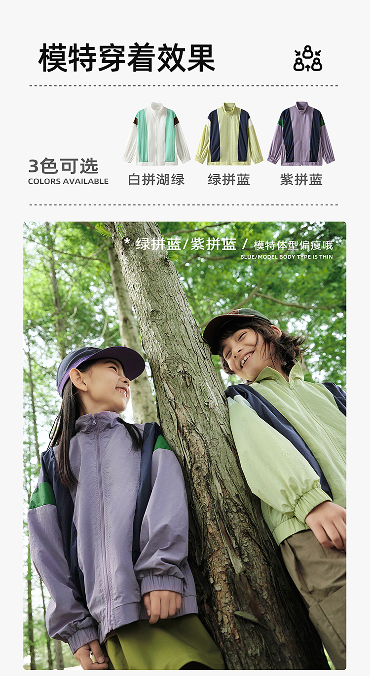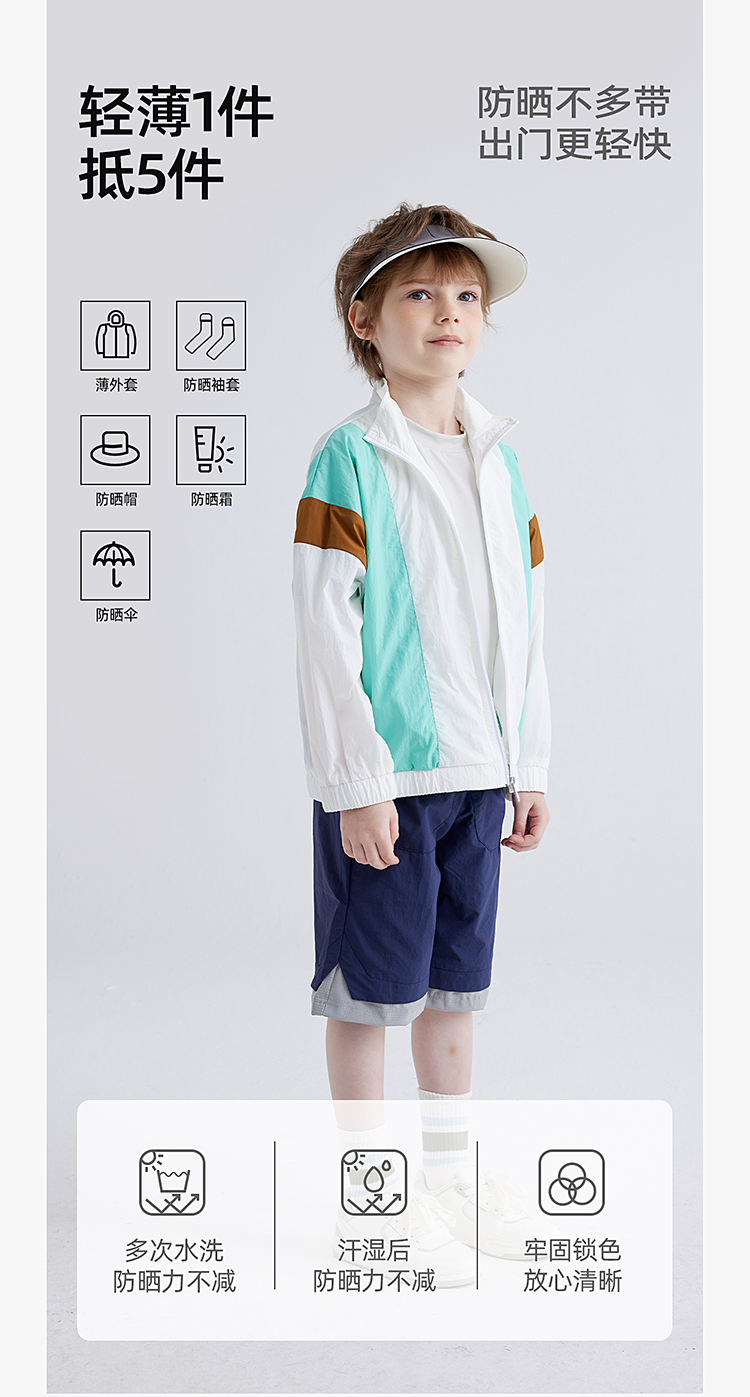 【轻盈快干冰沙防晒 UPF50+】儿童撞色防晒服外套 PXW2402