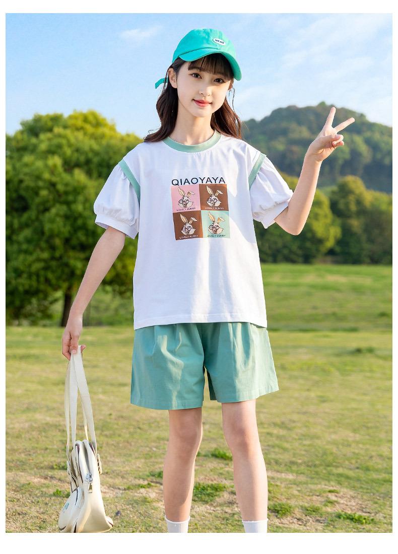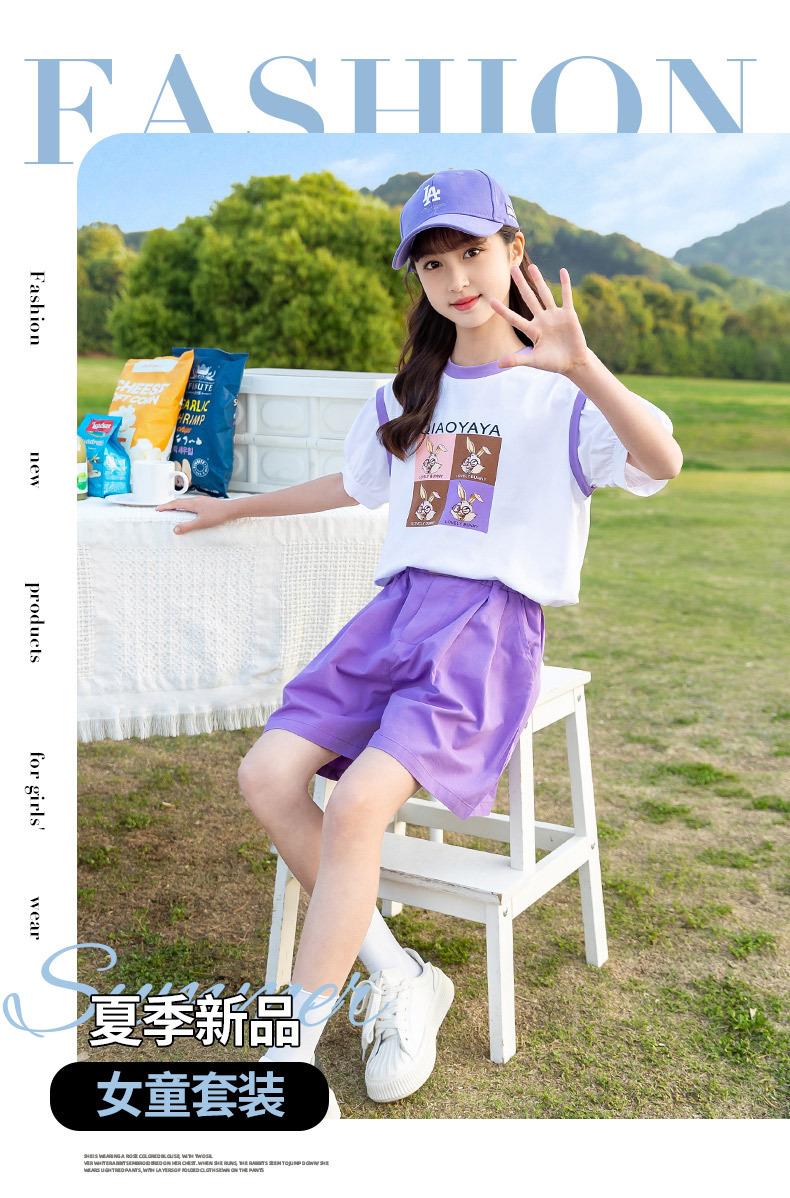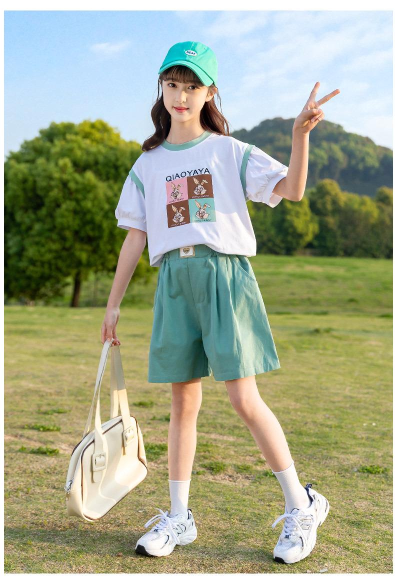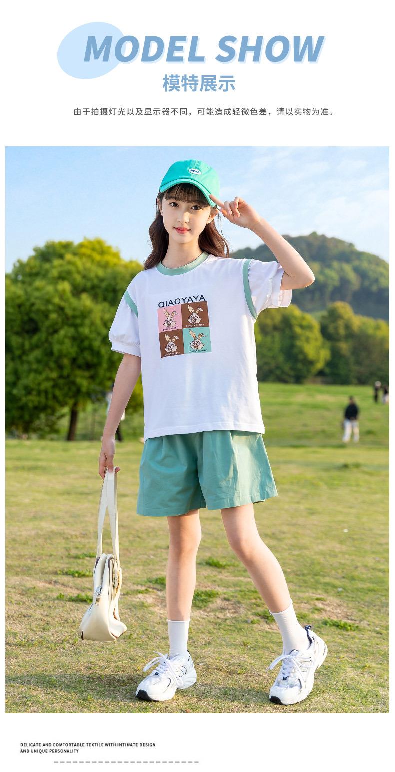 女童夏季套装2024新款童装儿童时尚网红短袖T恤女大童休闲两件套