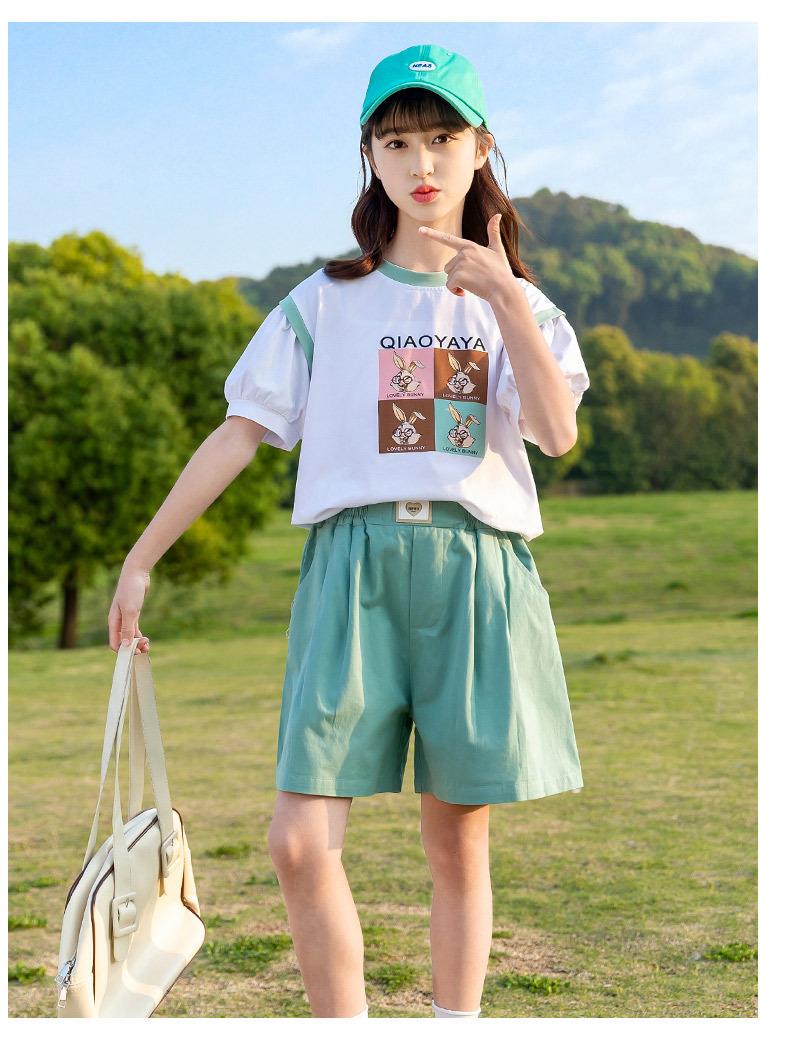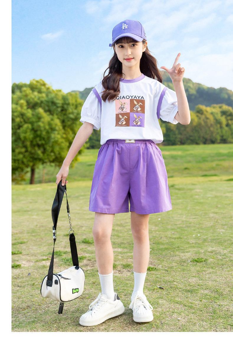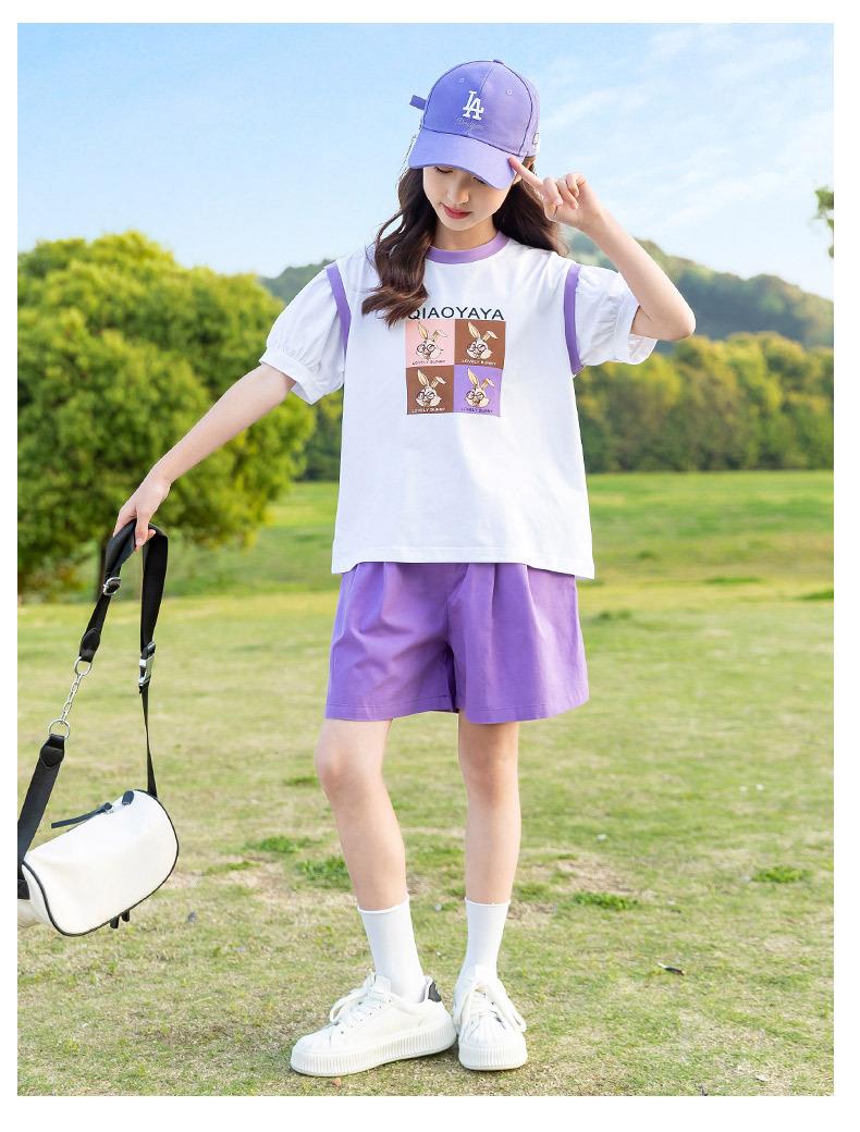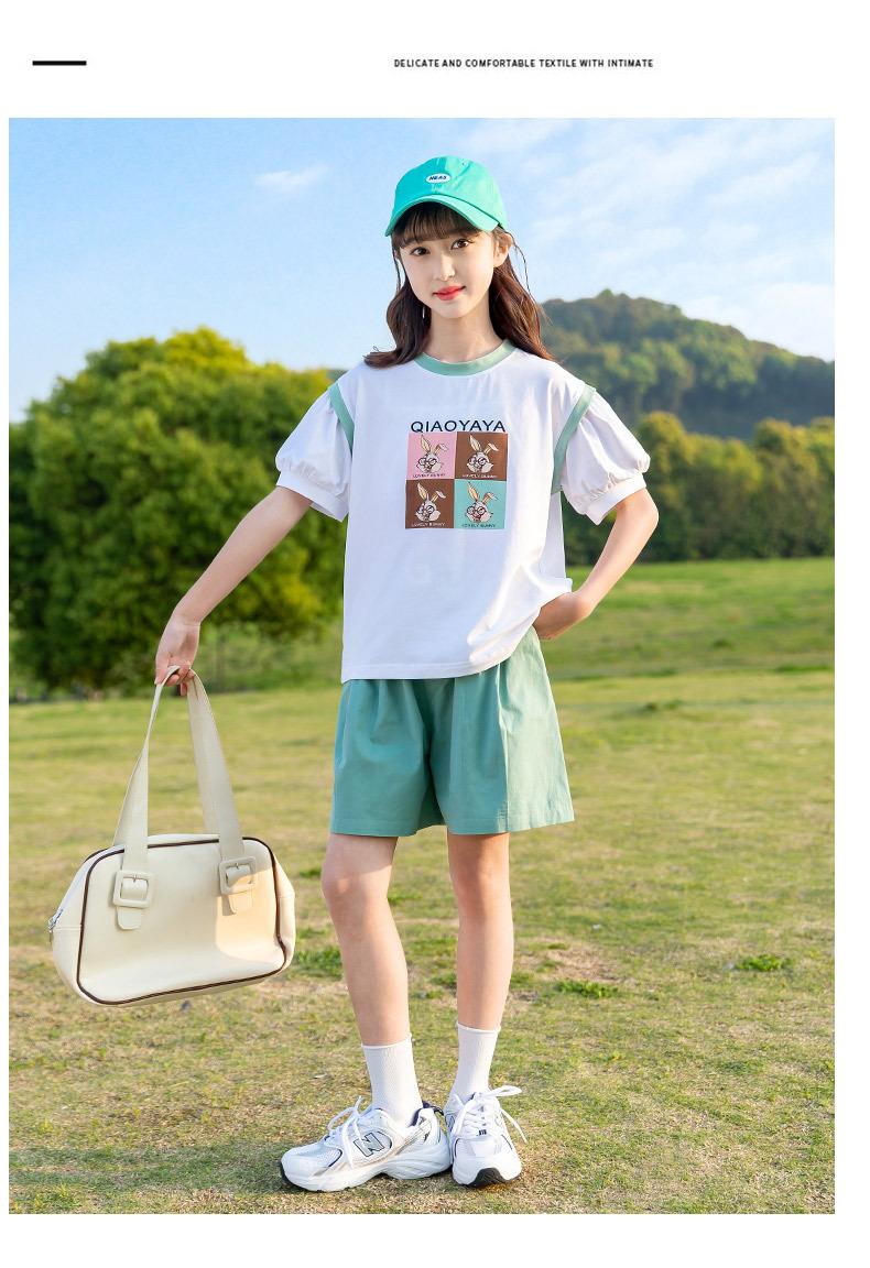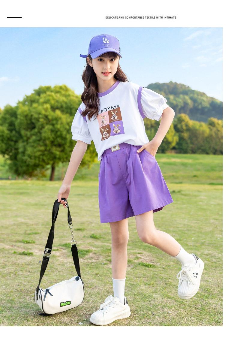 女童夏季套装2024新款童装儿童时尚网红短袖T恤女大童休闲两件套