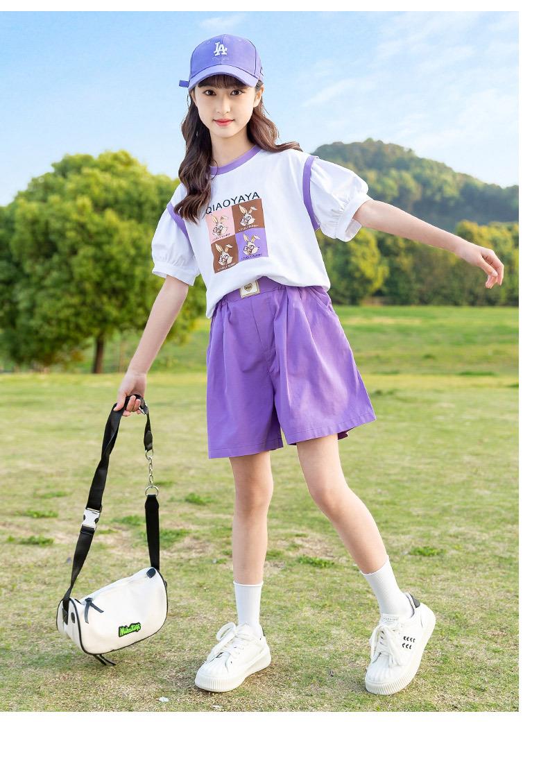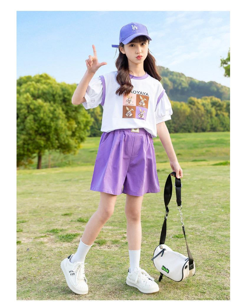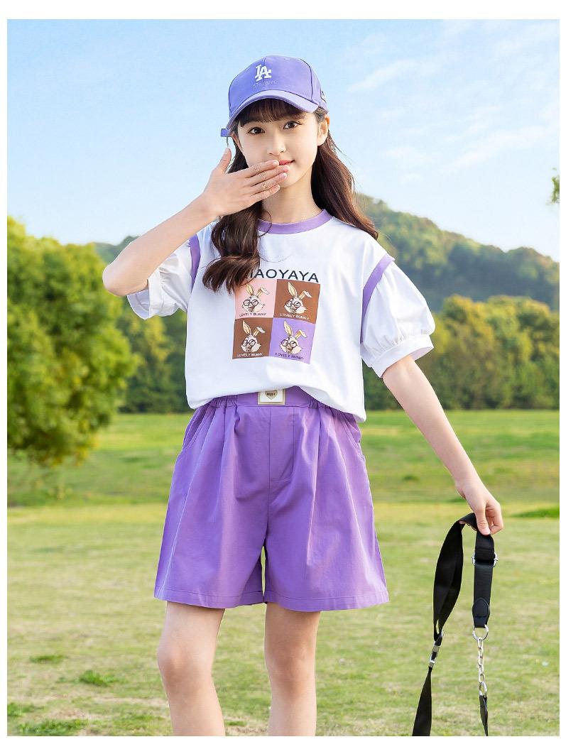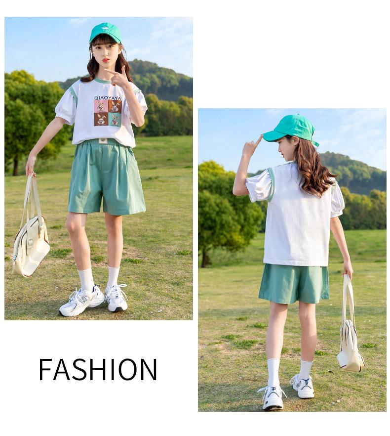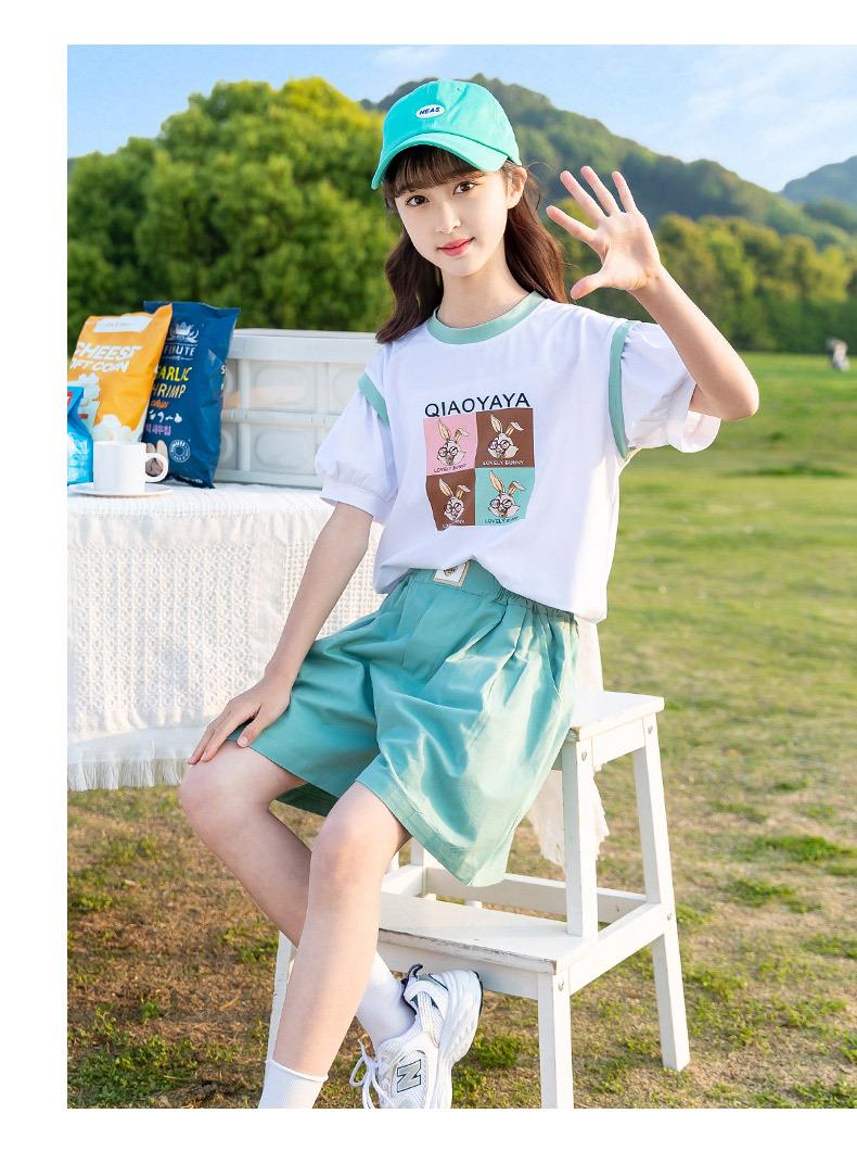 女童夏季套装2024新款童装儿童时尚网红短袖T恤女大童休闲两件套