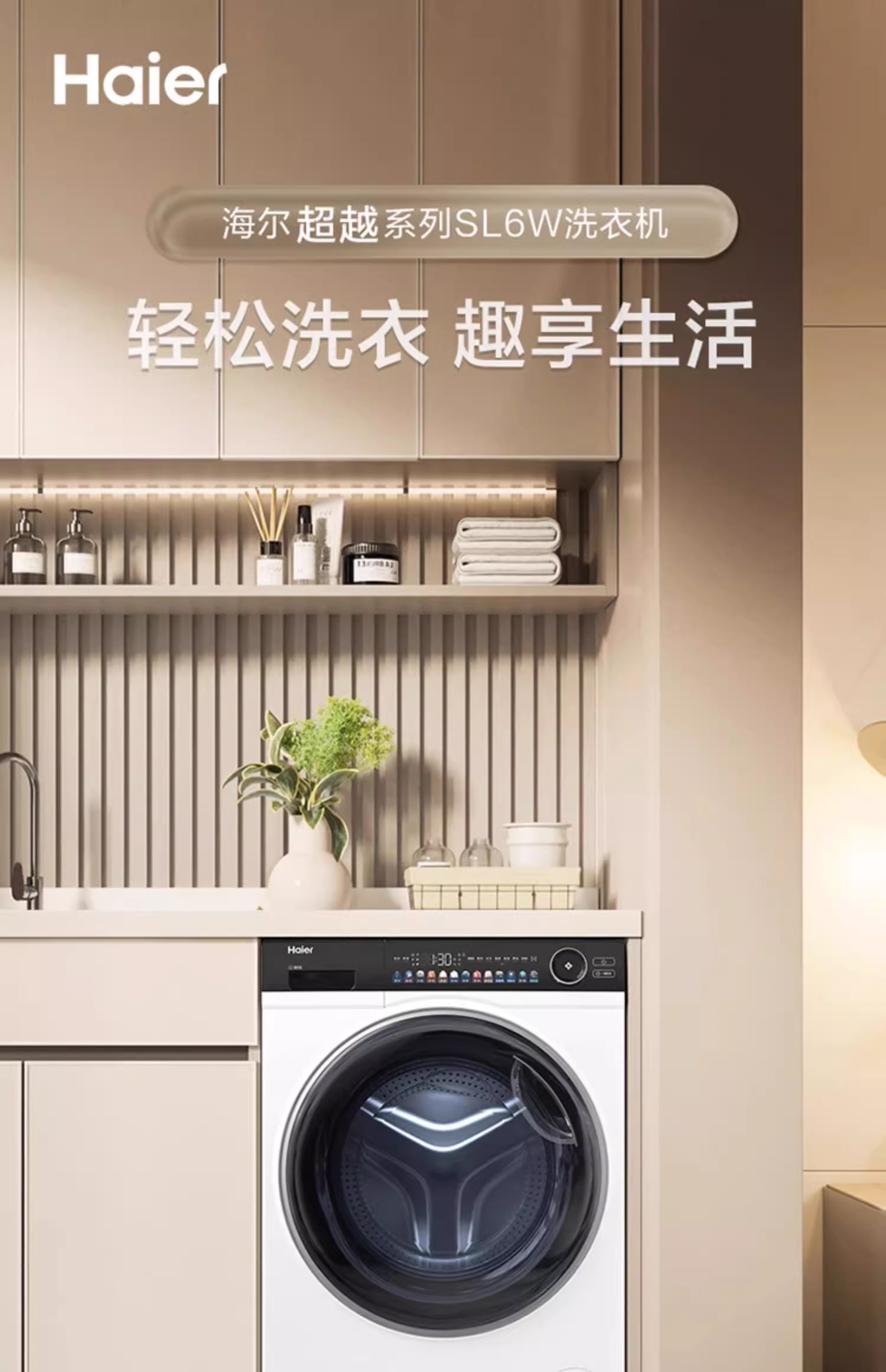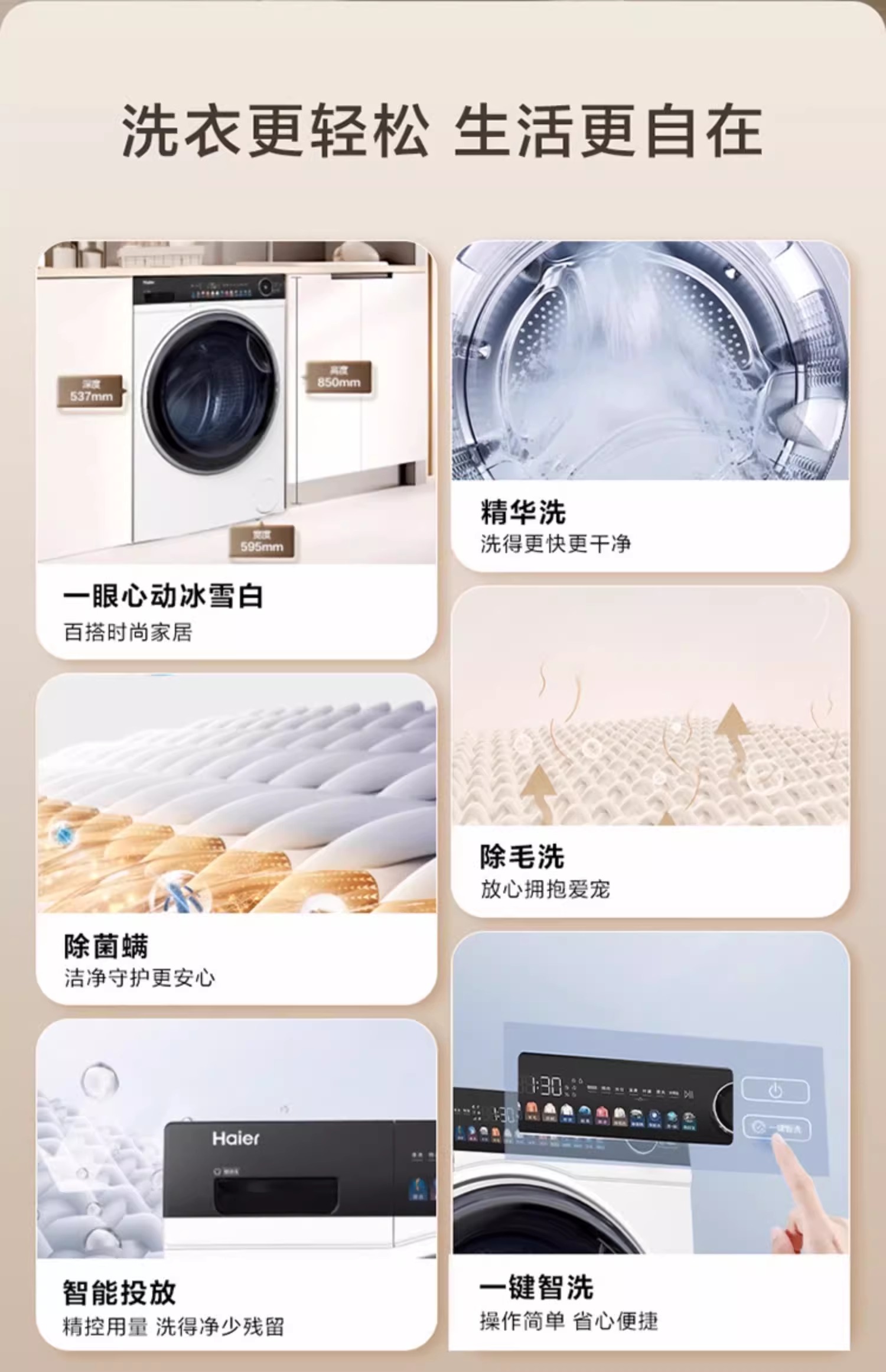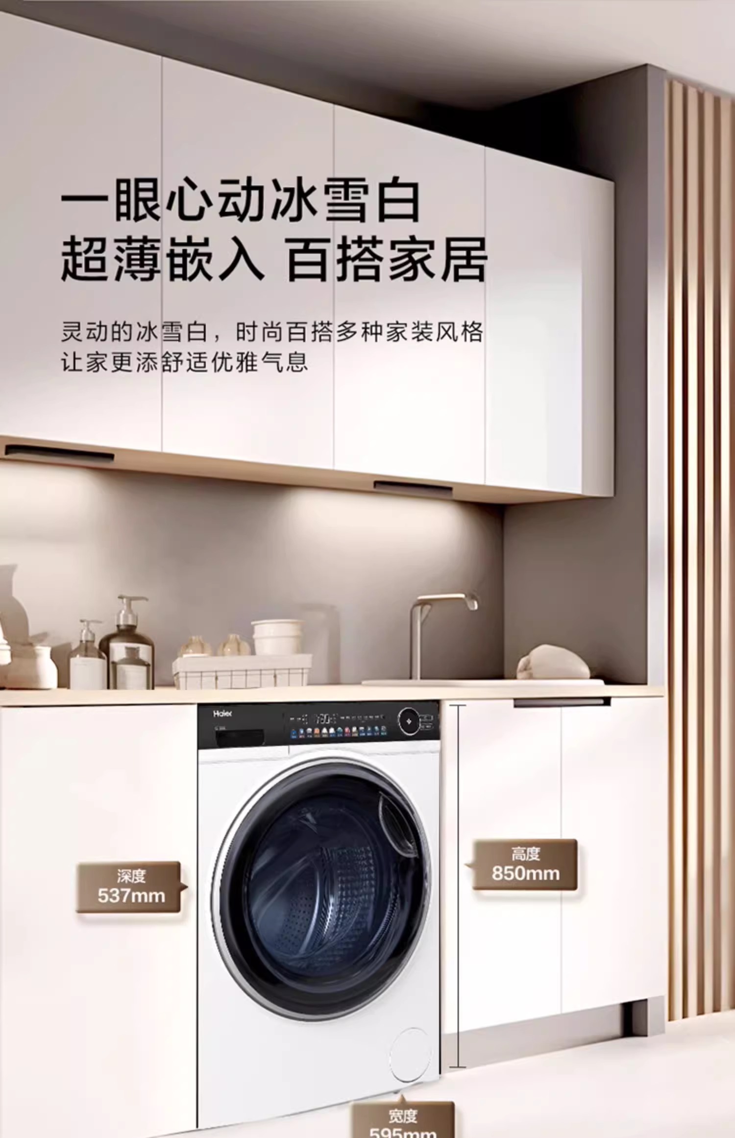 【白巧精华洗】海尔平嵌滚筒洗衣机超薄大容量家用全自动SL6白 EG100MAXSL6W