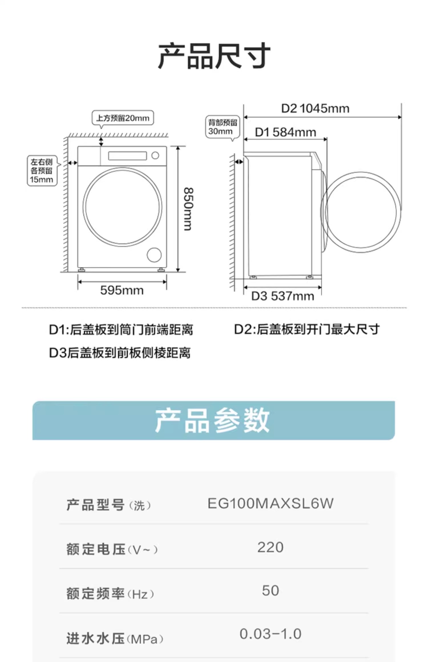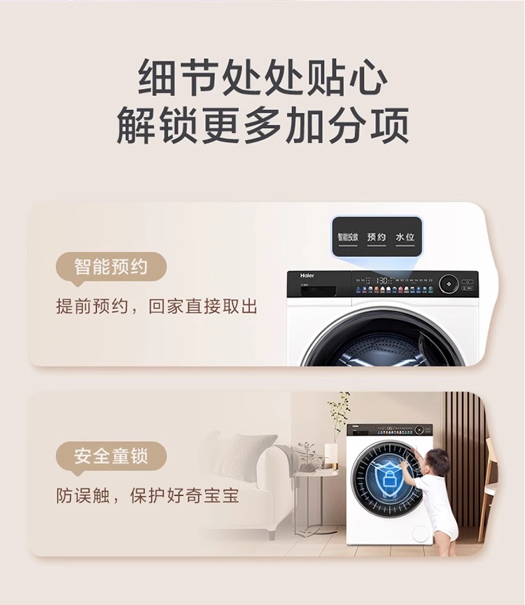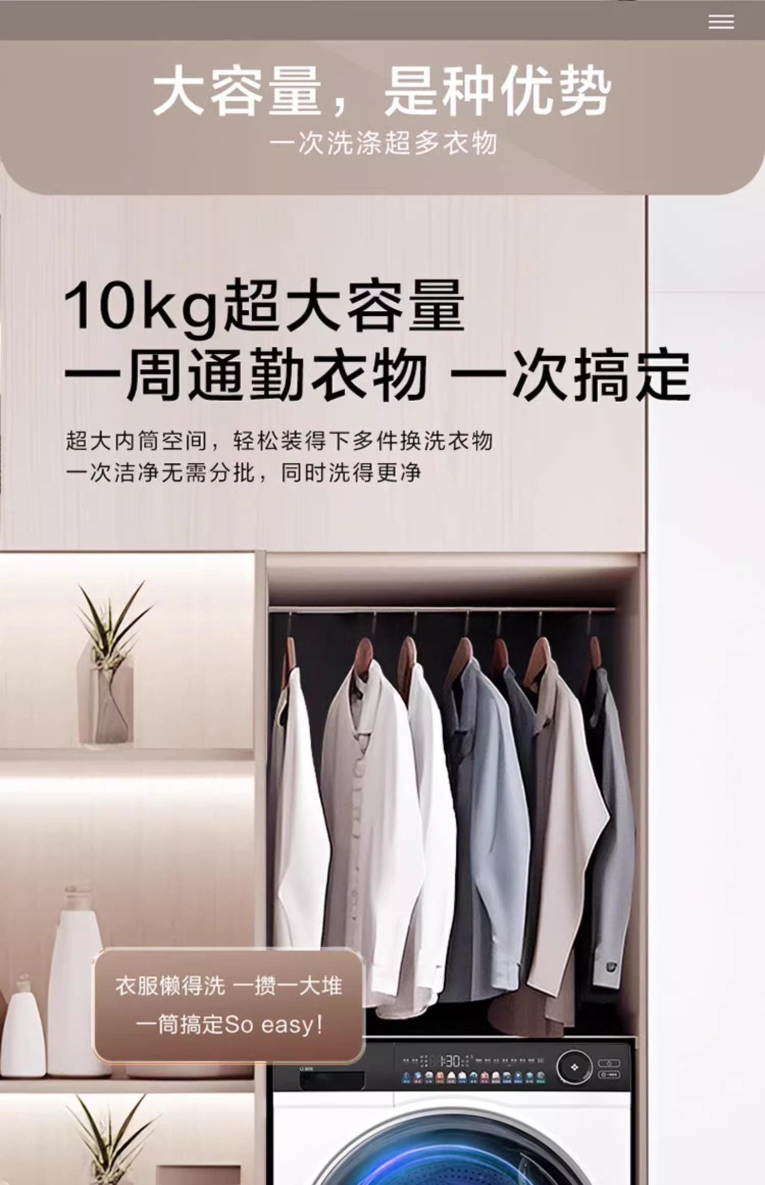 【白巧精华洗】海尔平嵌滚筒洗衣机超薄大容量家用全自动SL6白 EG100MAXSL6W