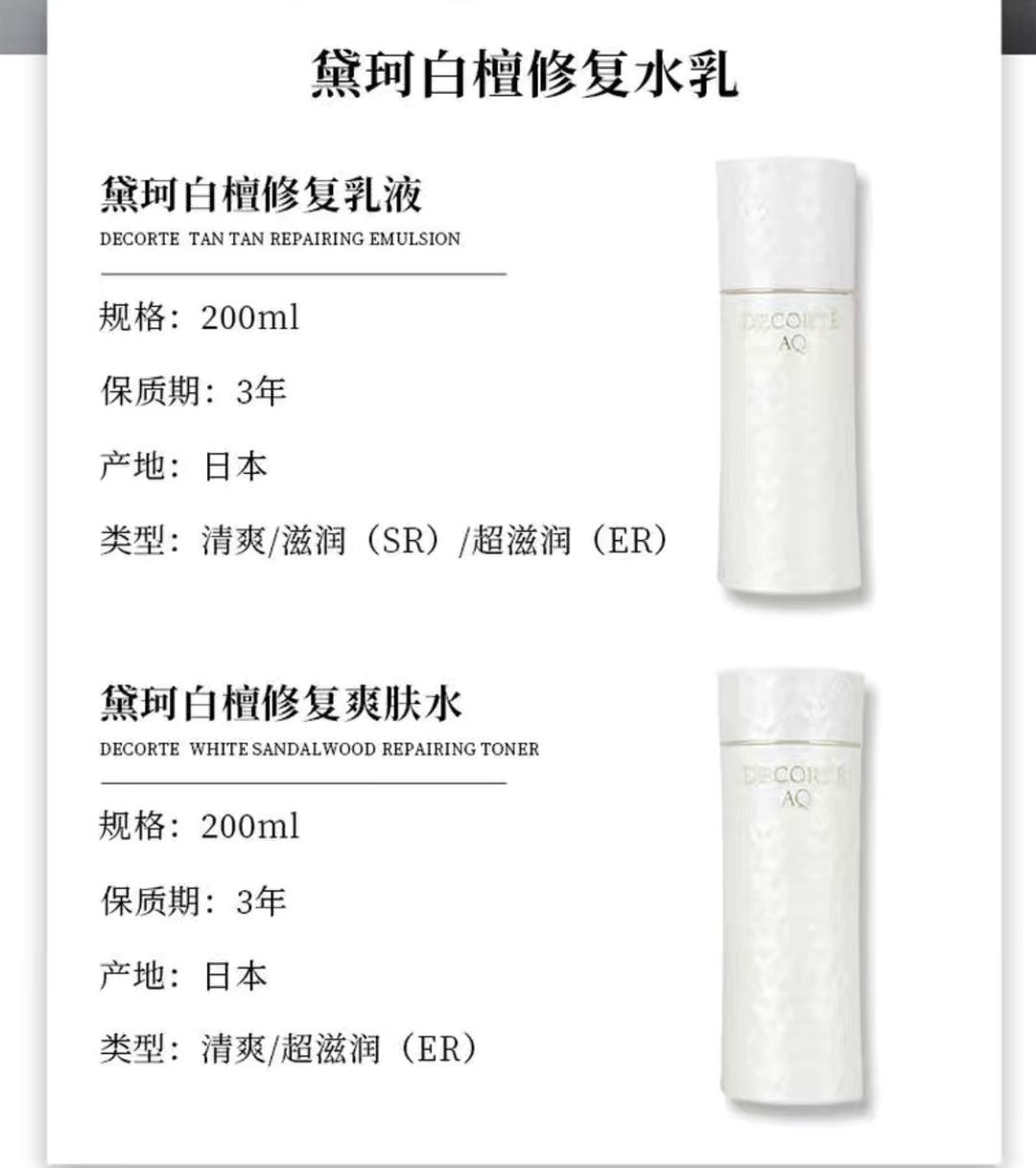 黛珂白檀AQ水乳套装 化妆水200ml乳液200ml