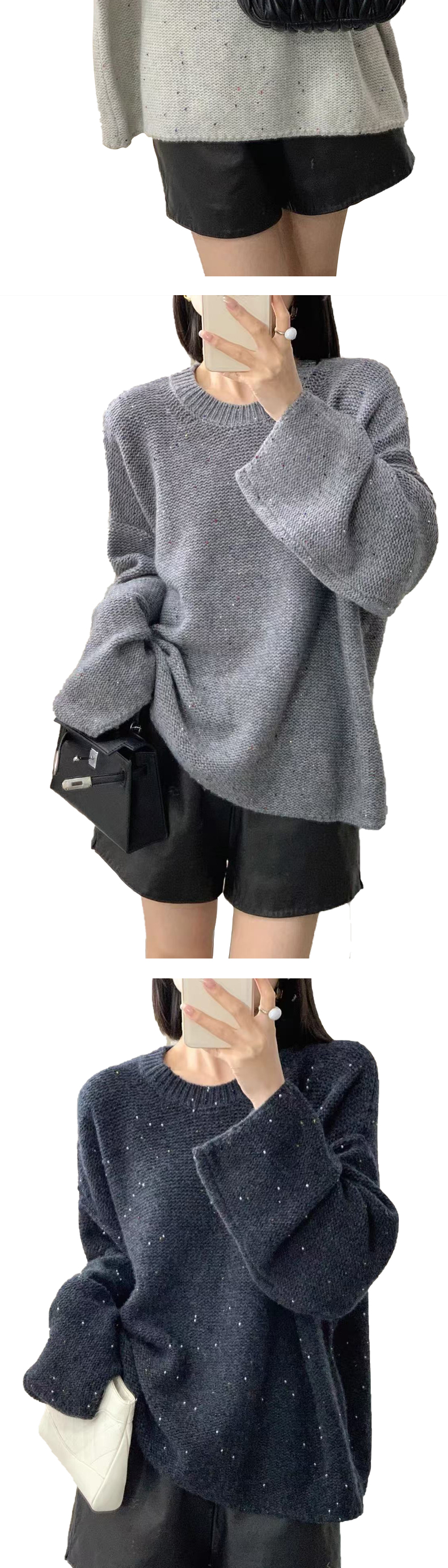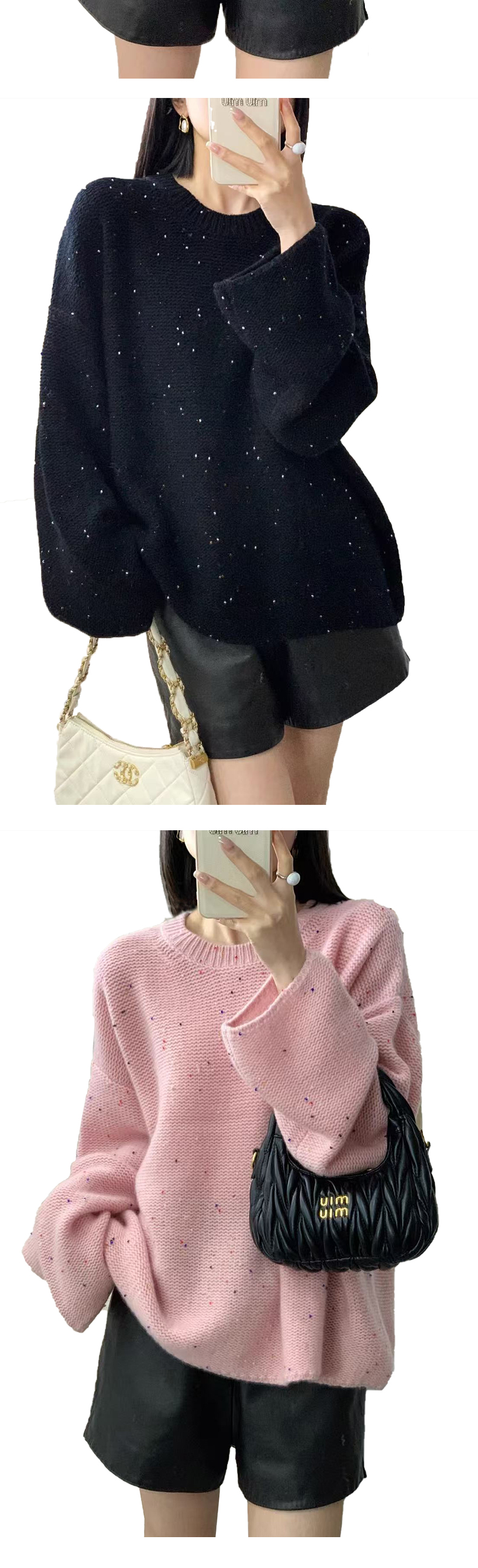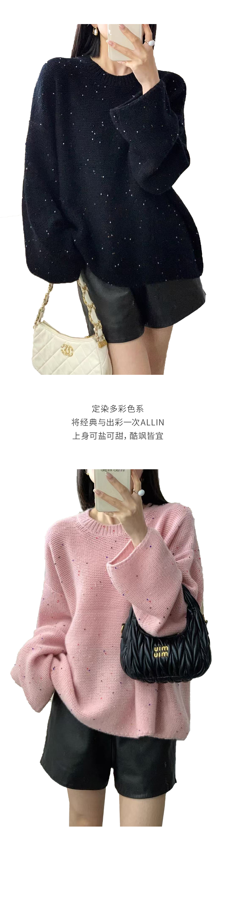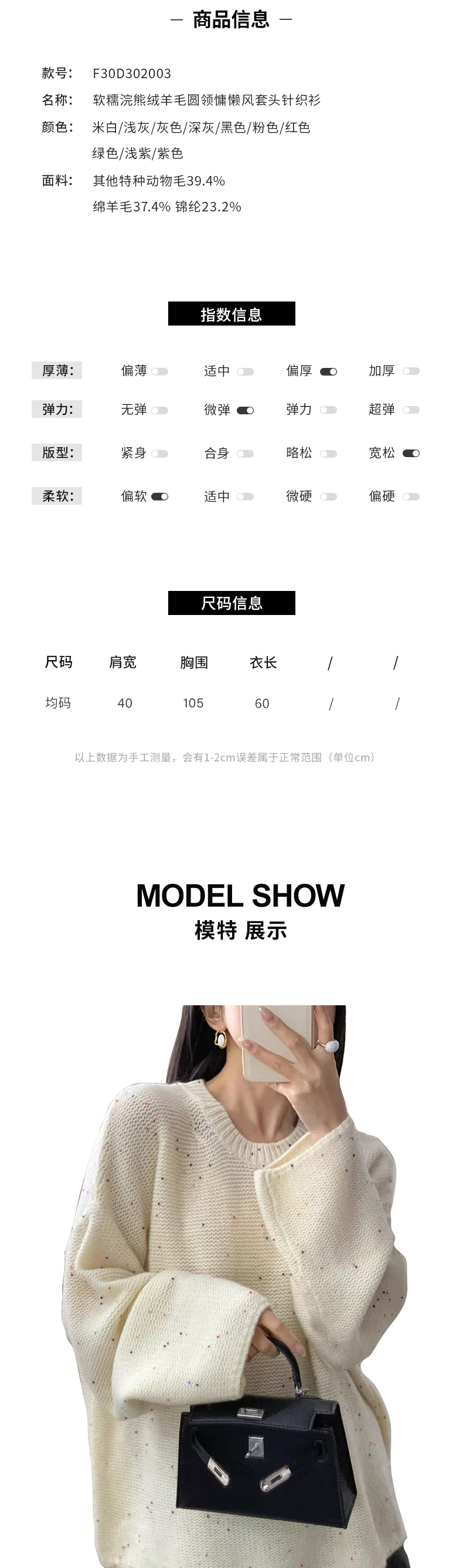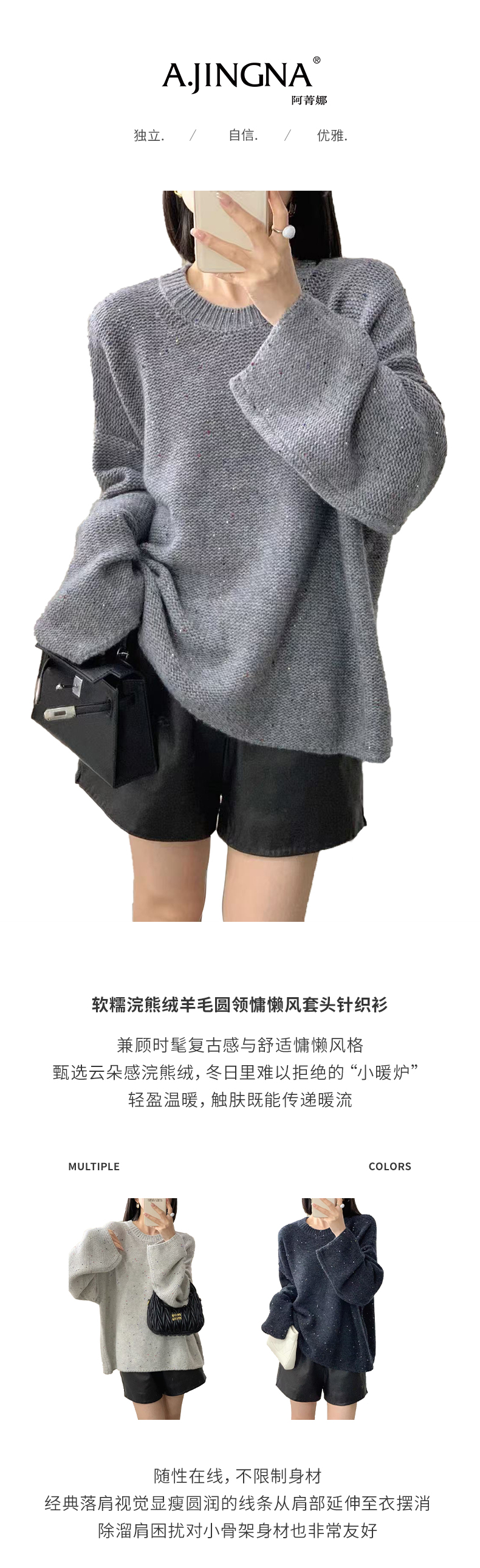 【浣熊绒羊毛针织】阿菁娜秋季新款浣熊绒羊毛针织衫云朵感小暖炉宽松毛衣复古慵懒风多色可选F30D302003
